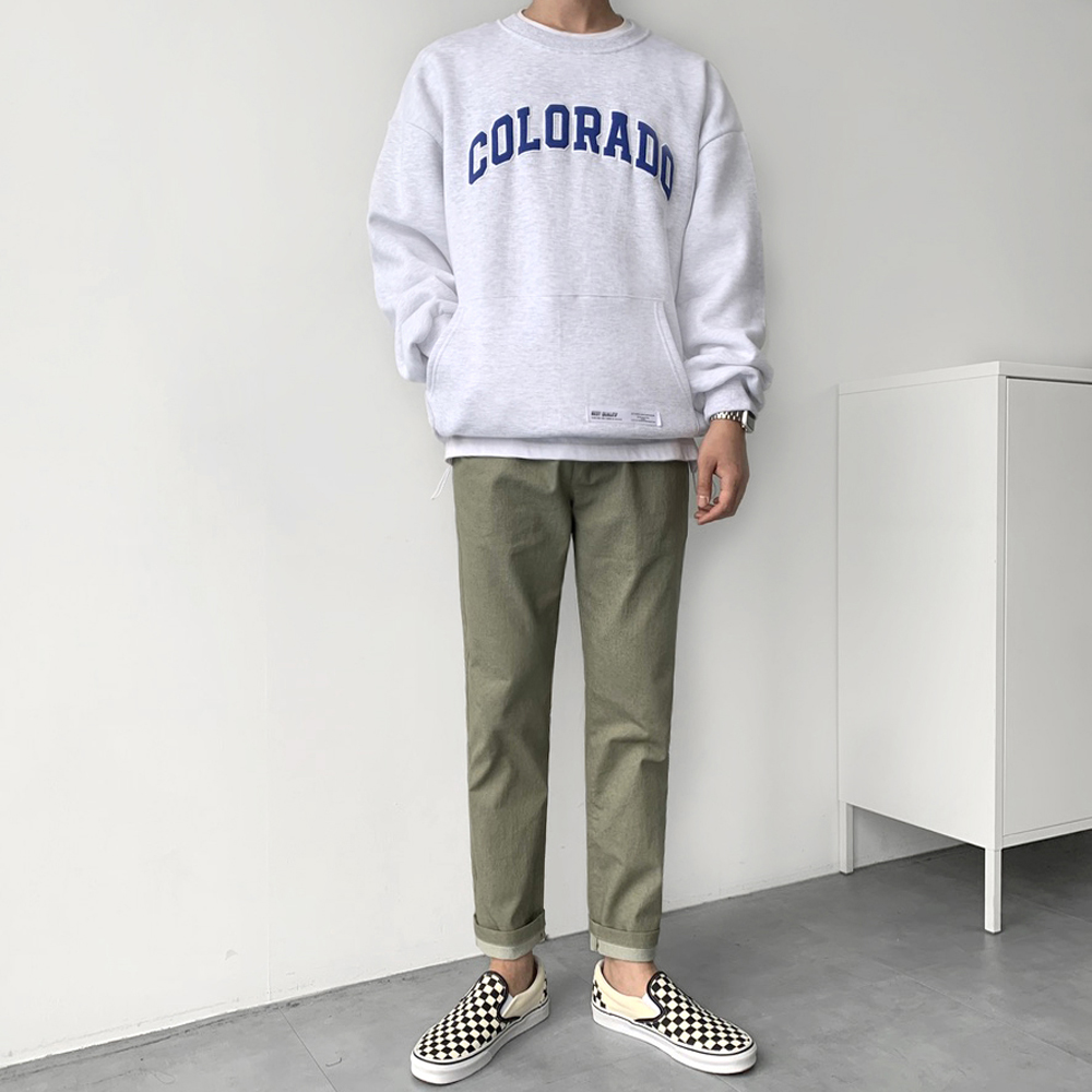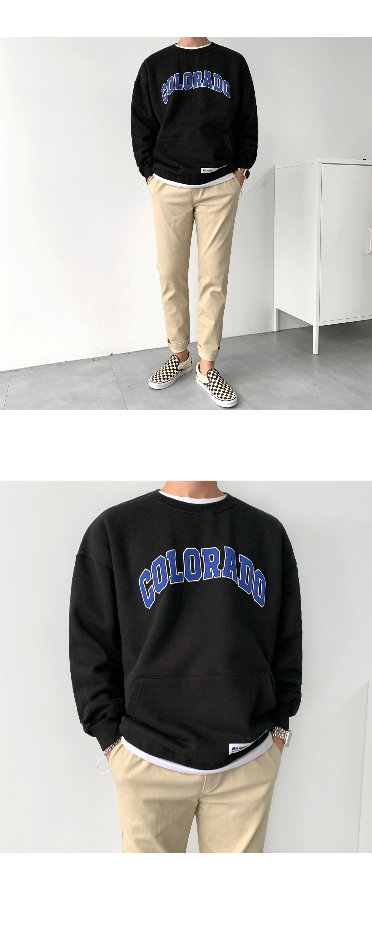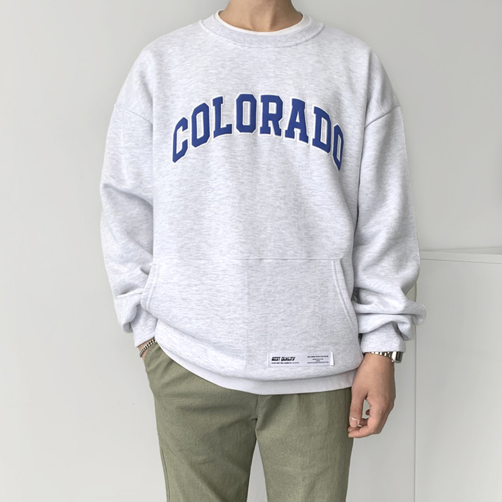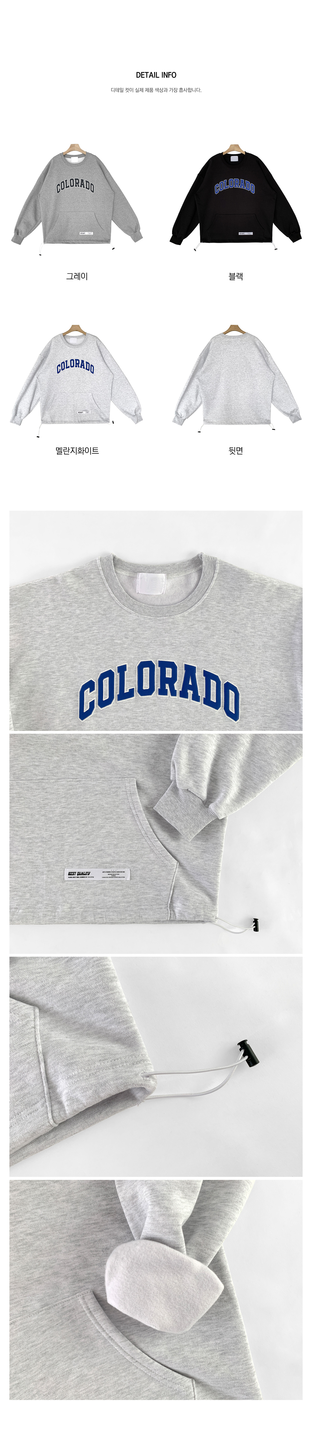 넉넉한 오버핏으로 트렌디하게 입기좋은 콜로라도 스트링 기모 맨투맨 입니다