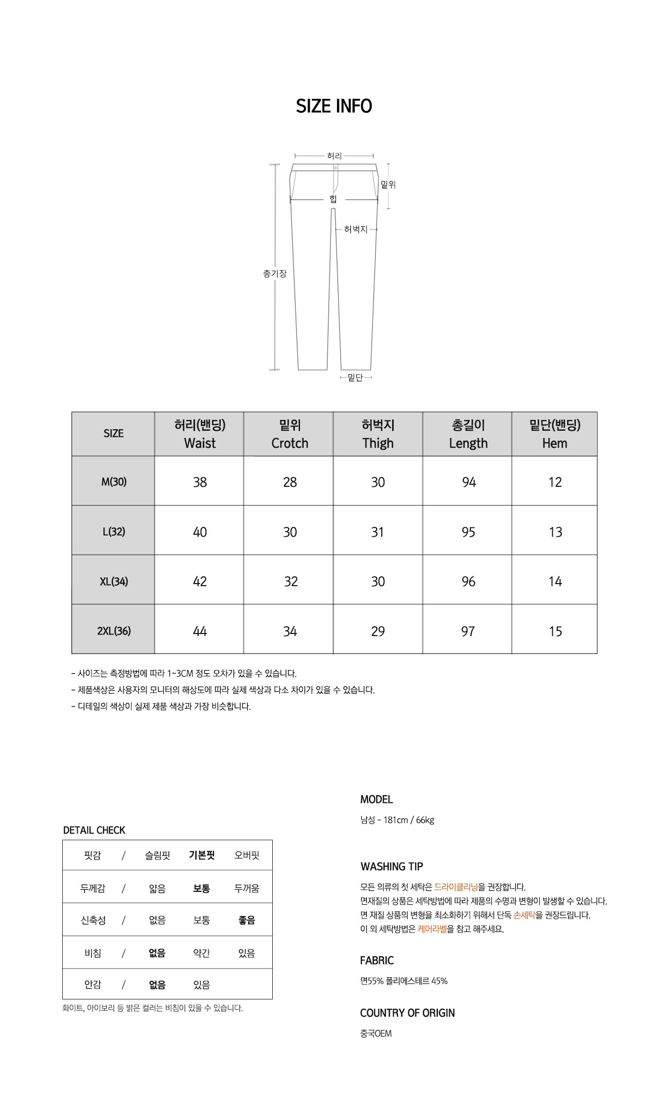 • 워싱처리된 상품의 진한정도가 다를 경우 불량으로 처리가 불가합니다.(제품마다 상이합니다.)