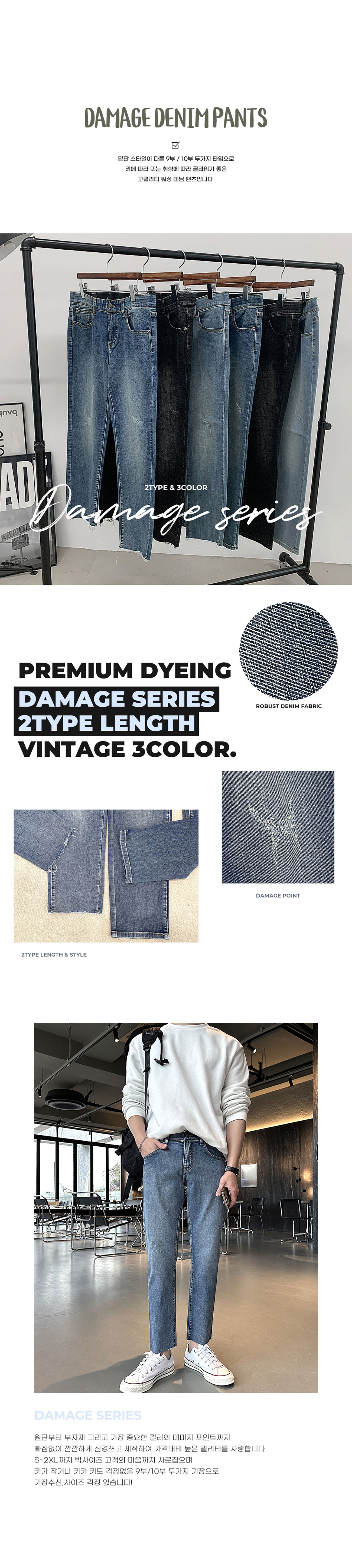 님파 히든밴딩 데미지 워싱 데님팬츠