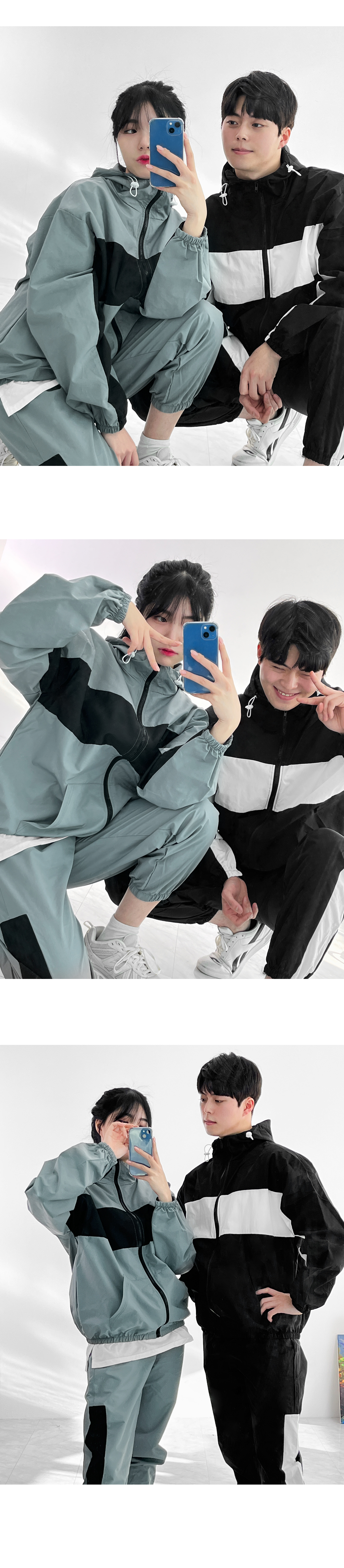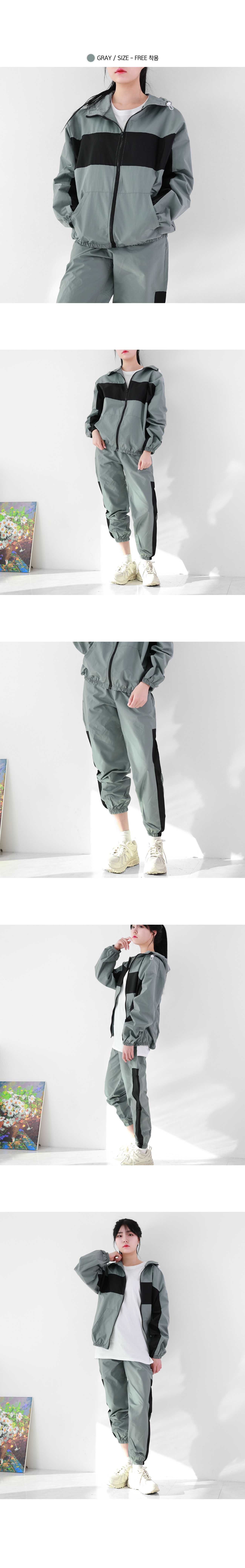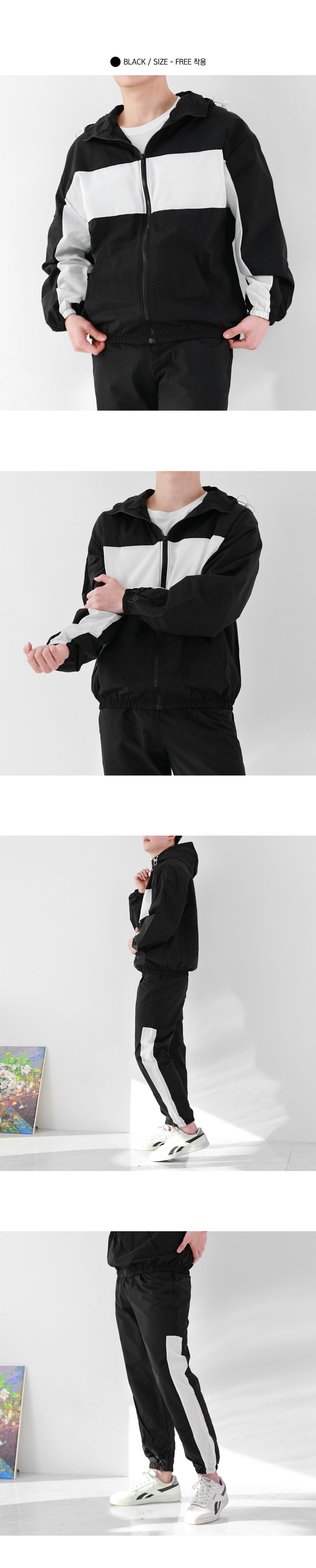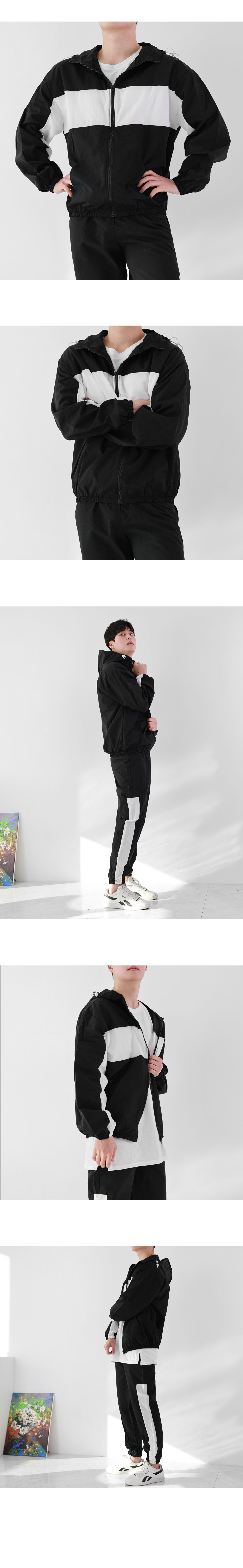 스트링 미들 배색 바람막이 후드 집업 & 트레이닝 조거 팬츠