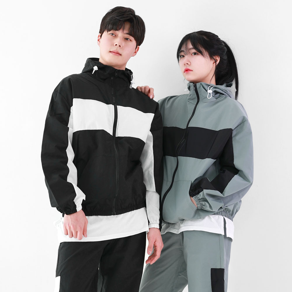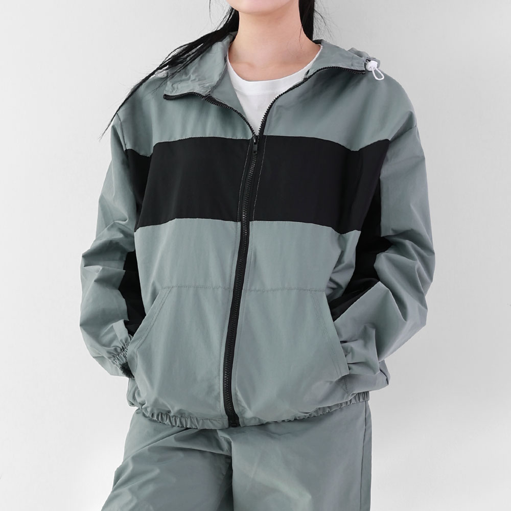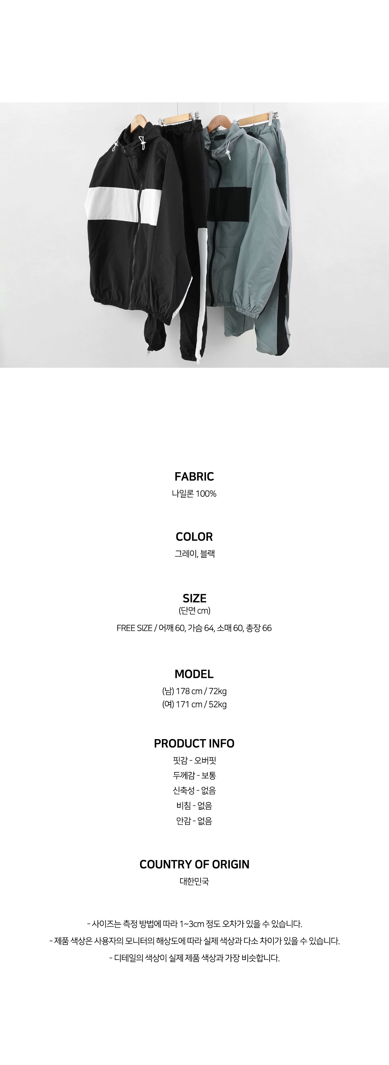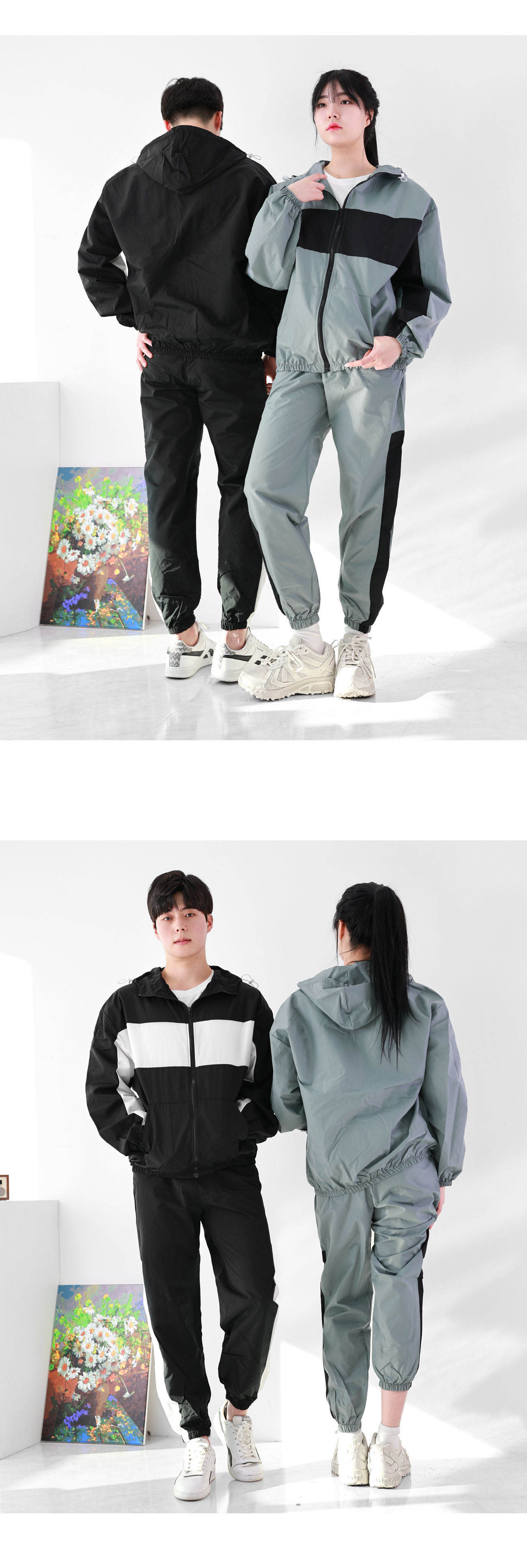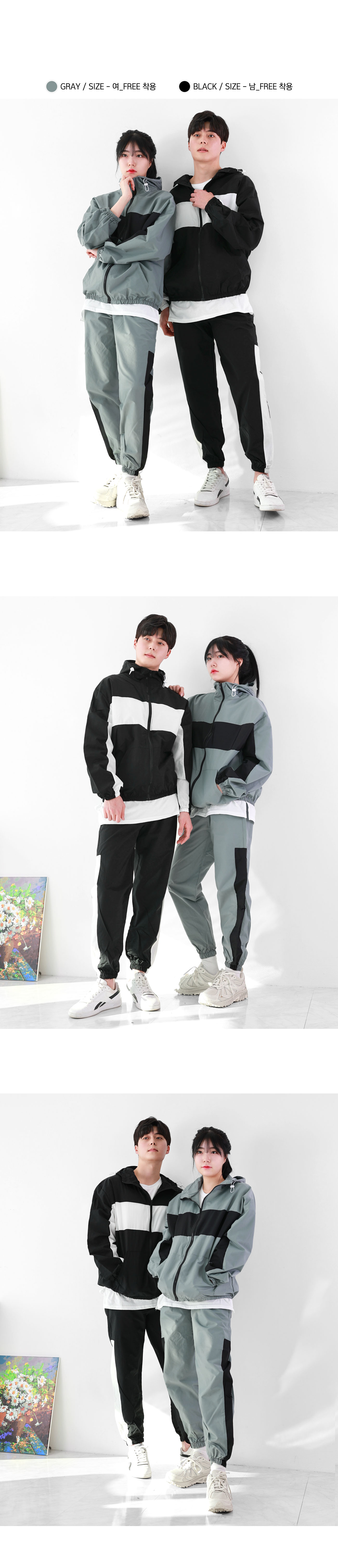 스트링 미들 배색 바람막이 후드 집업 & 트레이닝 조거 팬츠