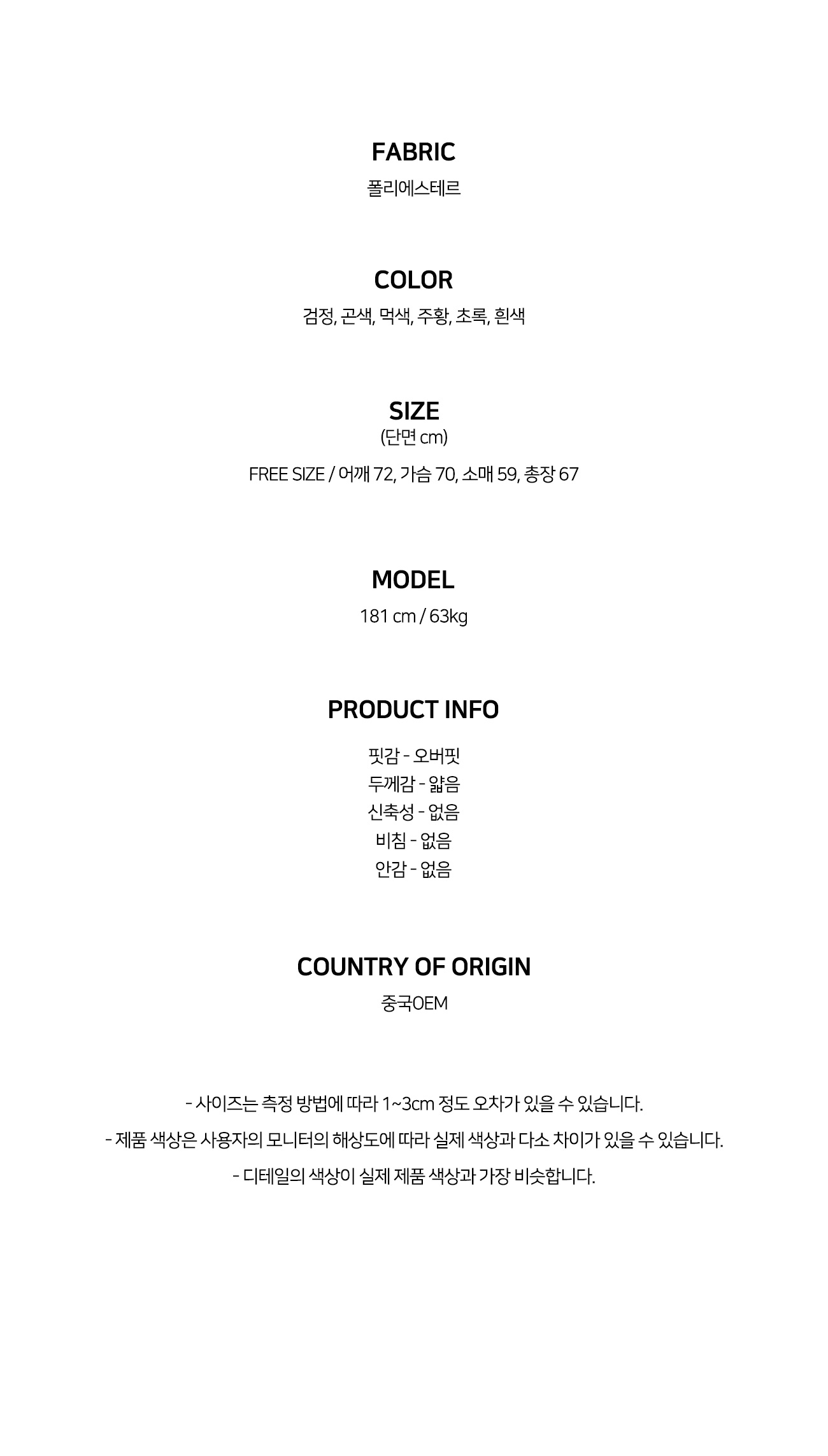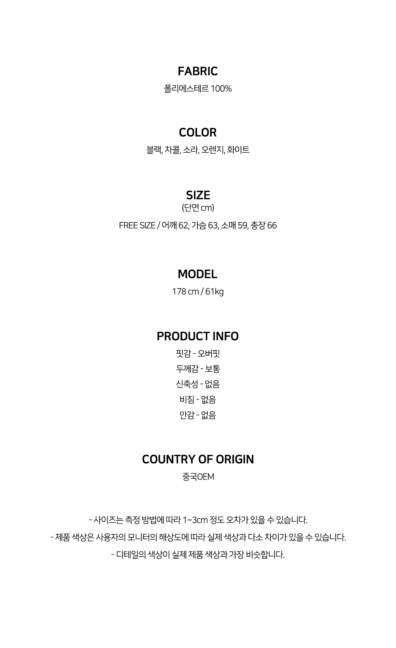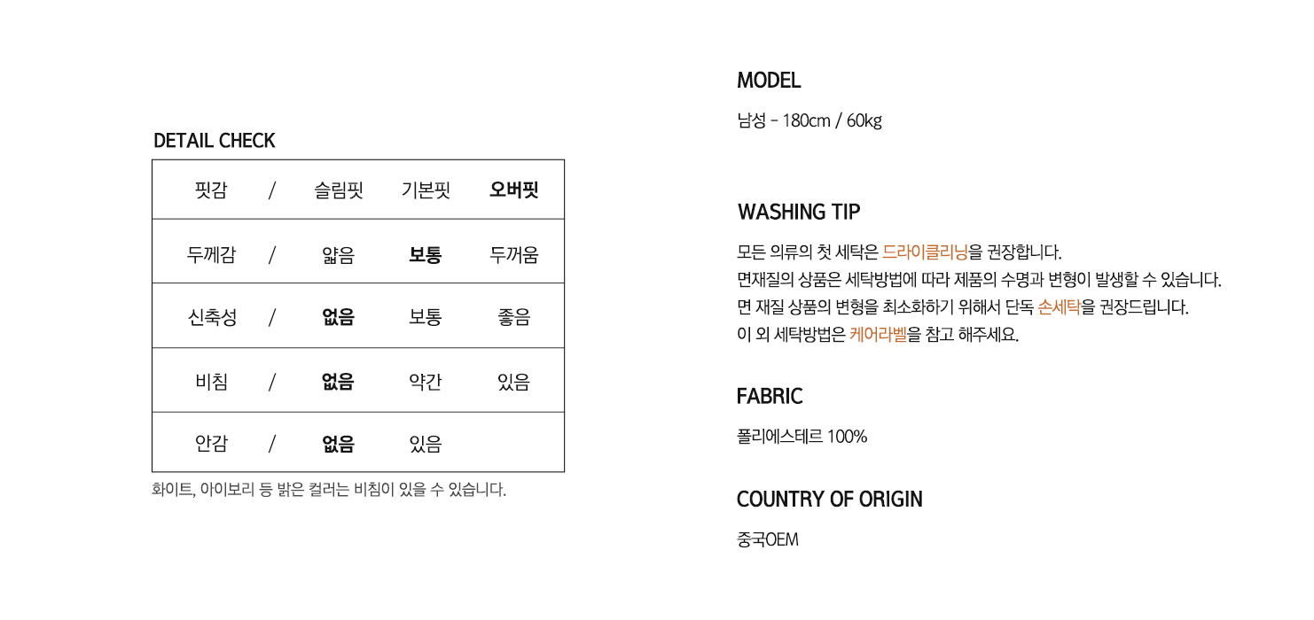 - 제작업체 및 제작 공정에 따라 상품 텍의 유무가 달라질 수 있습니다. 이것은 불량 사유가 되지 않습니다.
