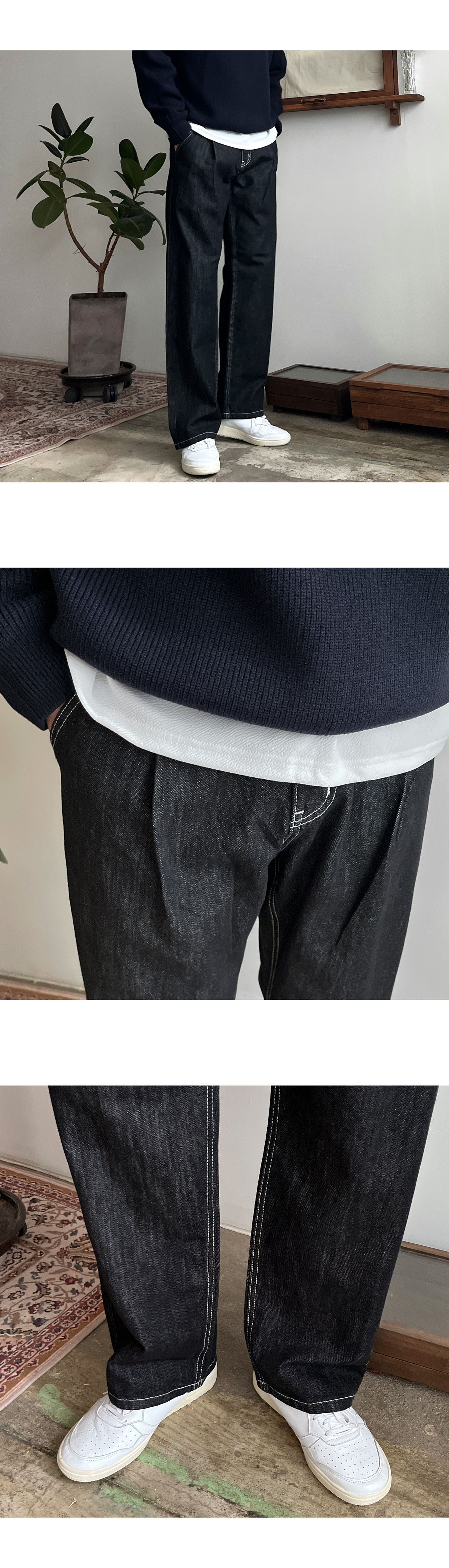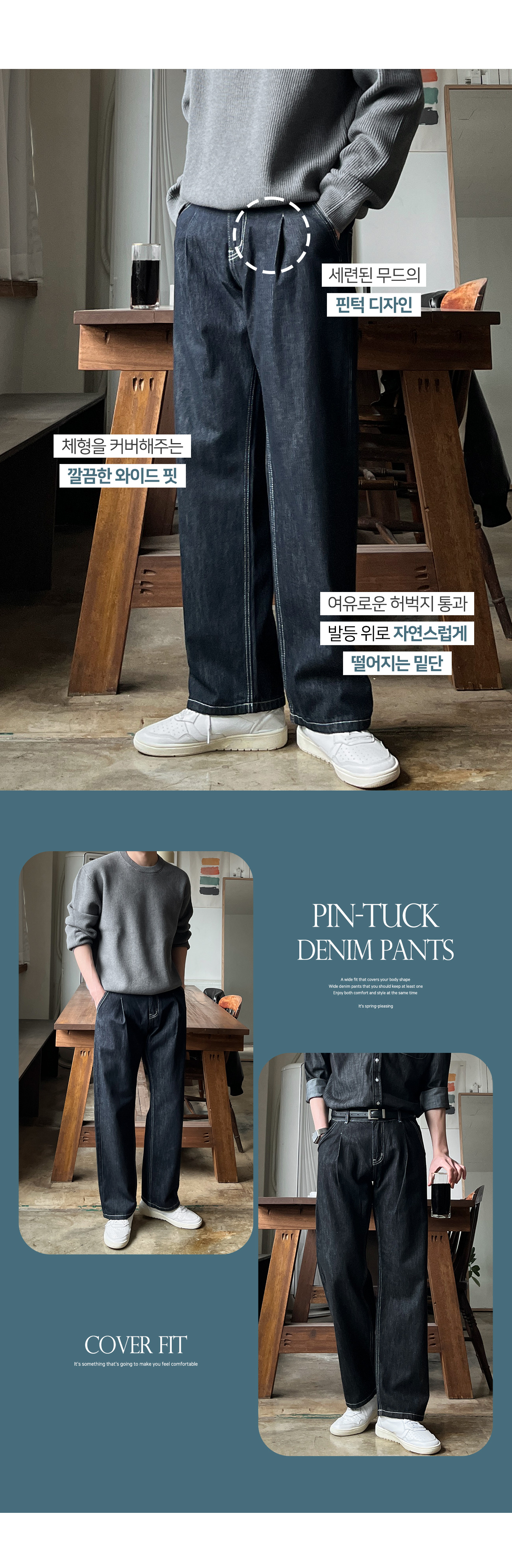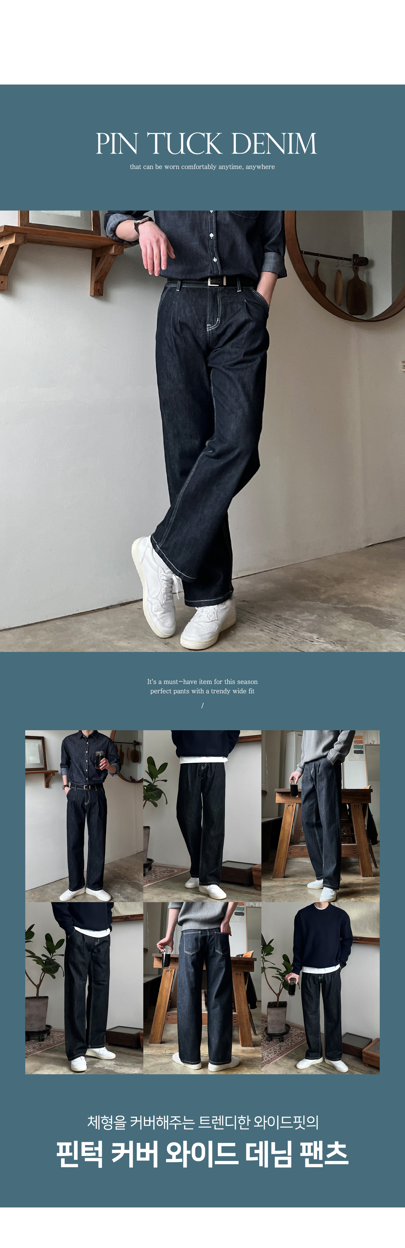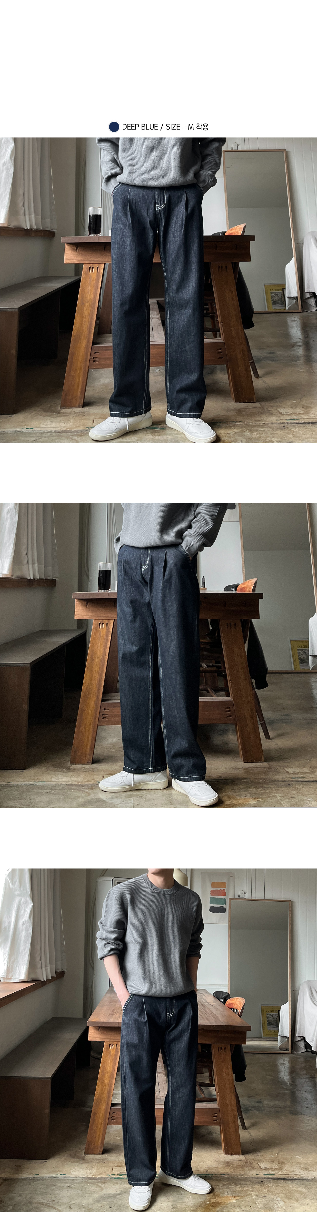 로지 원턱 논페이드 와이드 데님 팬츠