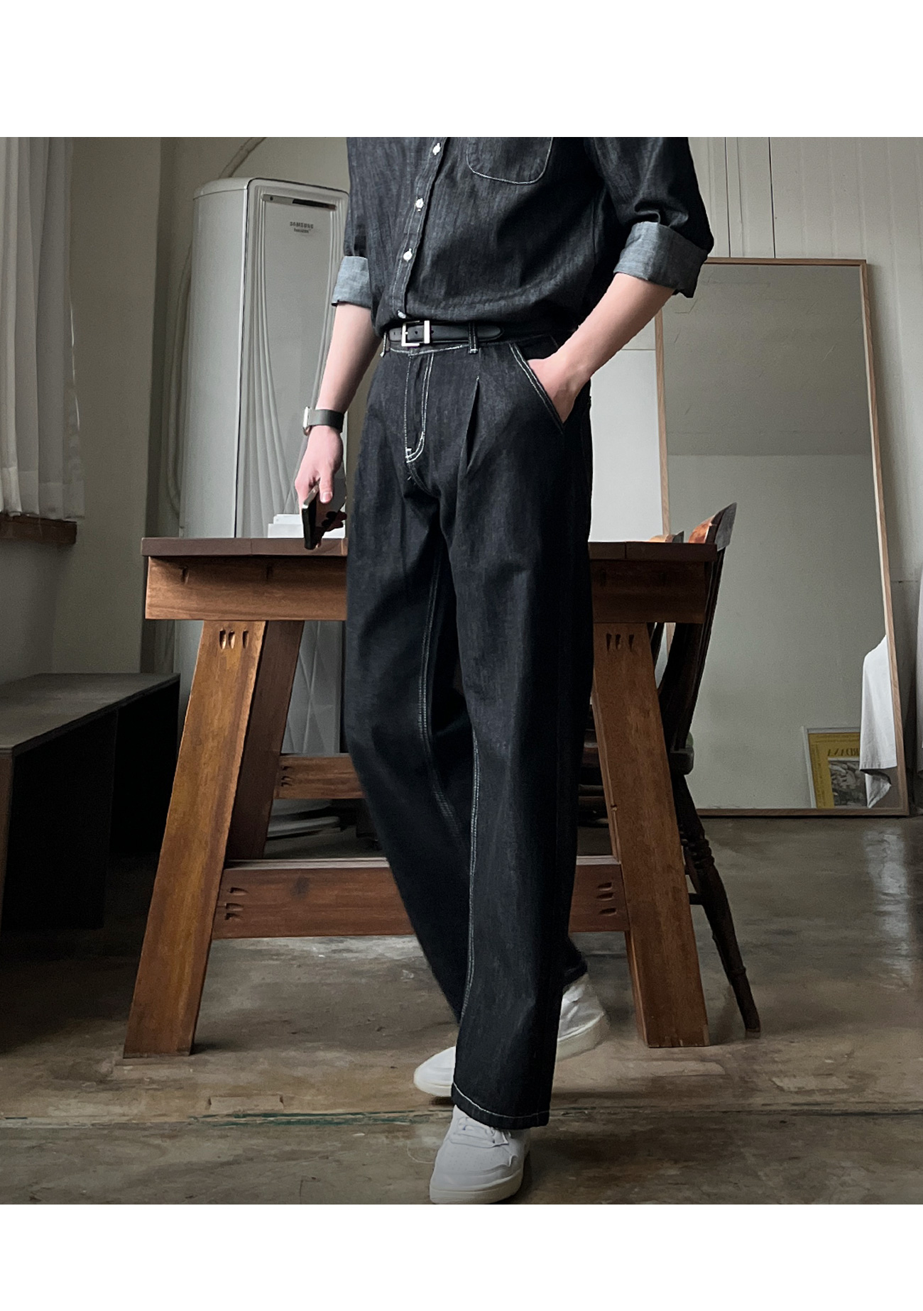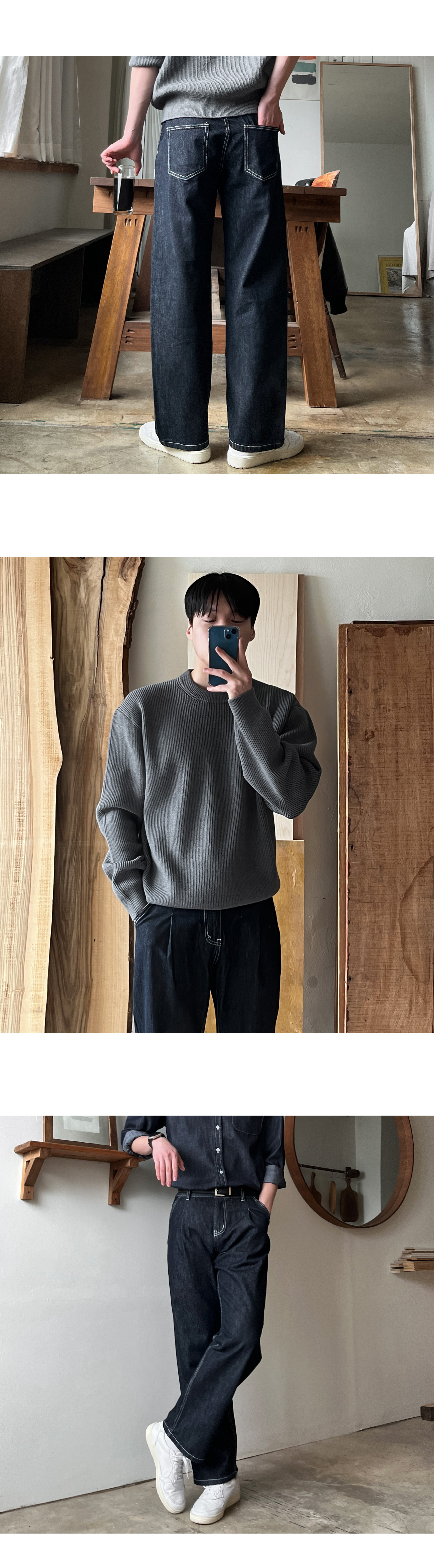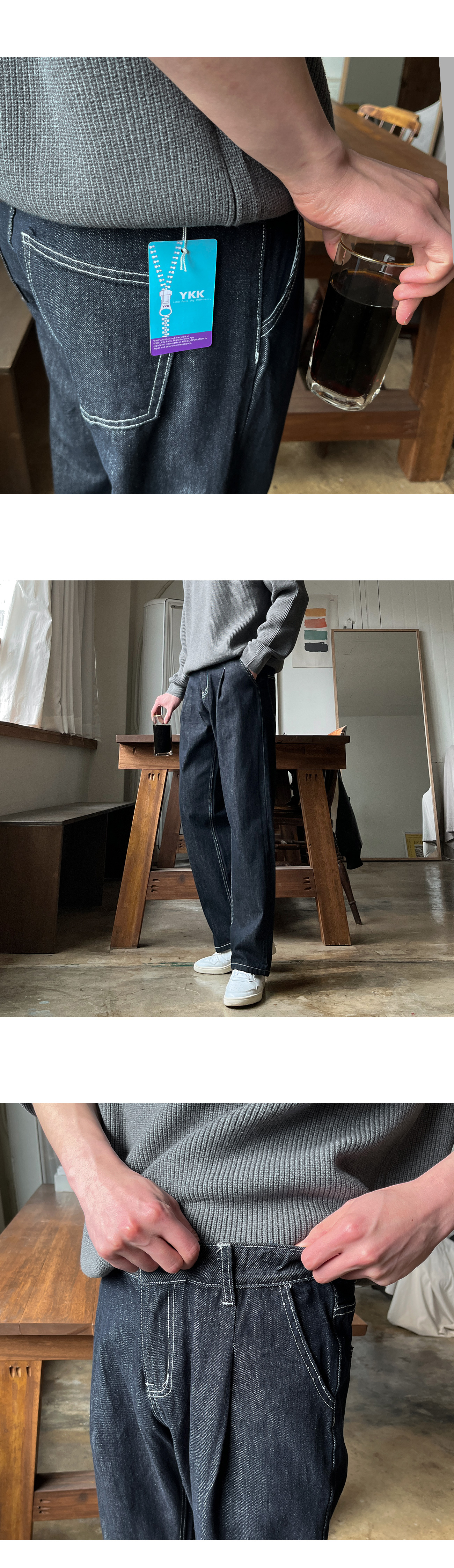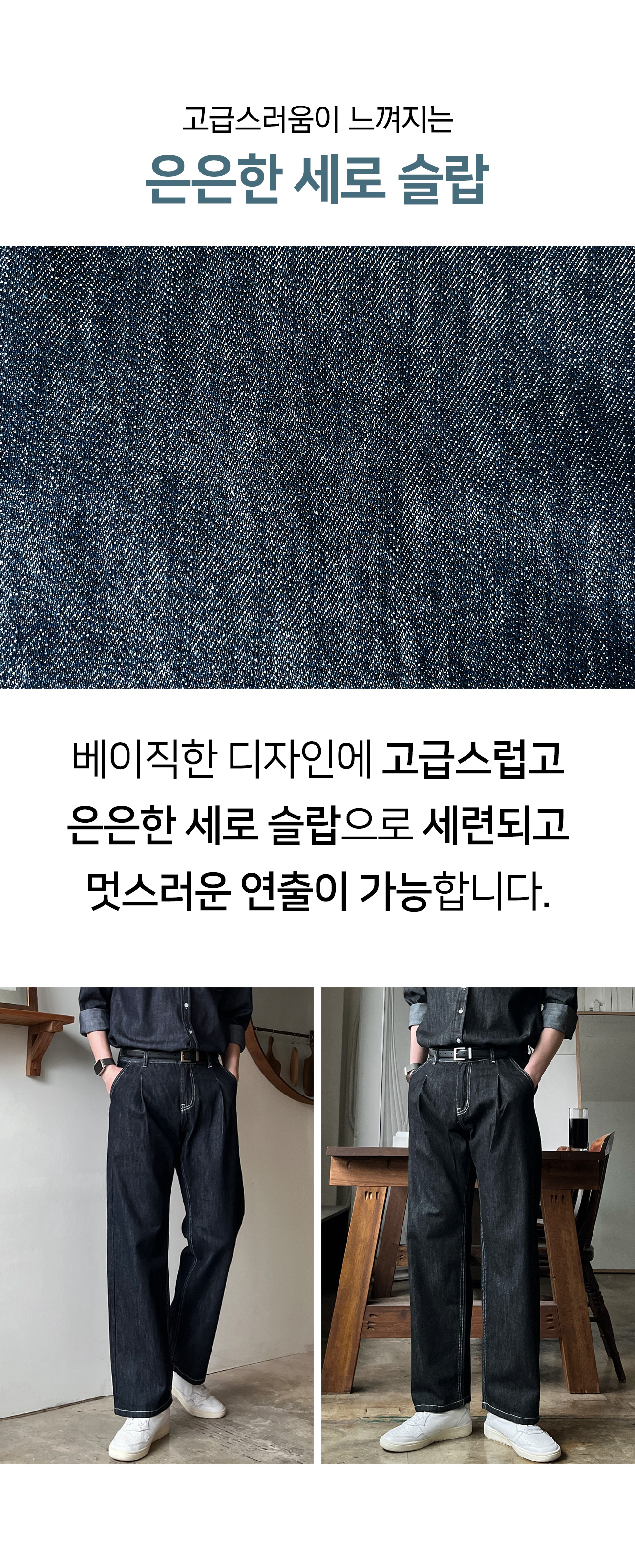 로지 원턱 논페이드 와이드 데님 팬츠