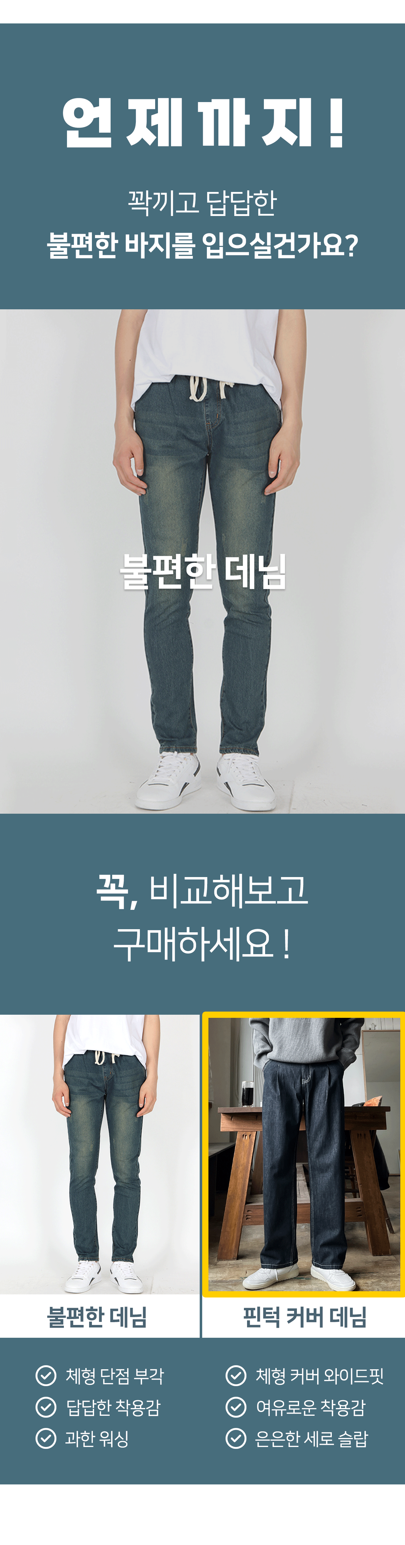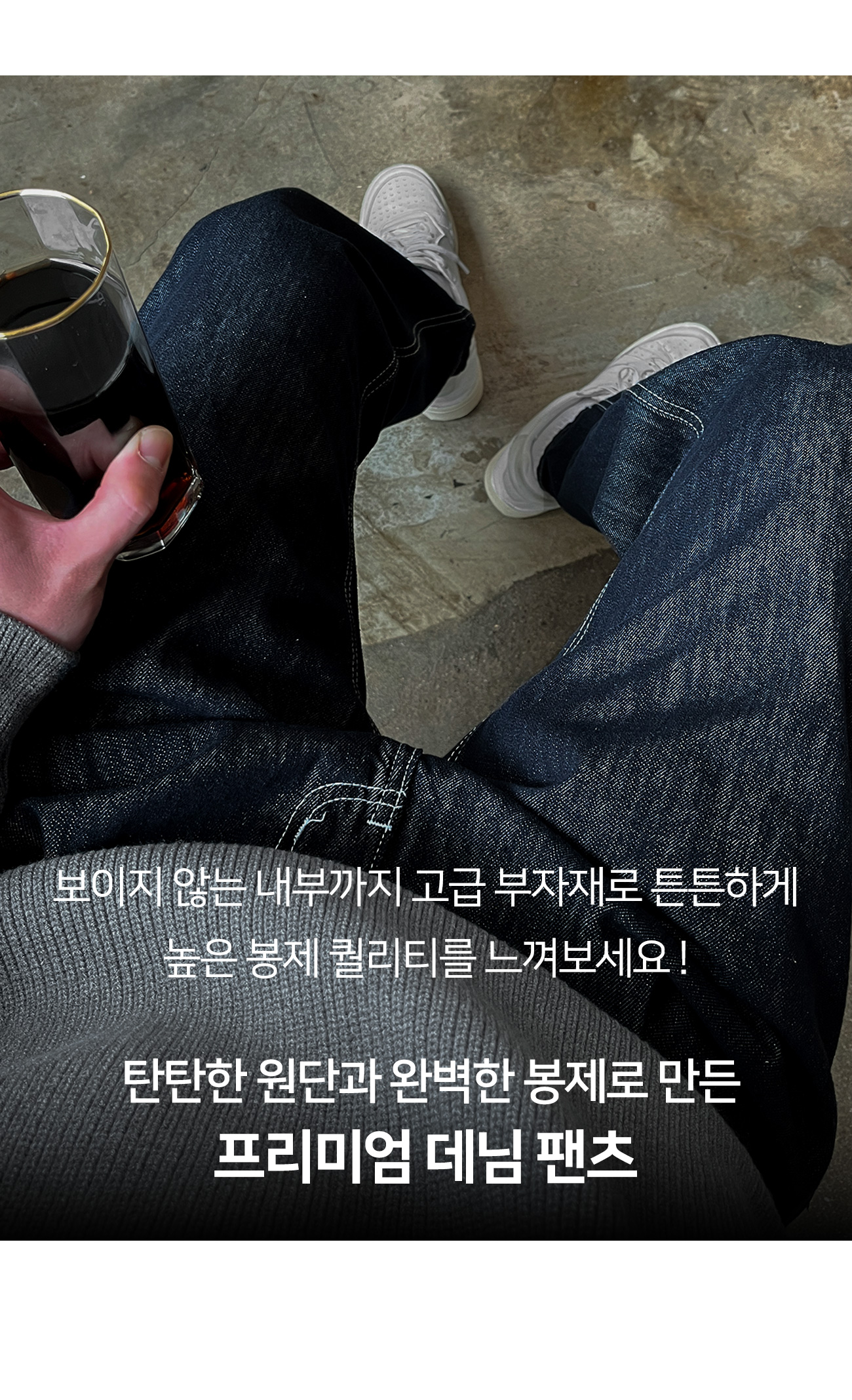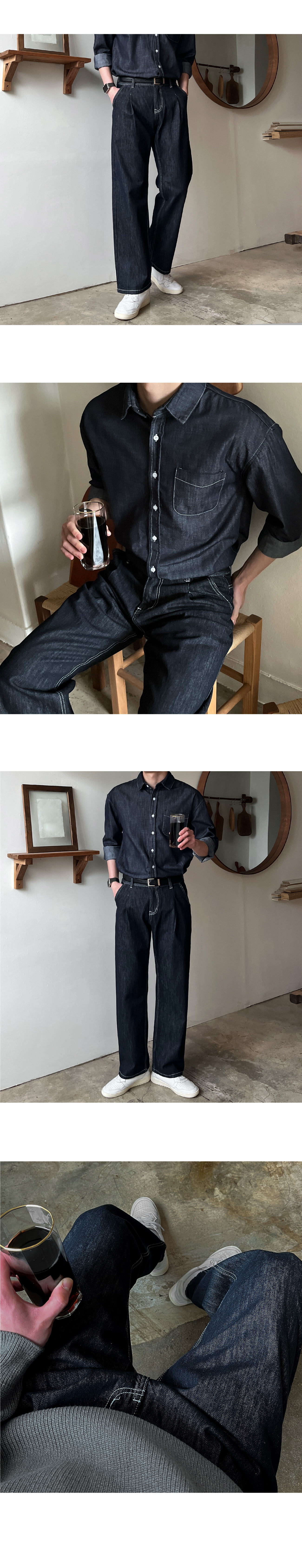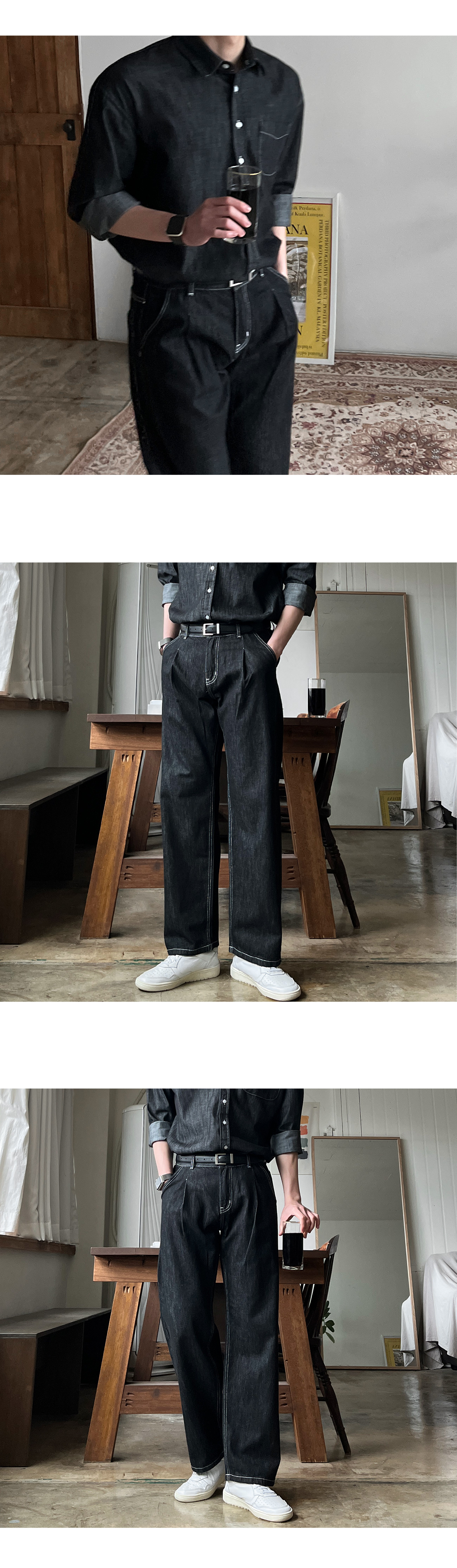 로지 원턱 논페이드 와이드 데님 팬츠