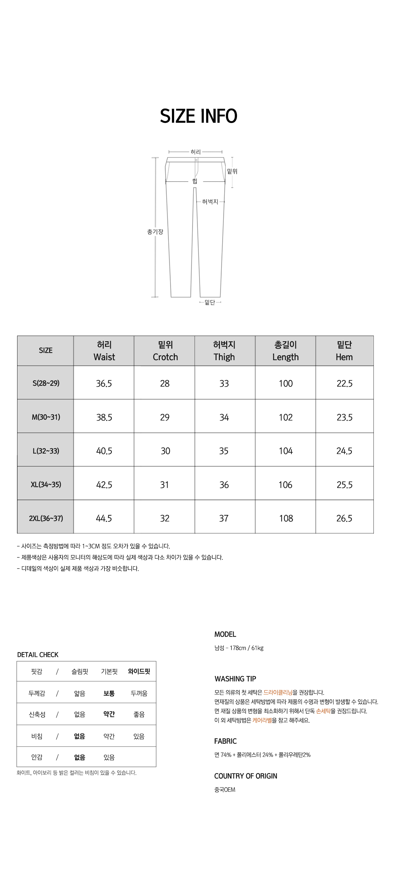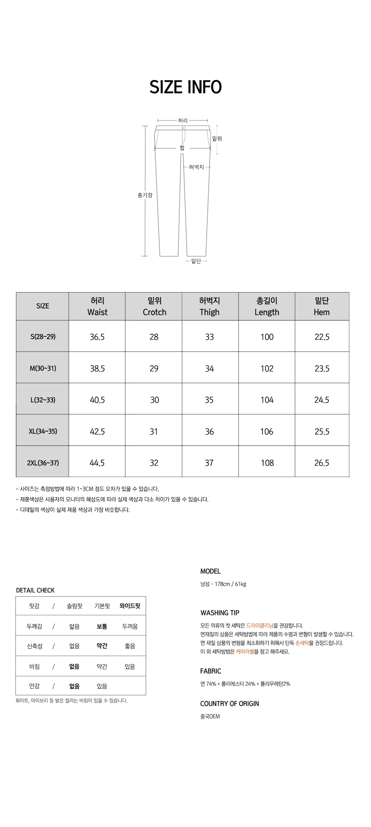 • 워싱처리된 상품의 진한정도가 다를 경우 불량으로 처리가 불가합니다.(제품마다 상이합니다.)