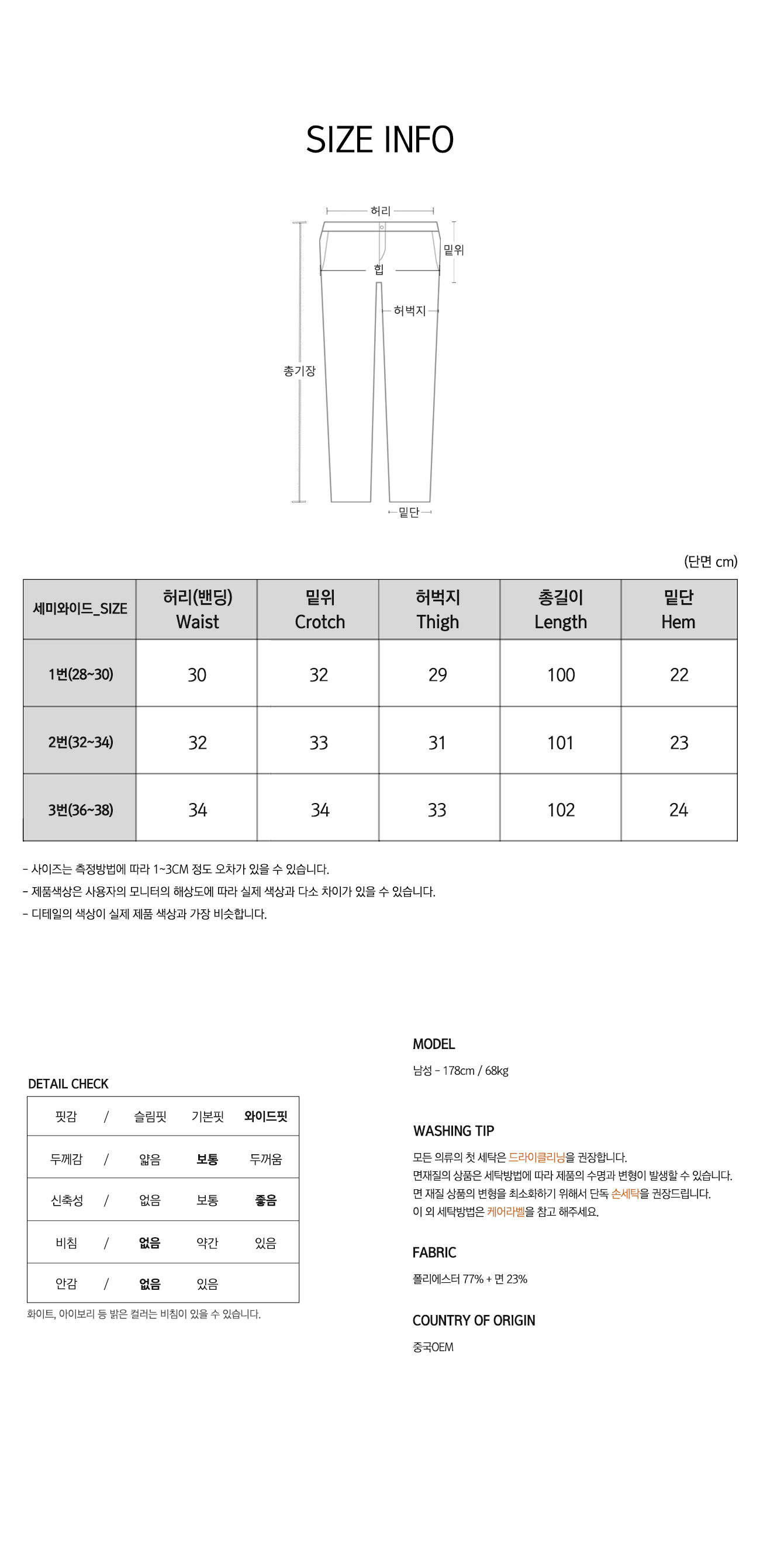 • 워싱처리된 상품의 진한정도가 다를 경우 불량으로 처리가 불가합니다.(제품마다 상이합니다.)