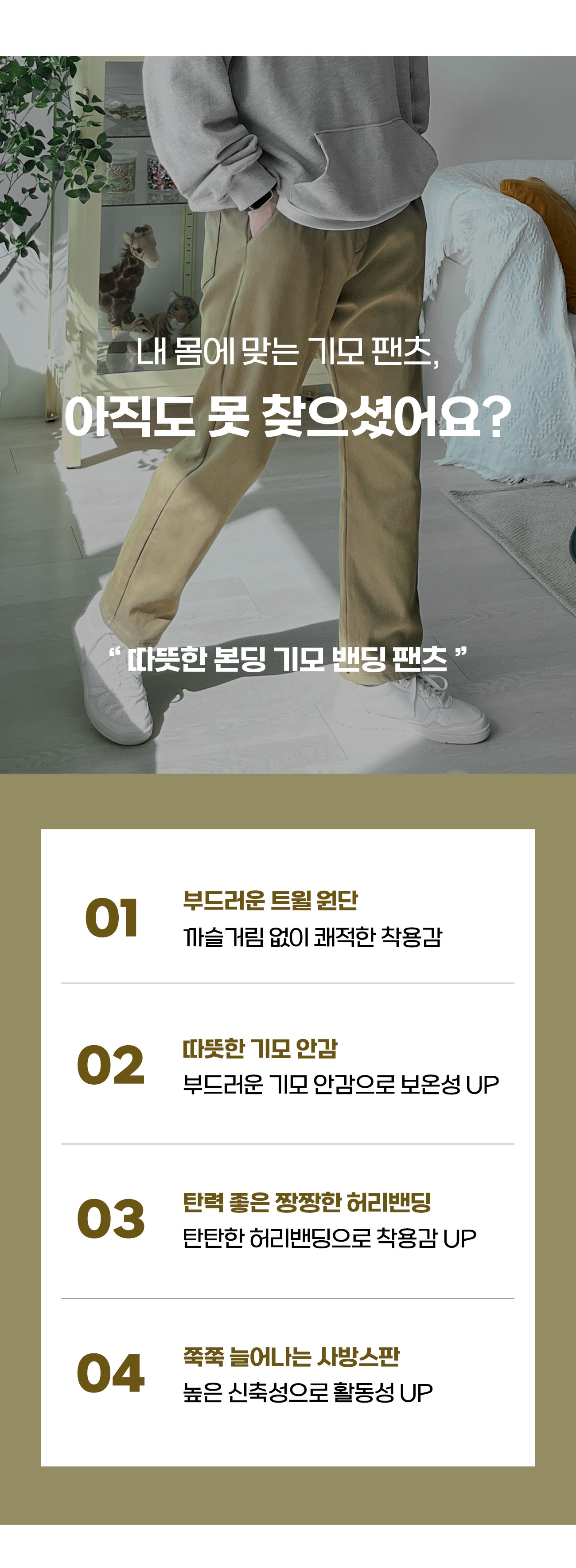 밴딩 웜 본딩 기모 팬츠