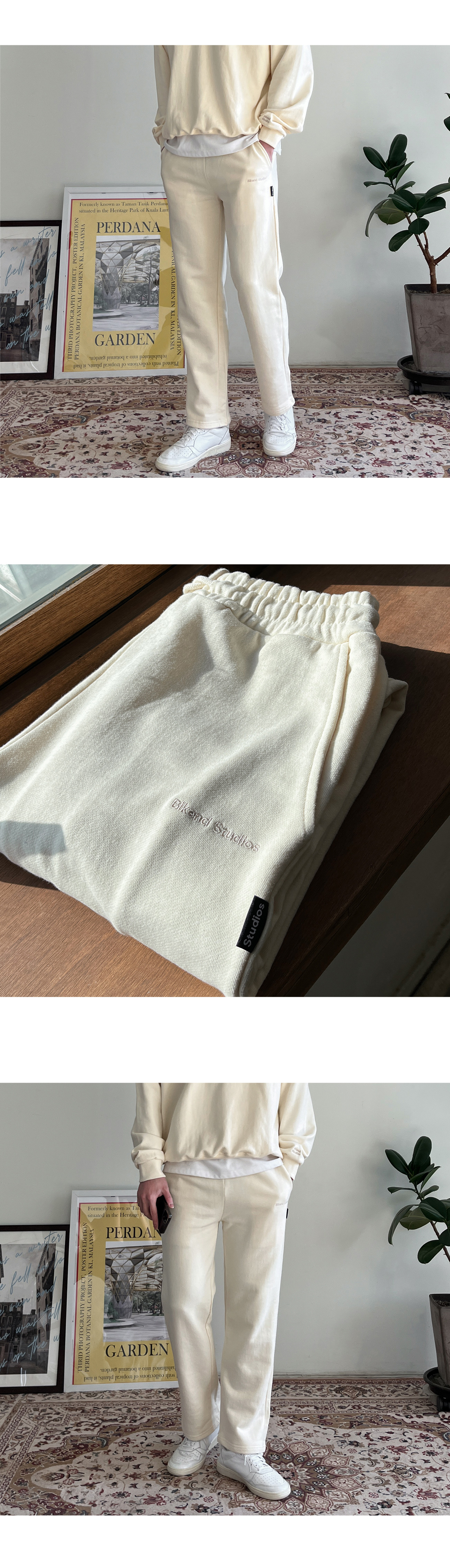 오버핏 덤블워싱 쭈리 자수 와이드 팬츠