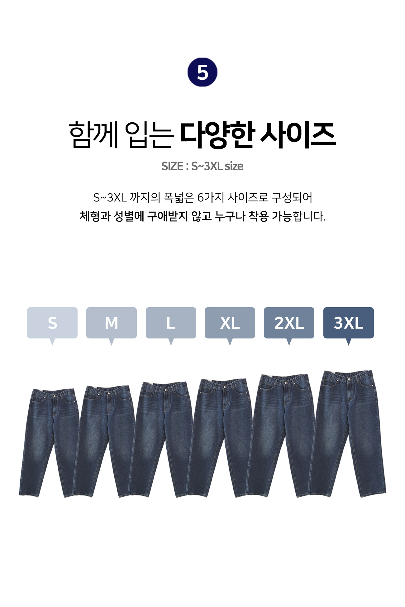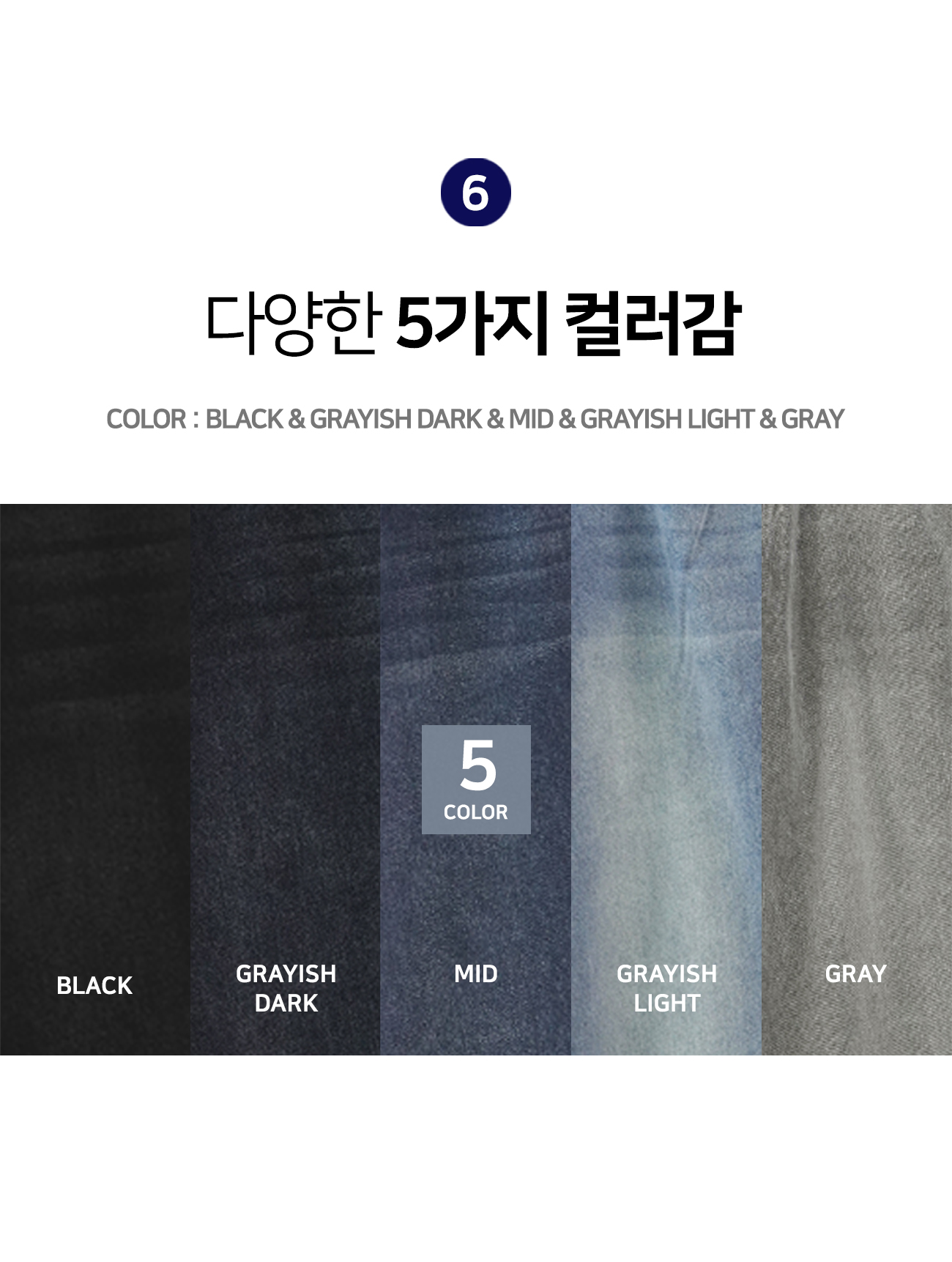 그라데이션 5컬러 숏/기본/롱 논스판 데님