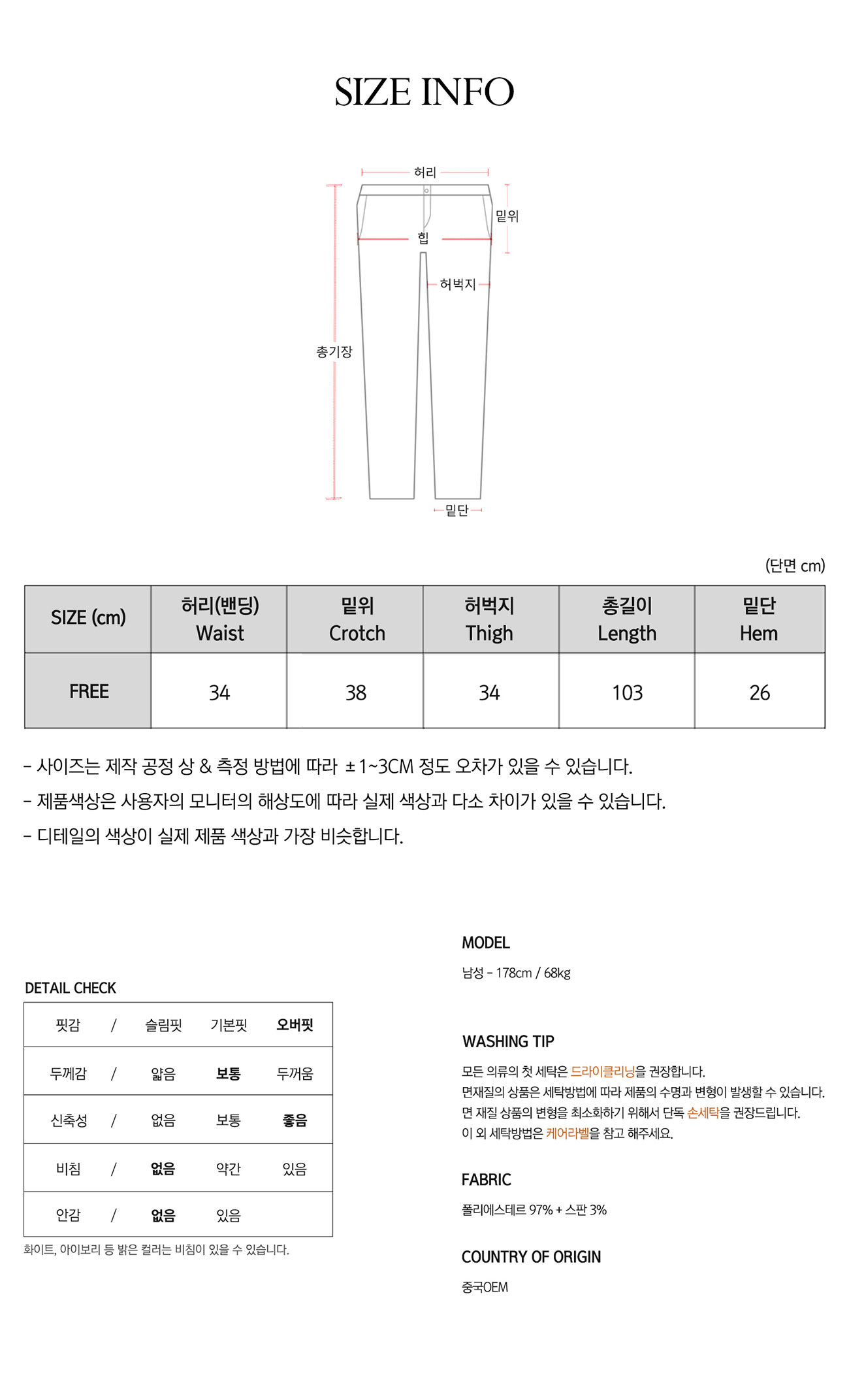 • 워싱처리된 상품의 진한정도가 다를 경우 불량으로 처리가 불가합니다.(제품마다 상이합니다.)