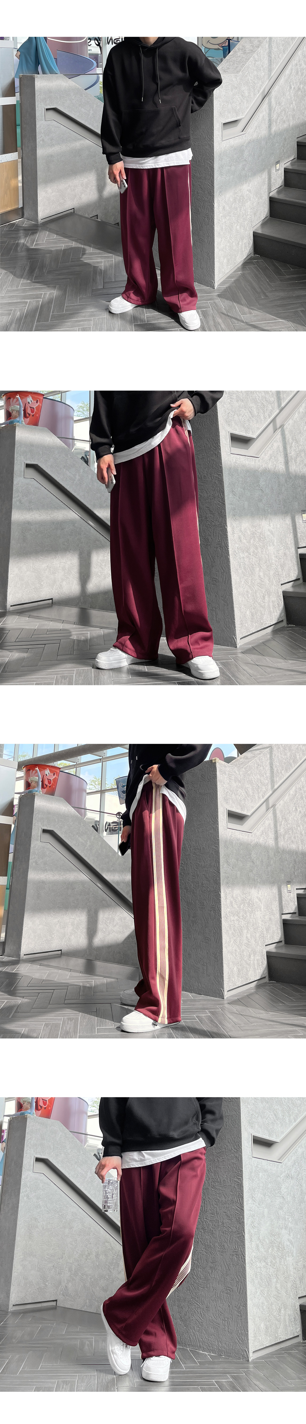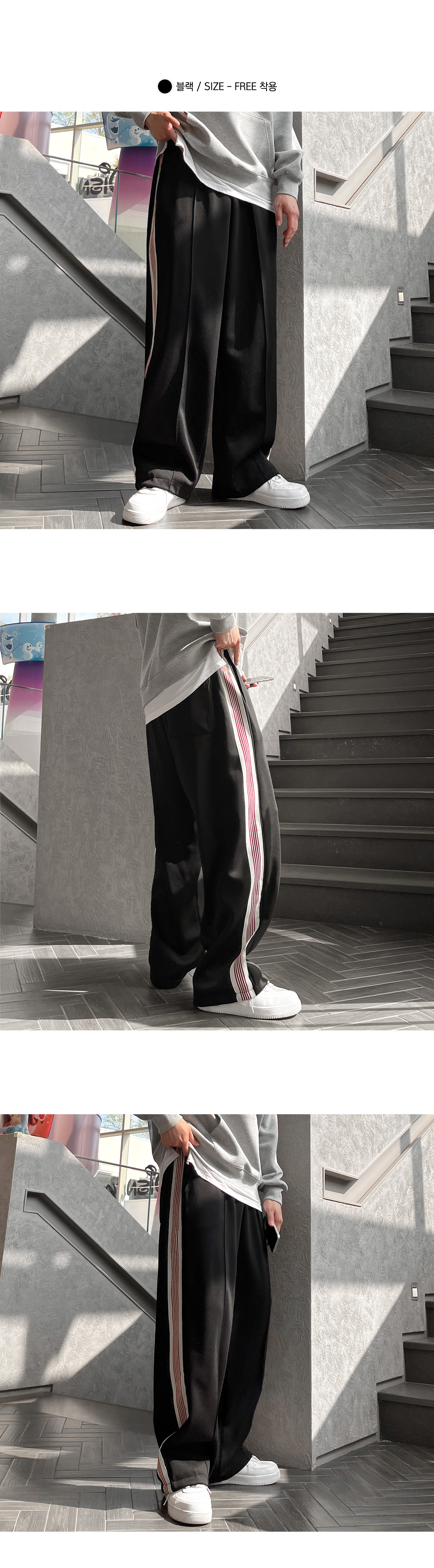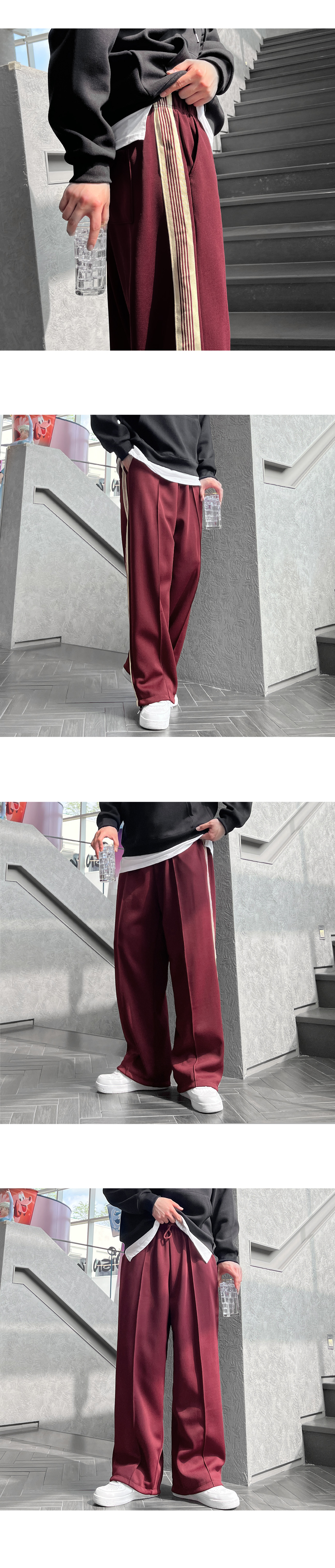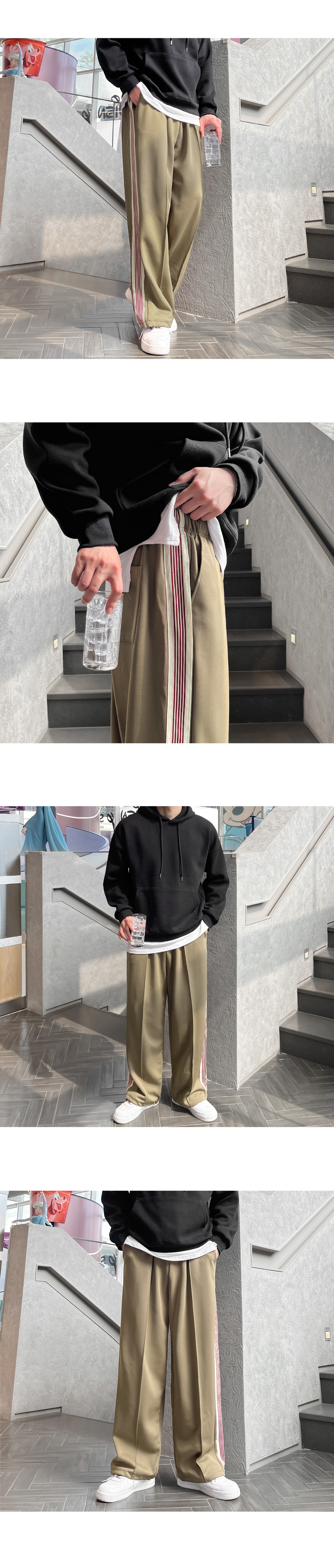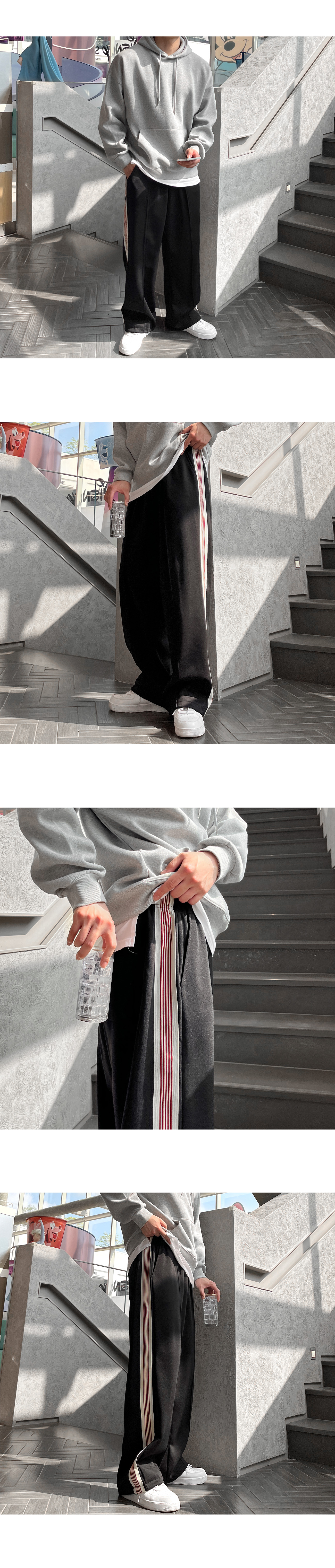 사이드 레드 테잎 트랙 2WAY 스판 와이드 팬츠