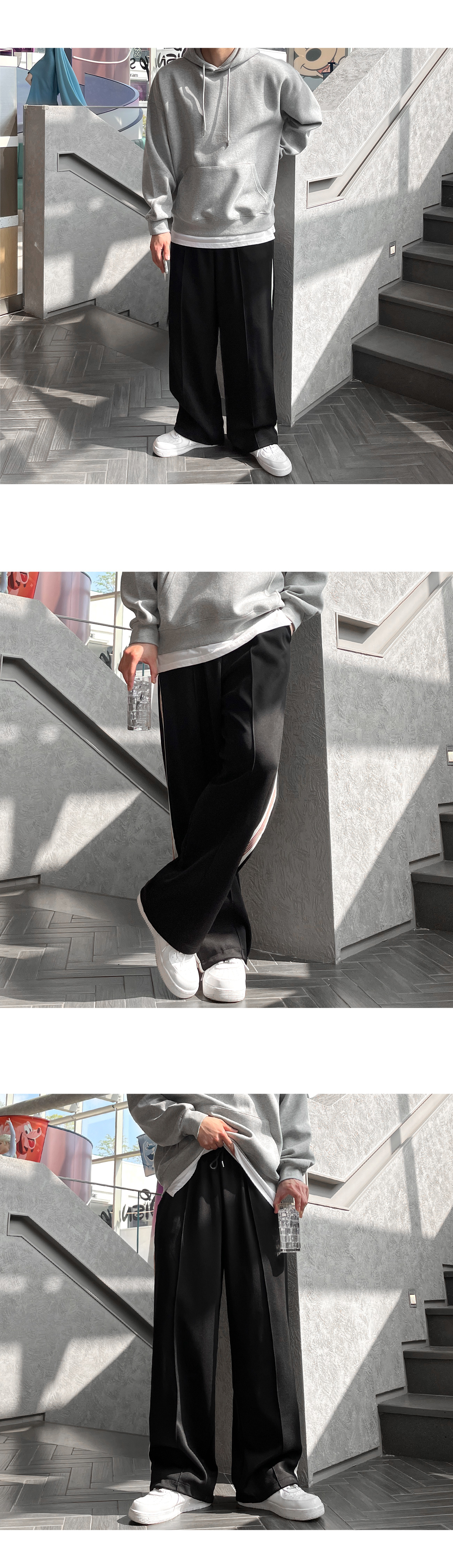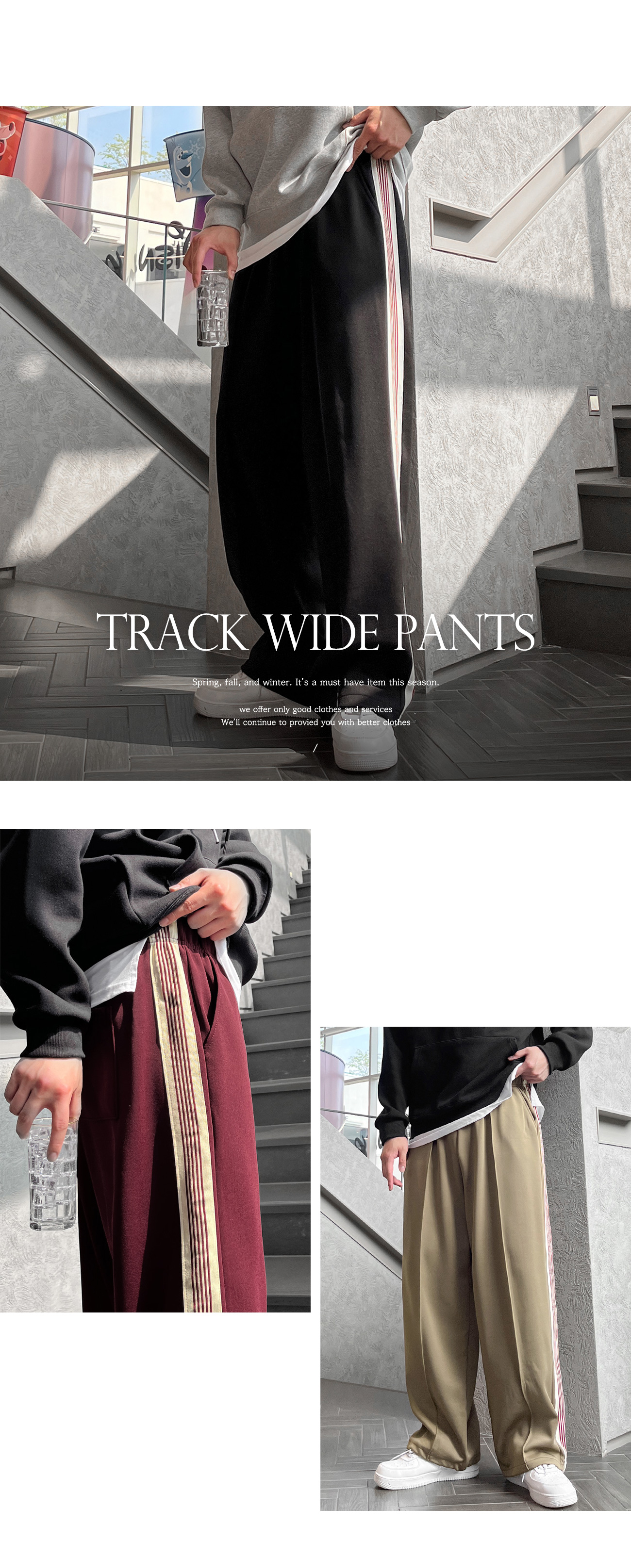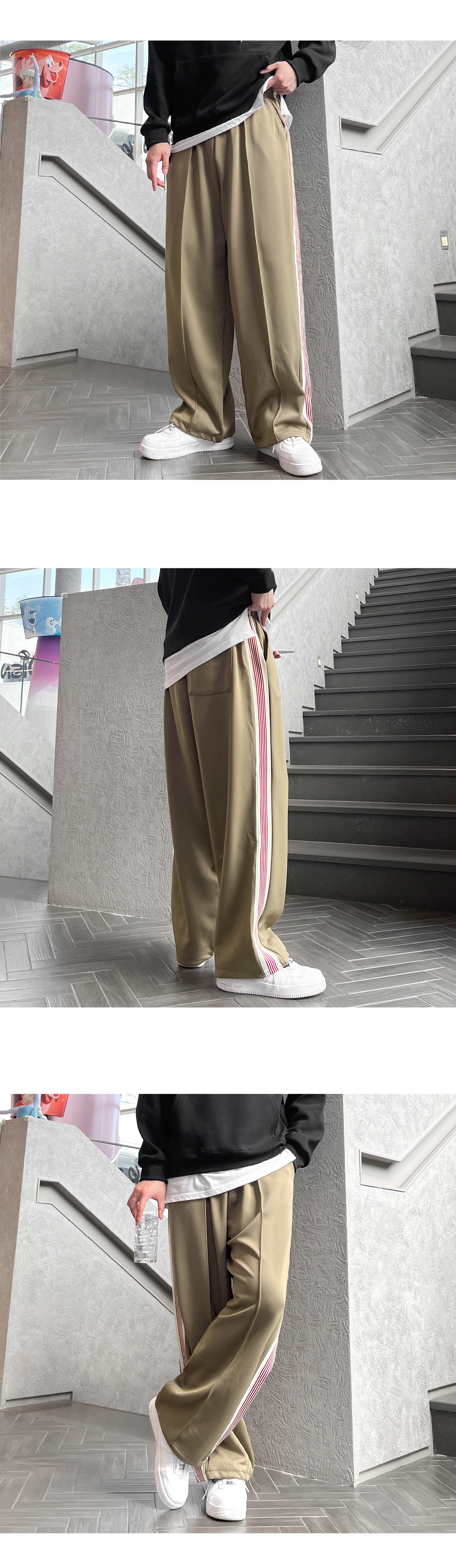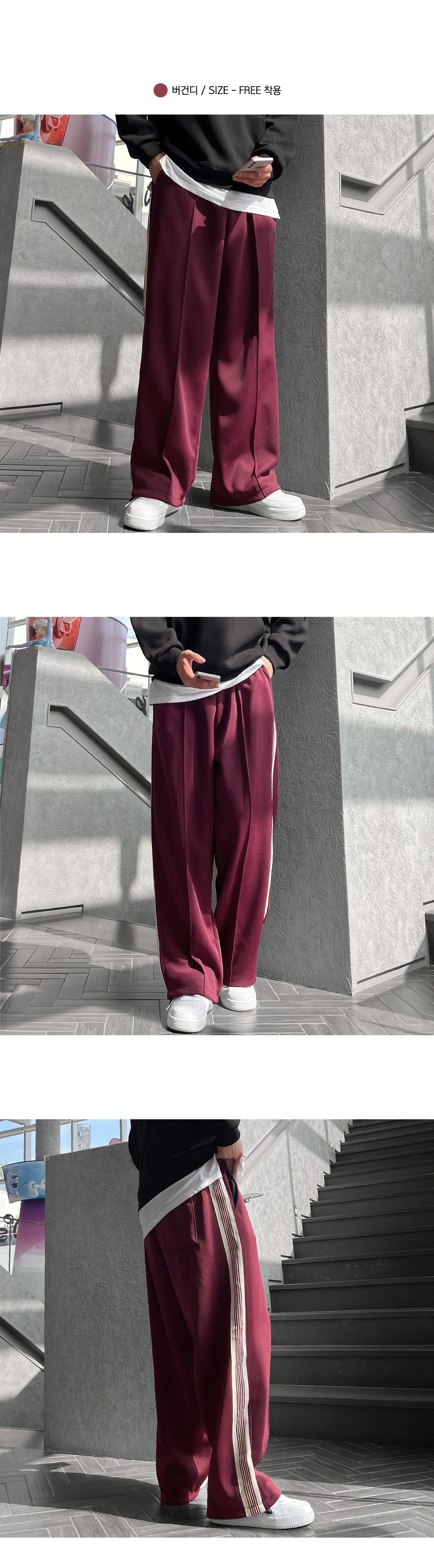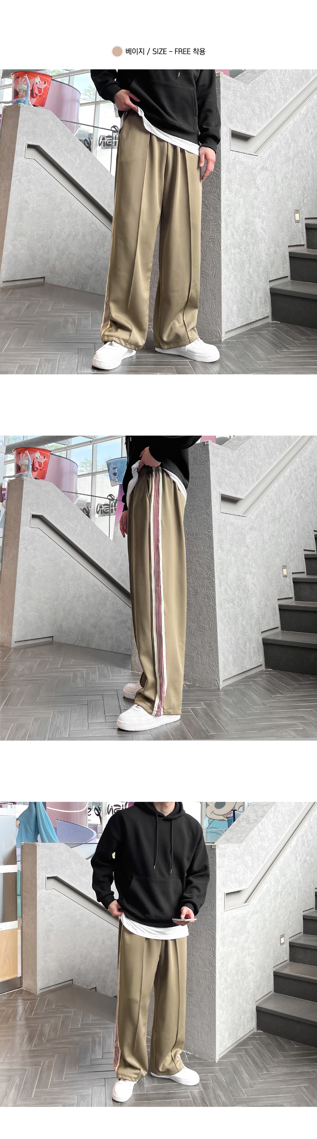 사이드 레드 테잎 트랙 2WAY 스판 와이드 팬츠