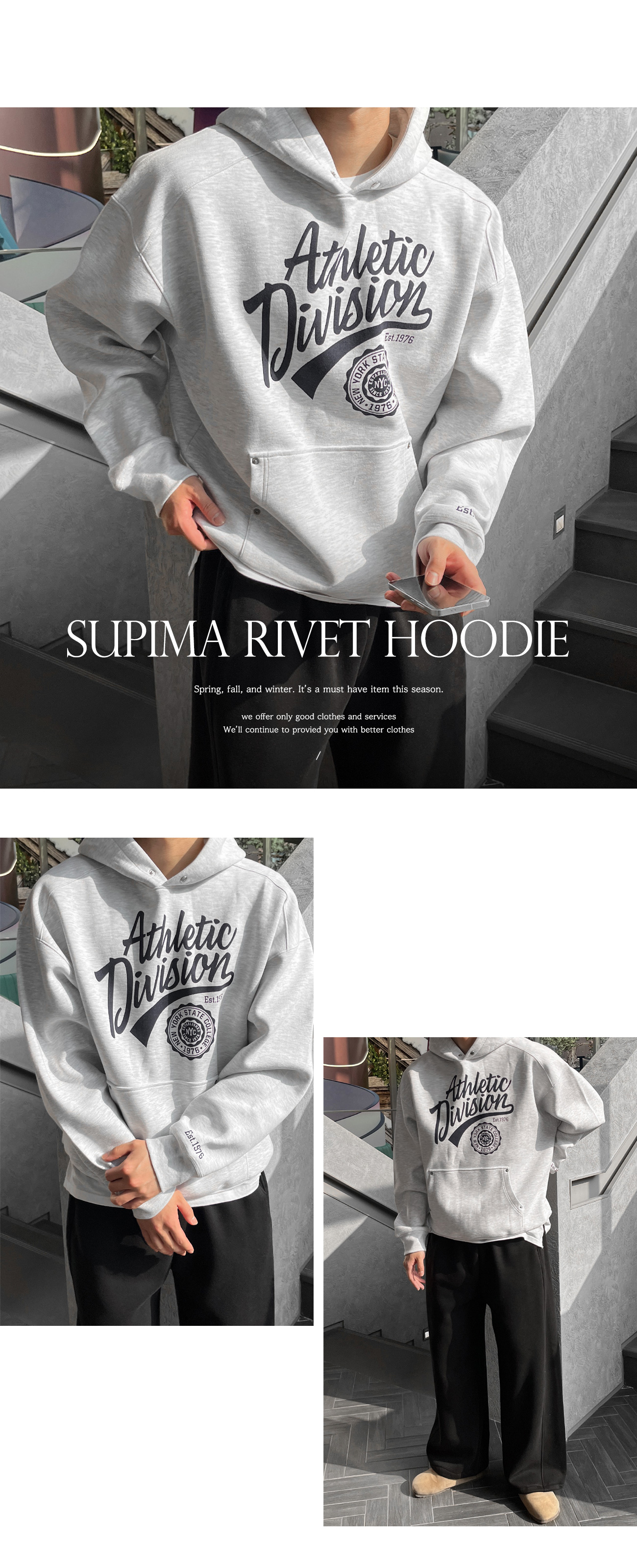 수피마 코튼 이중지 리벳 후드티