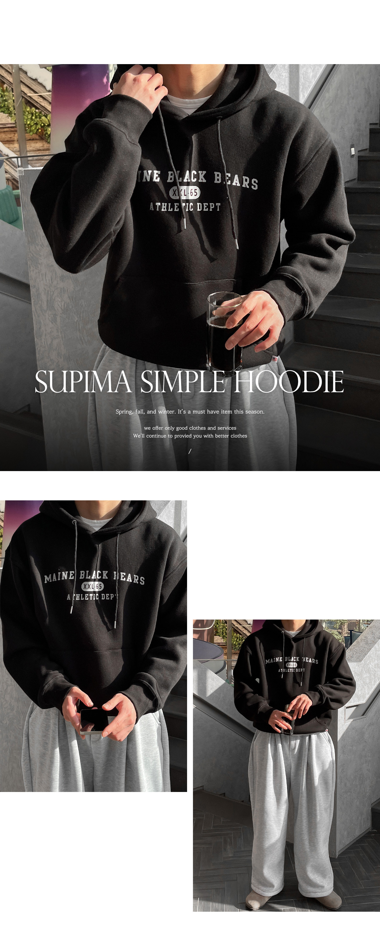오버핏 수피마 절개 후드티