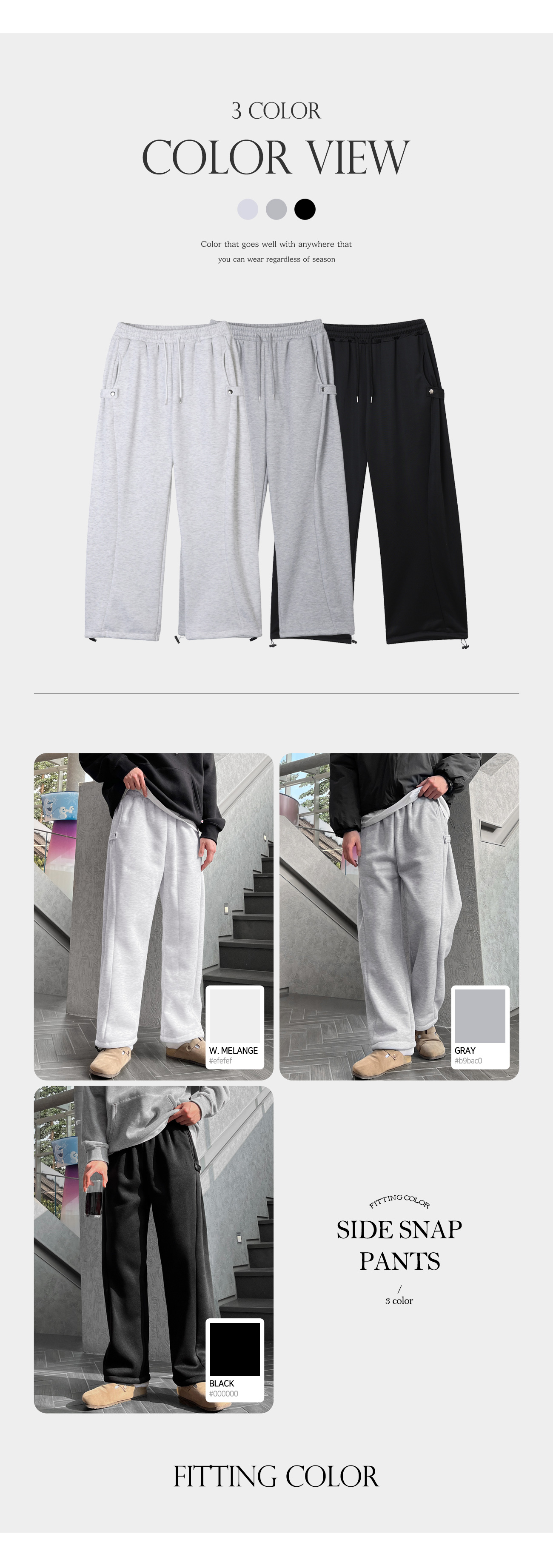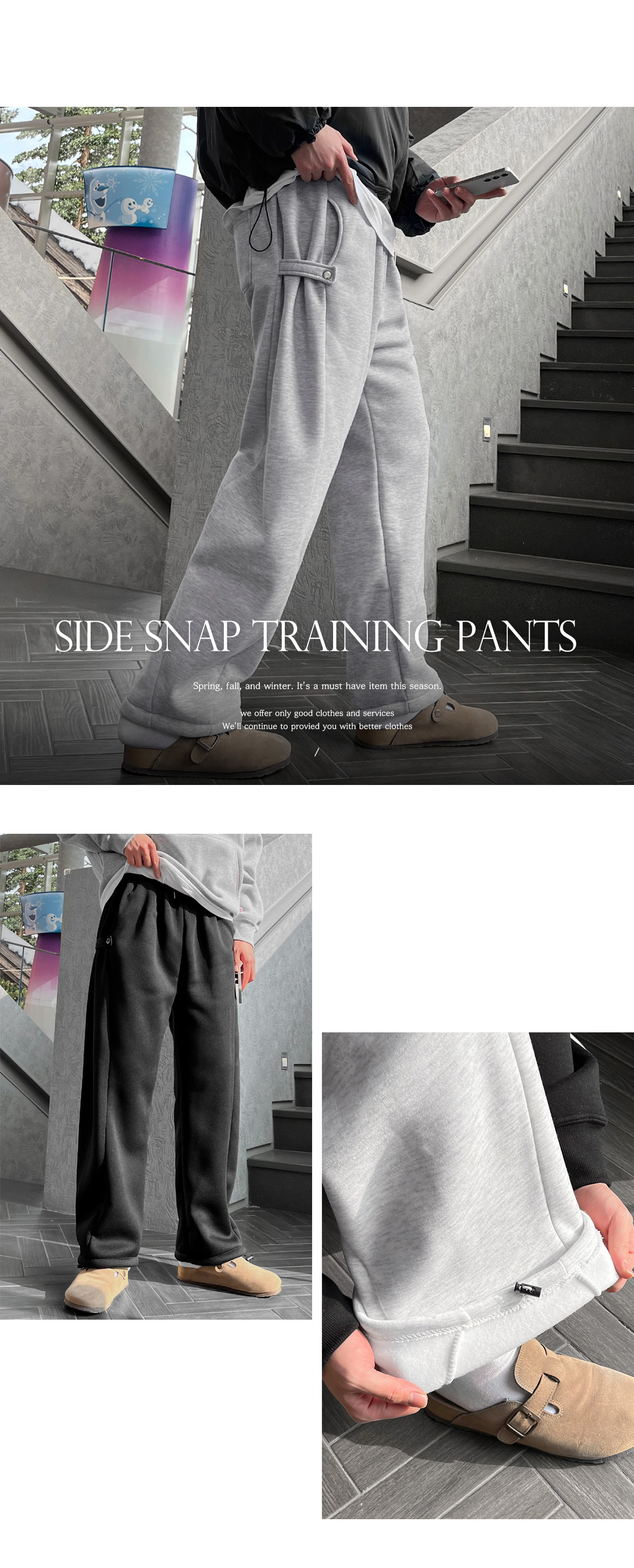 기모 CP 코튼 2WAY 사이드 스냅 트레이닝 팬츠