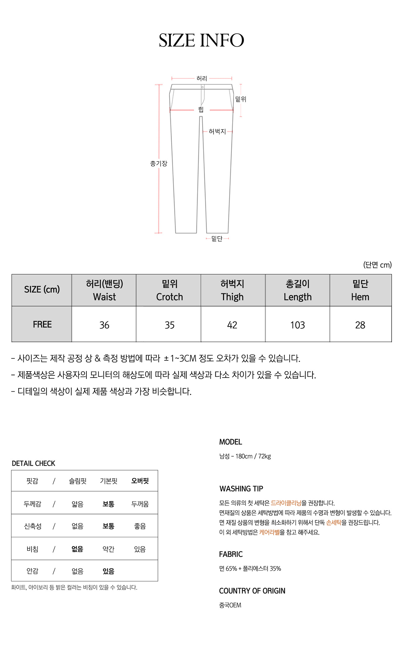 • 워싱처리된 상품의 진한정도가 다를 경우 불량으로 처리가 불가합니다.(제품마다 상이합니다.)