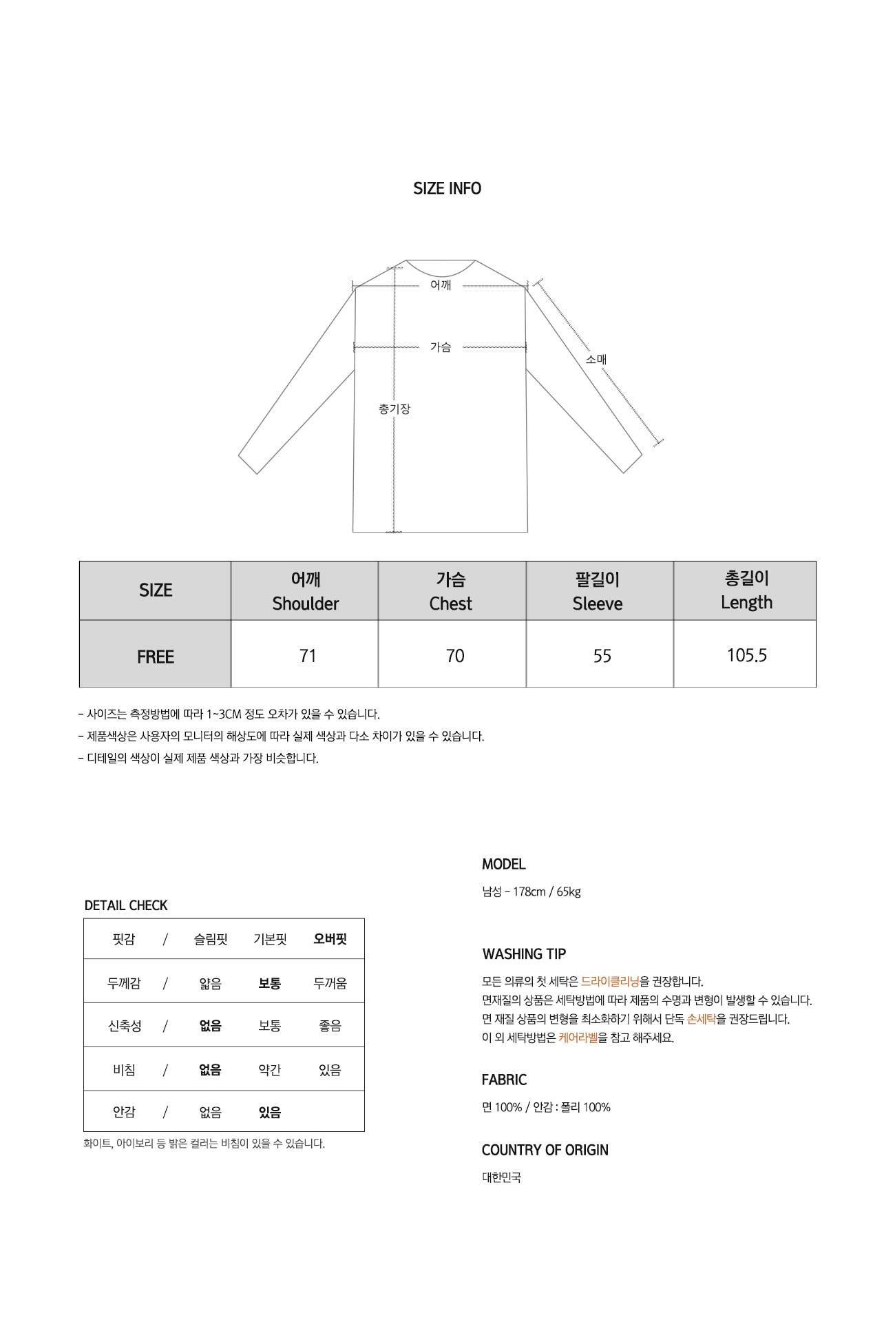 손세탁시 미지근한 물에 중성세제로 누르 듯이 단독 세탁해주세요. 기계세탁은 뒤집어서 망에 넣고 울 코스로 단독 세탁 해주세요. 비틀어 짜지 말고 가볍게 물기 제거 후 그늘진 곳에 뉘어서 자연 건조해주세요. ※ 금지사항 : 삶기 X 건조기 X 비틀기 X 표백제 X