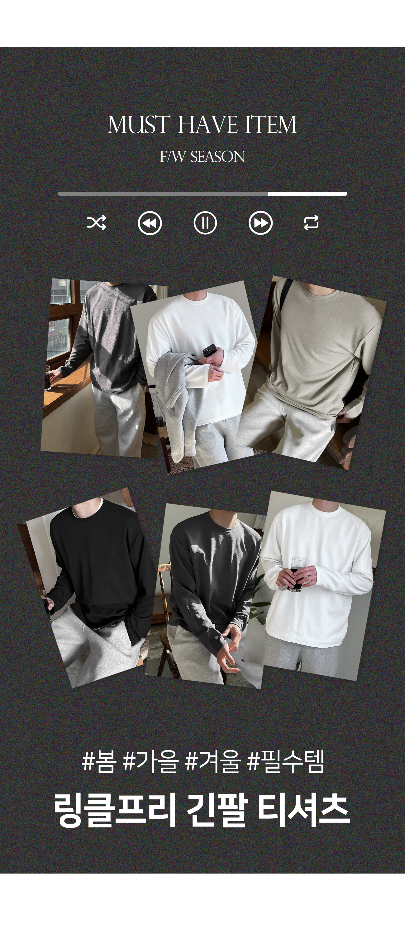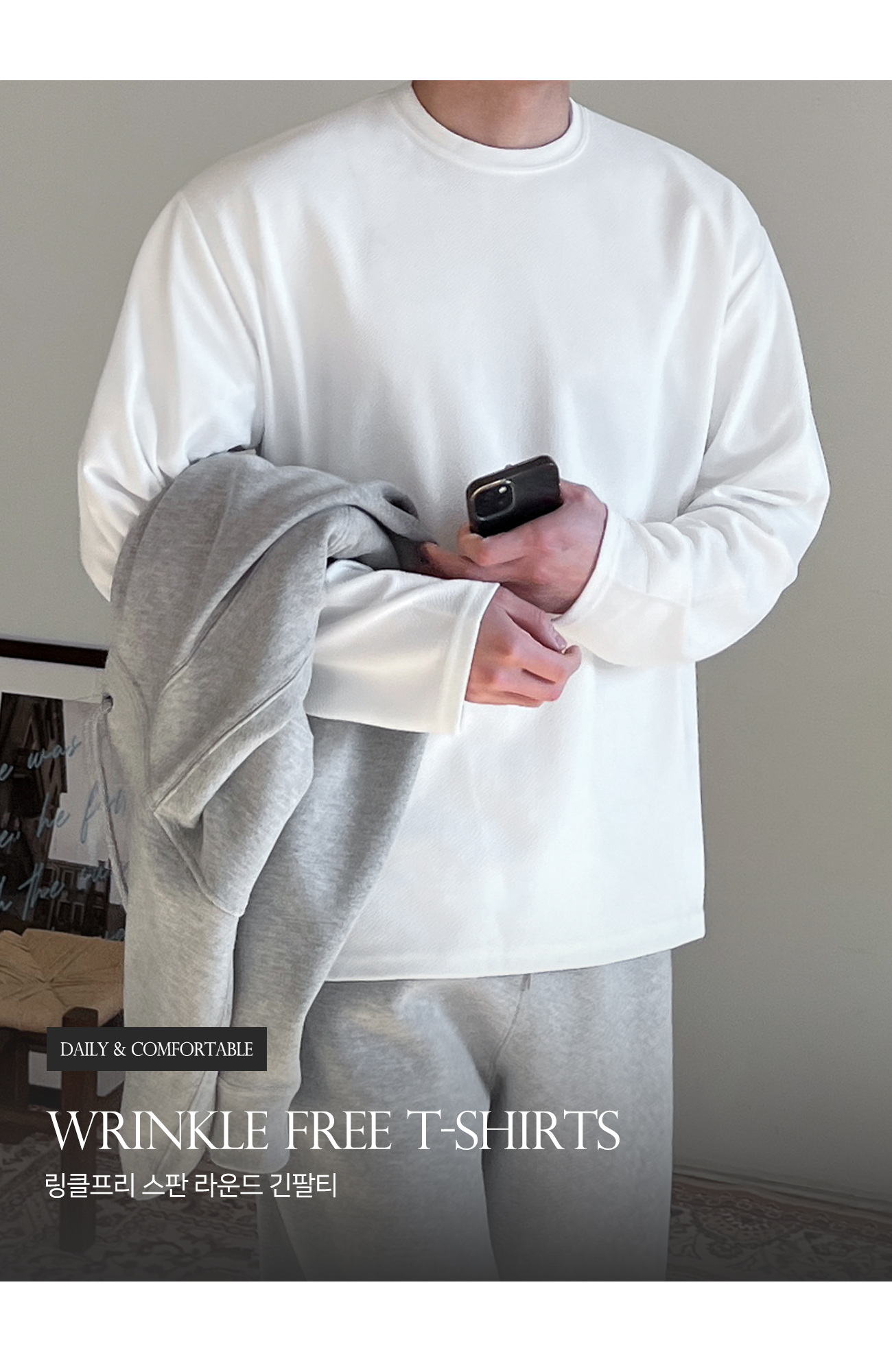 [당일출고] 메인 링클프리 스판 라운드 긴팔티 (1+1 17,600원)