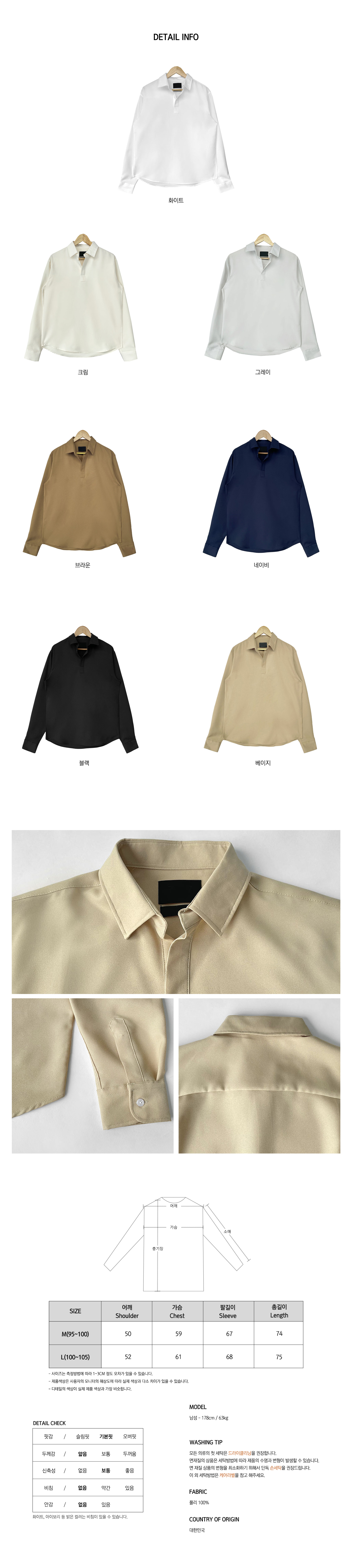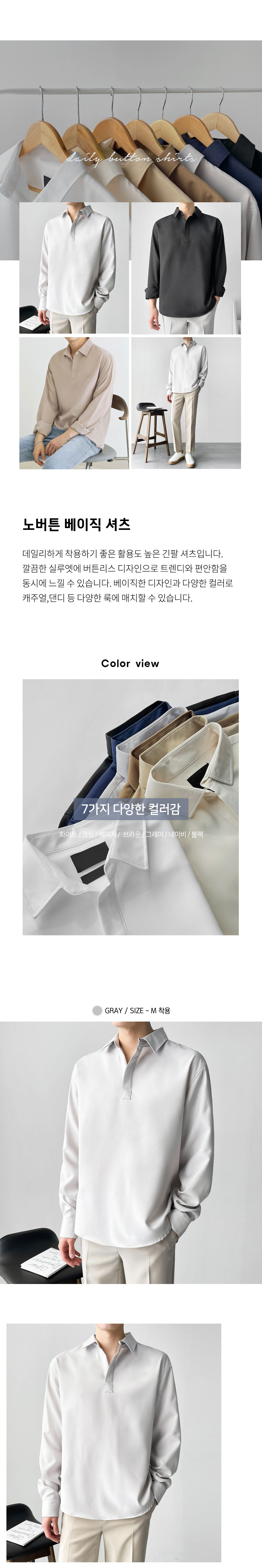 7컬러 데일리 버튼레스 셔츠