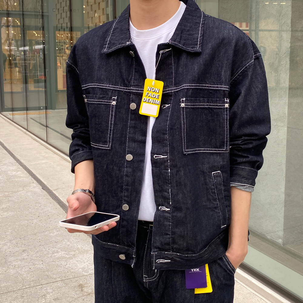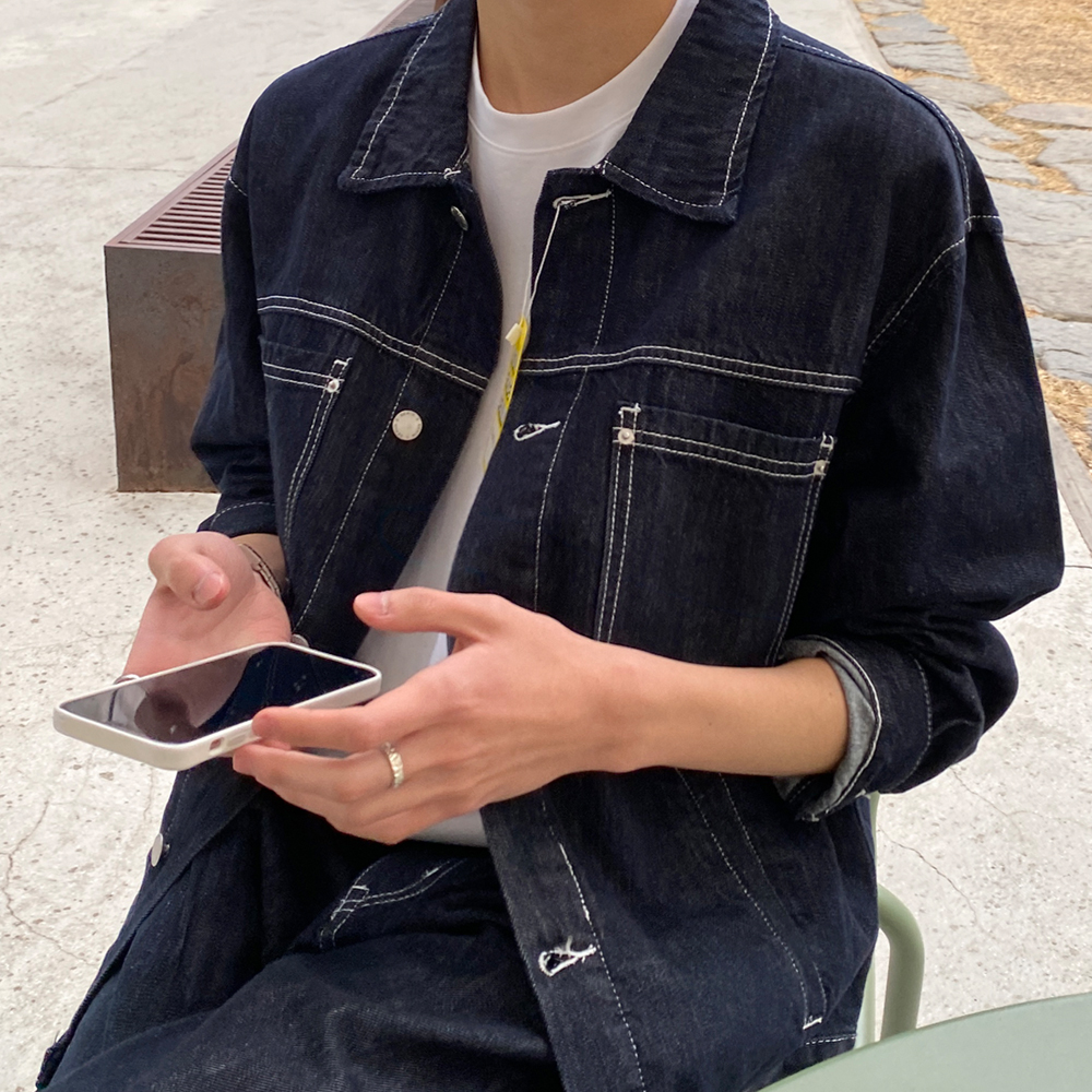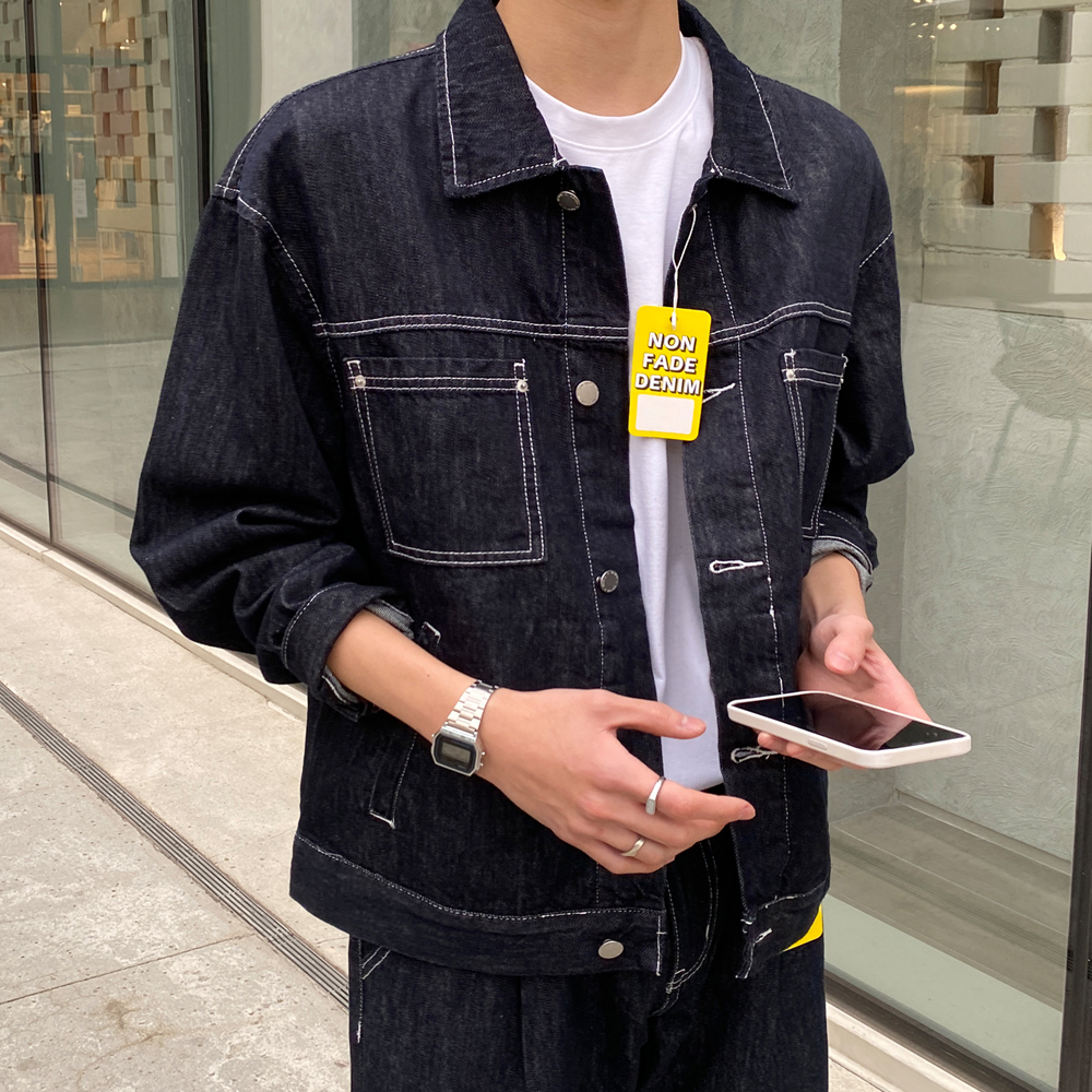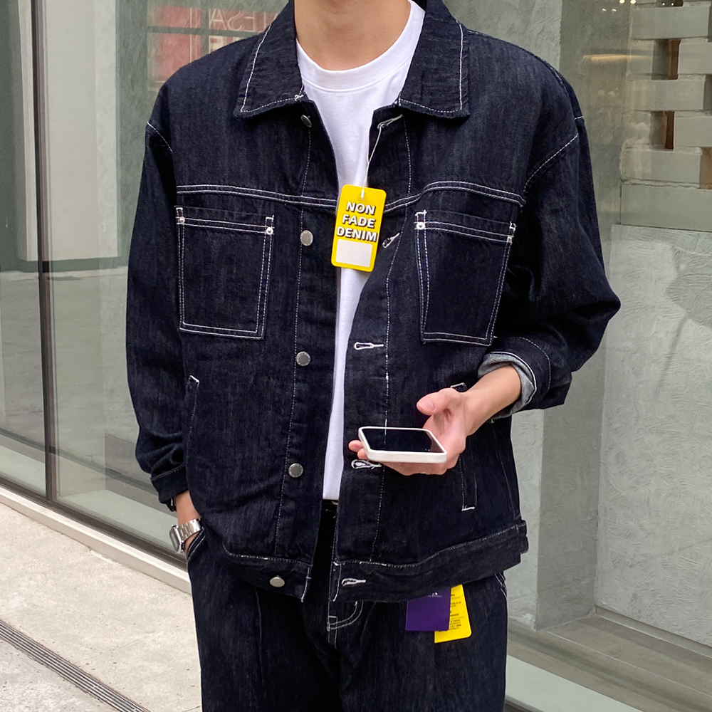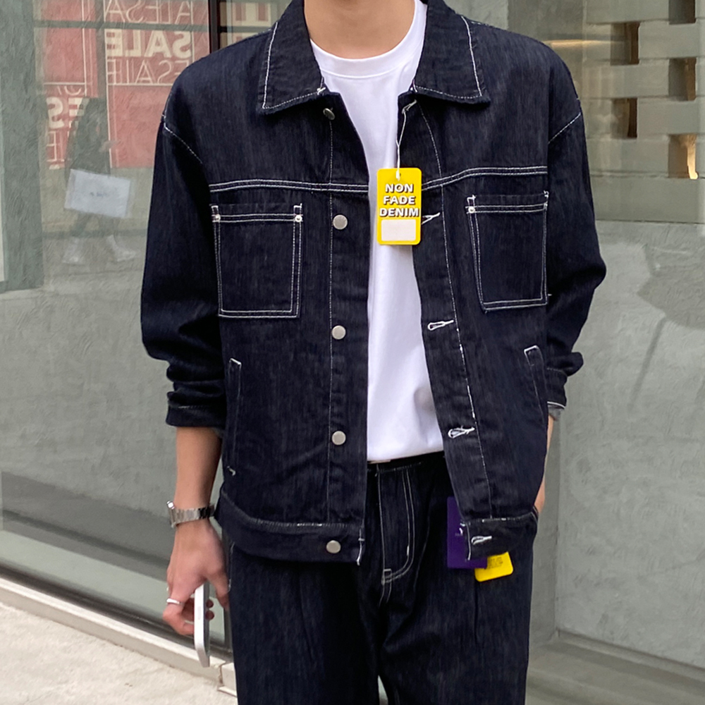 논스판 논페이드 콜로 생지 데님 자켓