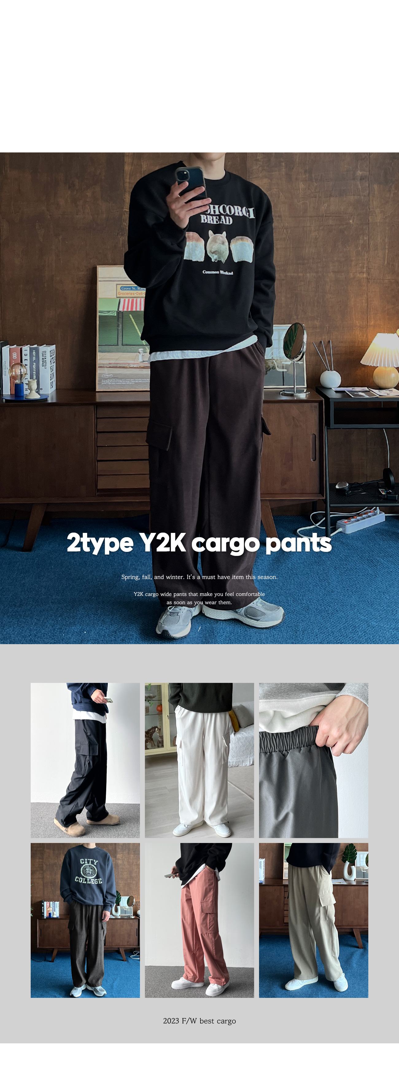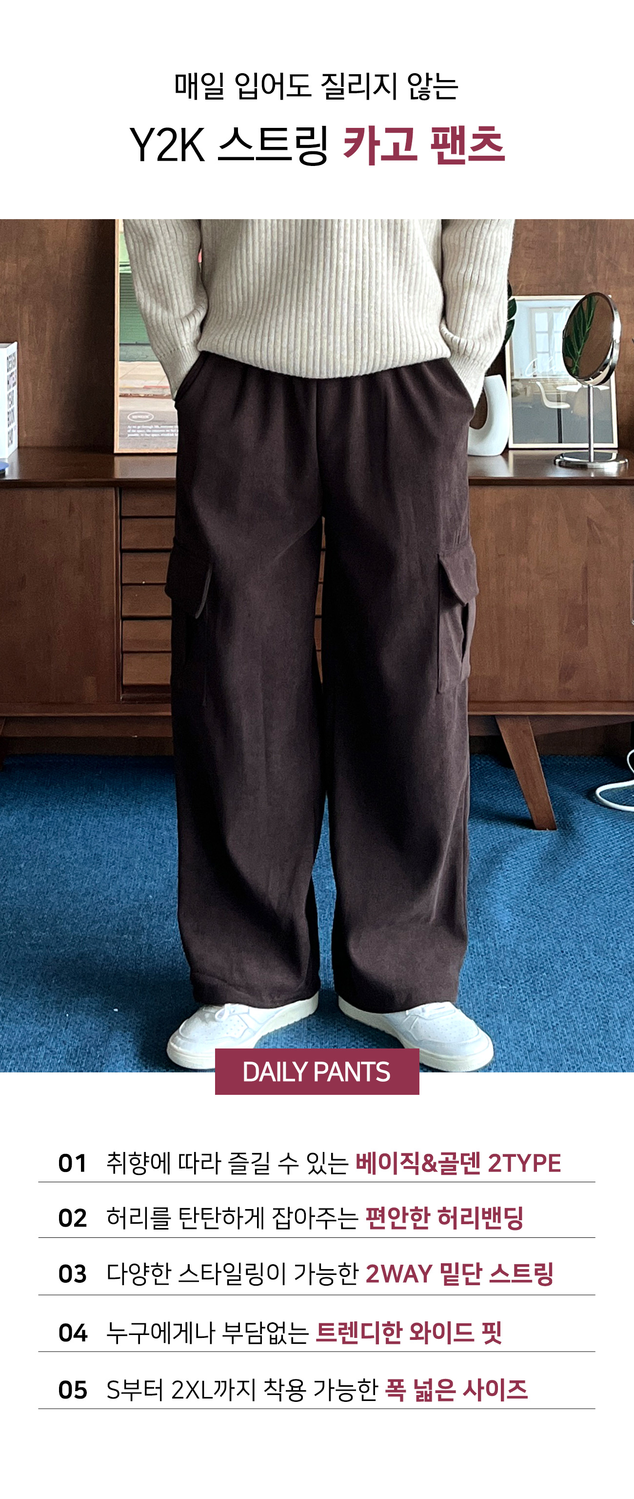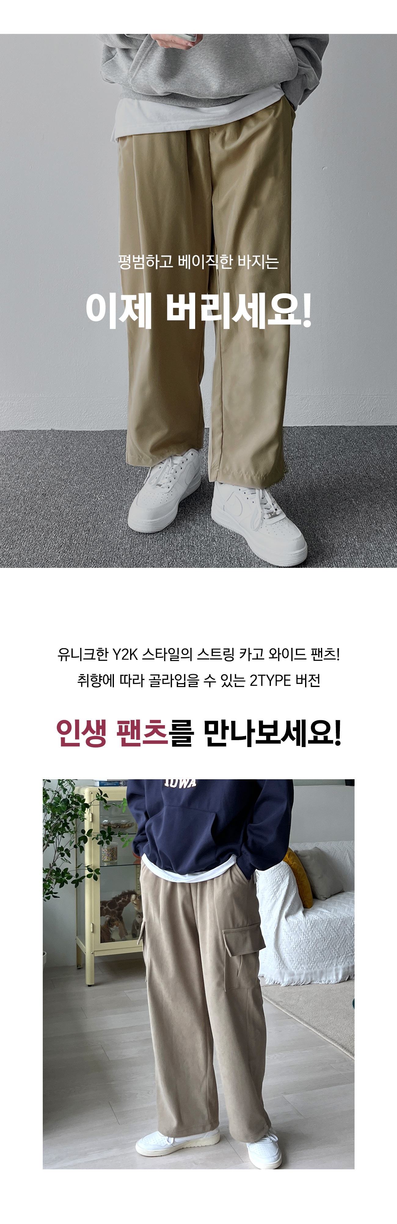 2TYPE 베이직&골덴 Y2K 스트링 와이드 카고 팬츠