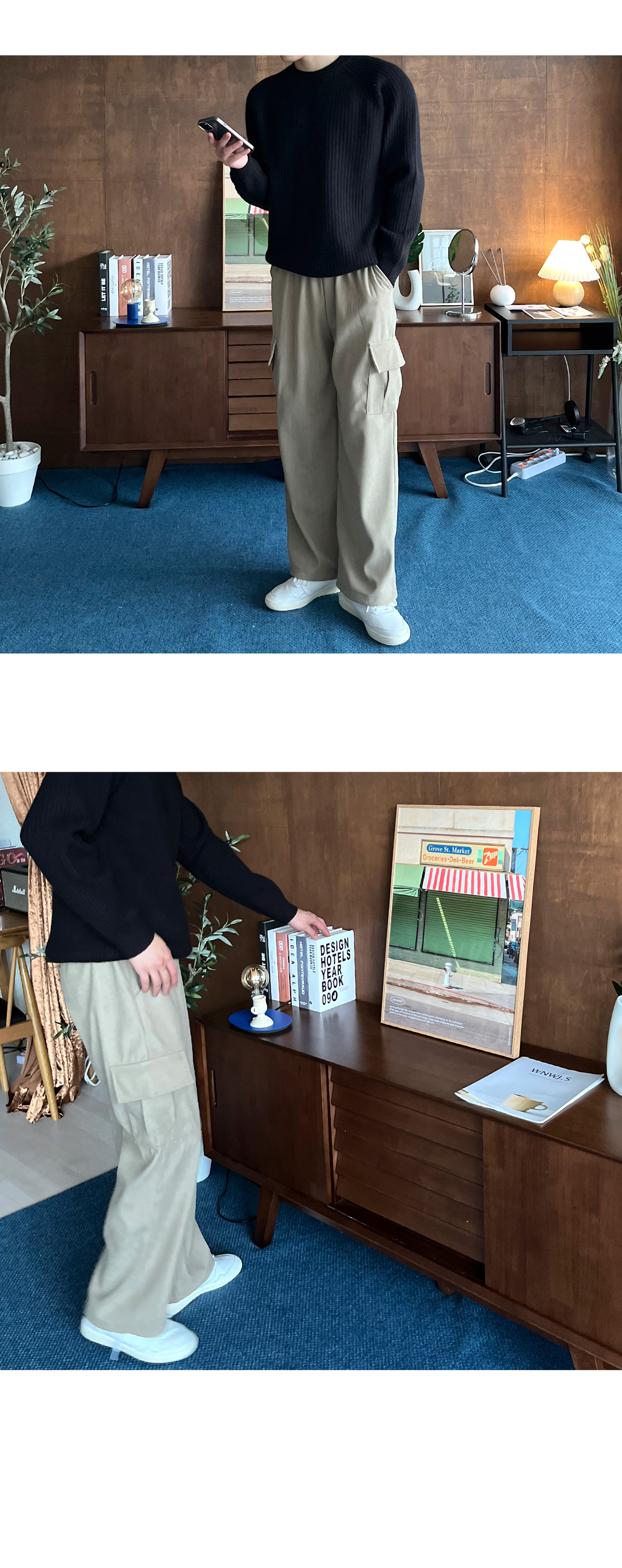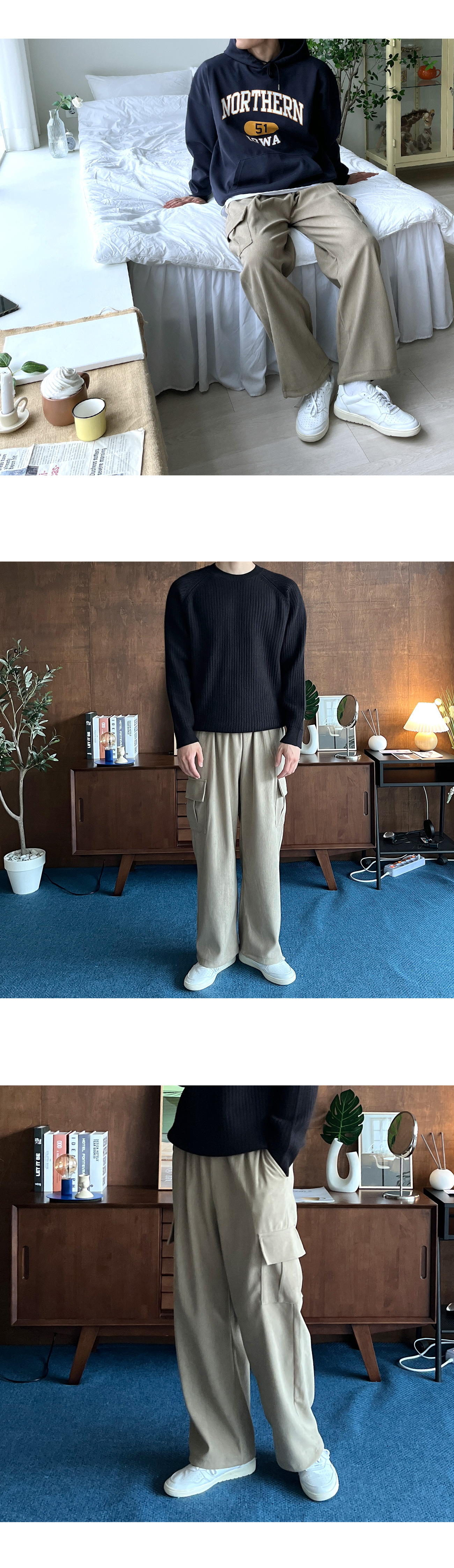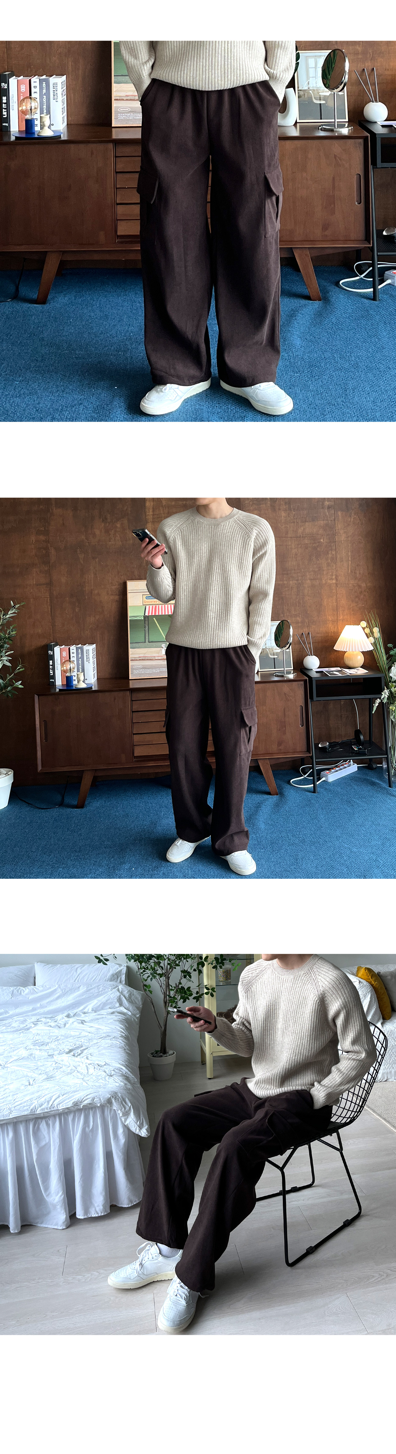 2TYPE 베이직&골덴 Y2K 스트링 와이드 카고 팬츠