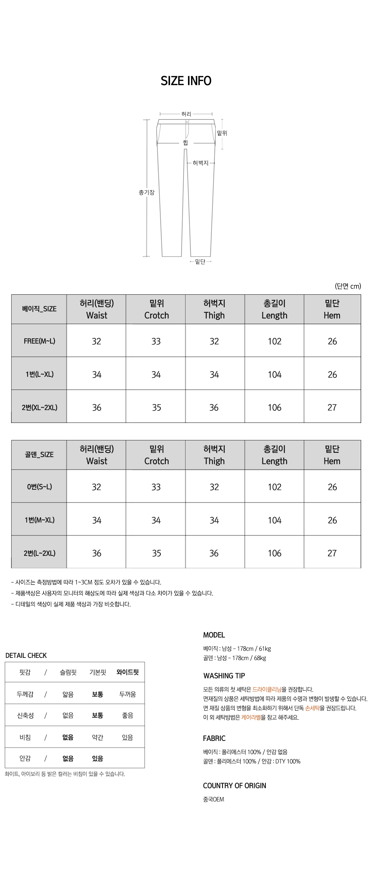 • 워싱처리된 상품의 진한정도가 다를 경우 불량으로 처리가 불가합니다.(제품마다 상이합니다.)