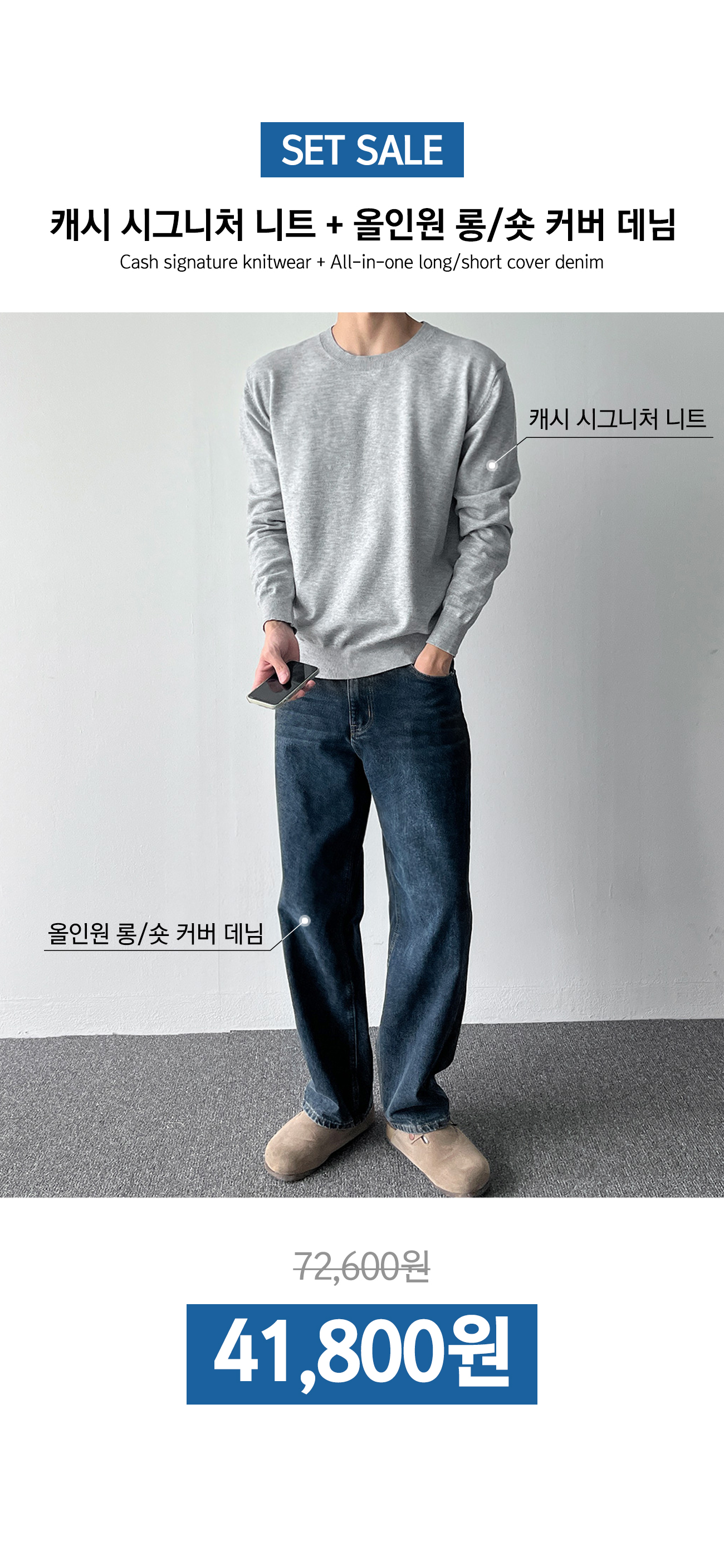 [SET] 캐시 시그니처 니트 + 올인원 롱/숏 커버 데님