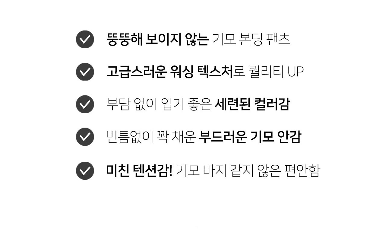 본딩기모 안감으로 겨울에도 따뜻하게 착용감을 느끼실 수 있습니다.