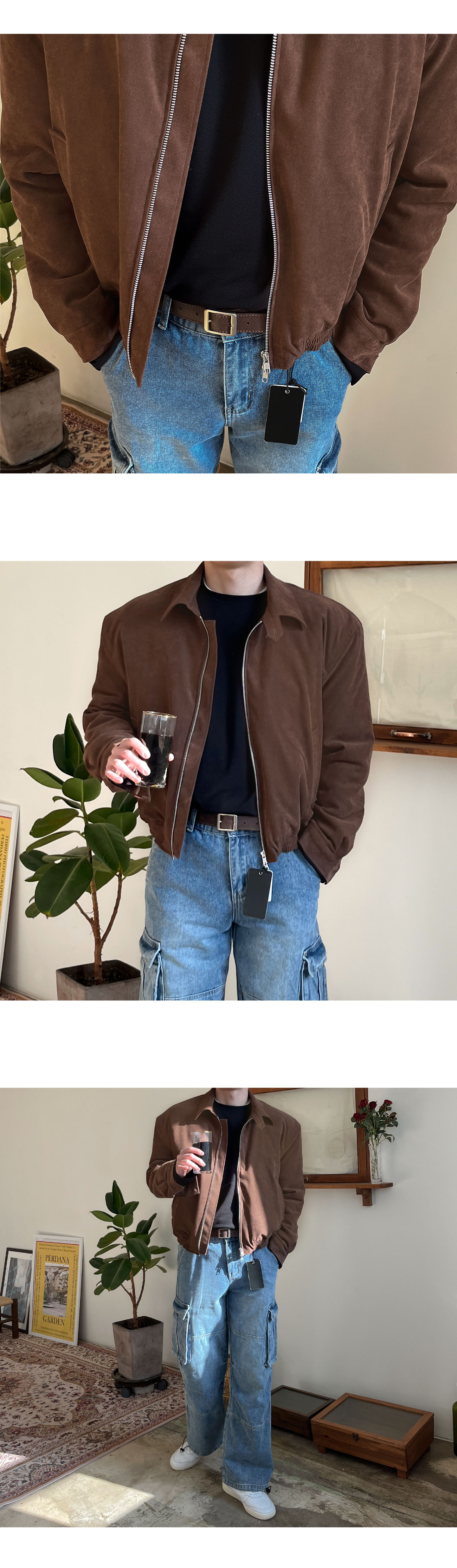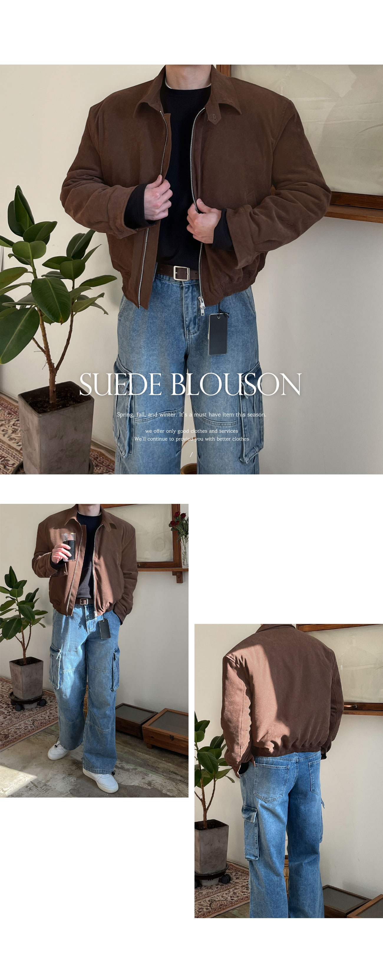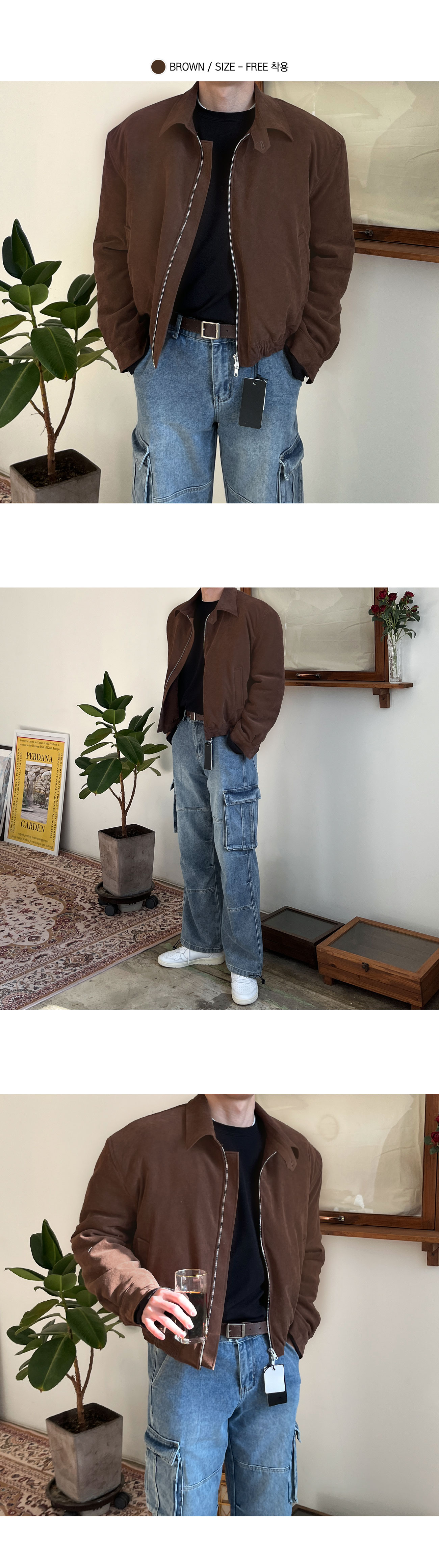 세미오버핏 블루종 스웨이드 점퍼