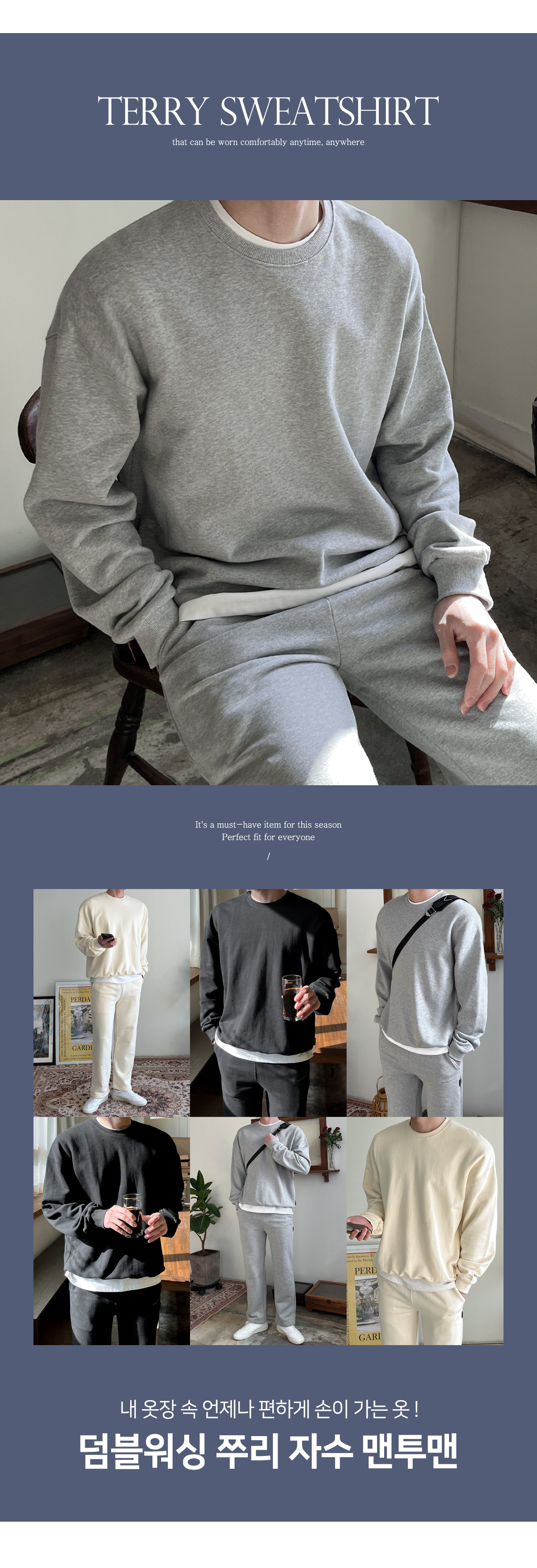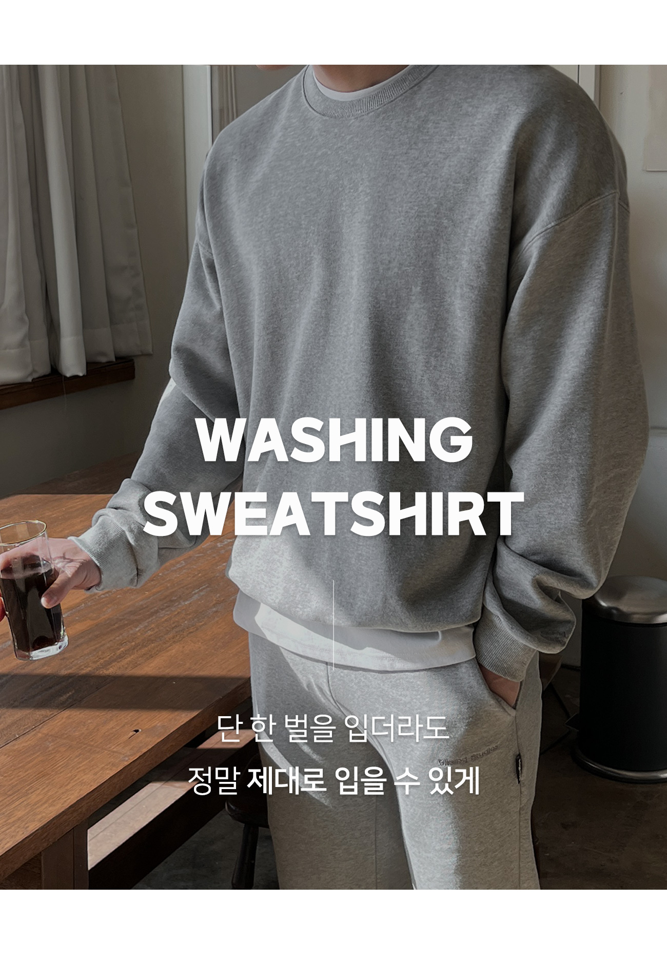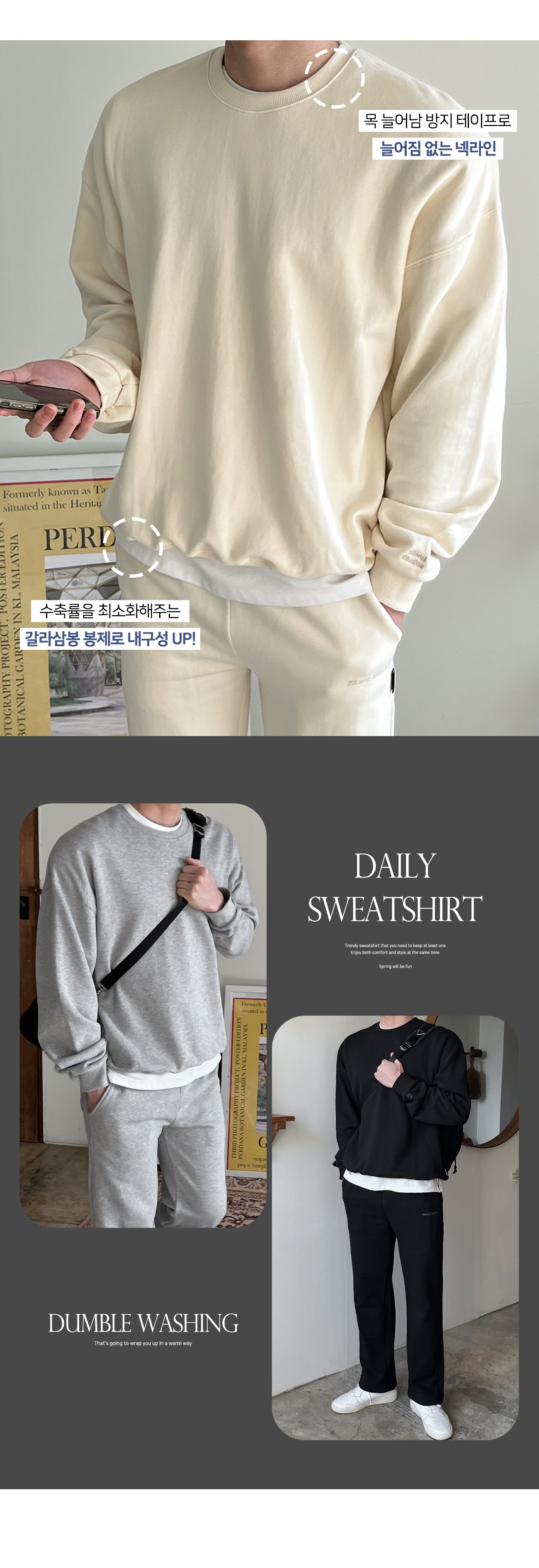 [SET] 30수 덤블워싱 레이어드티 + 2TYPE 워싱 쭈리 맨투맨