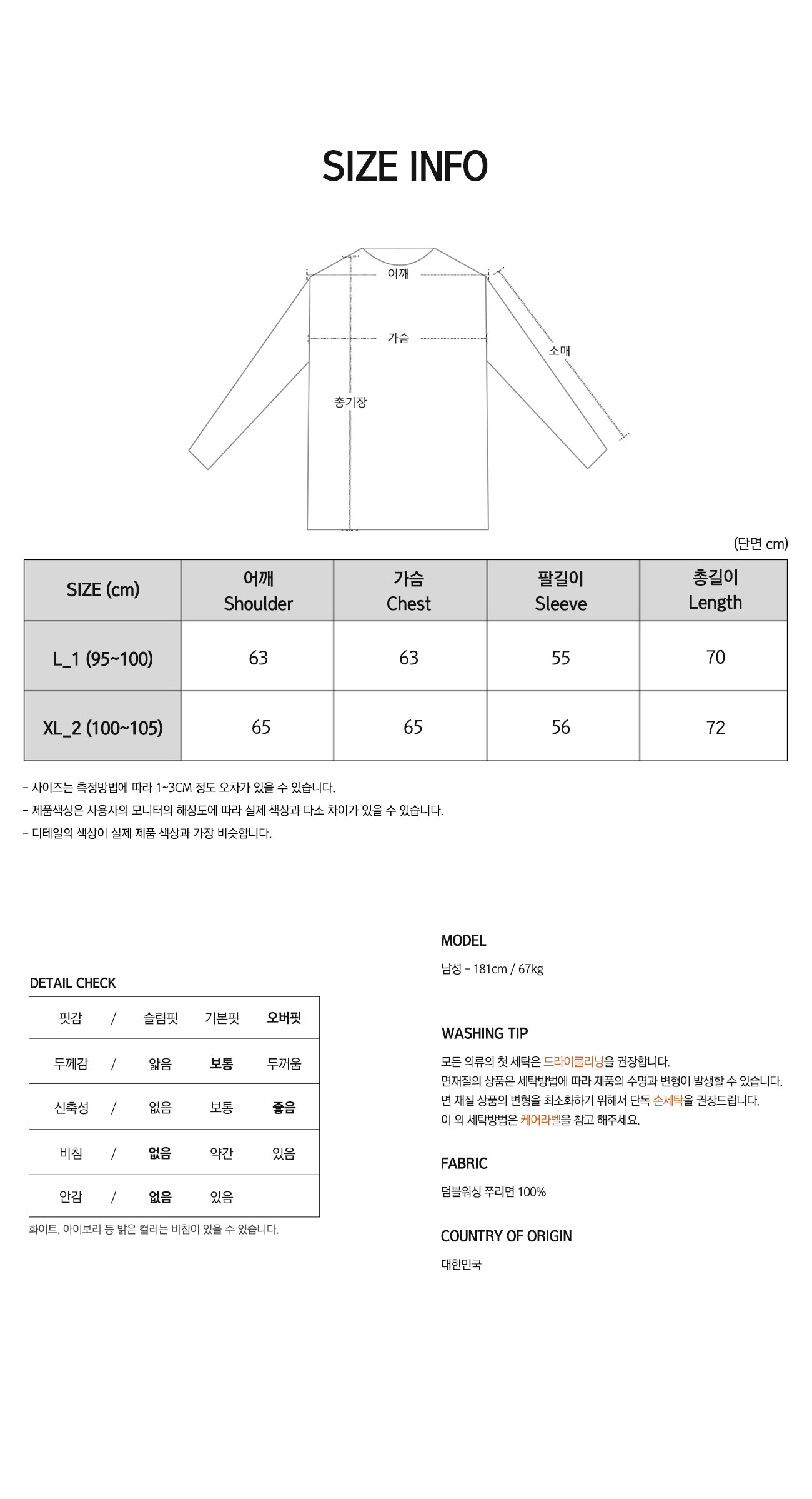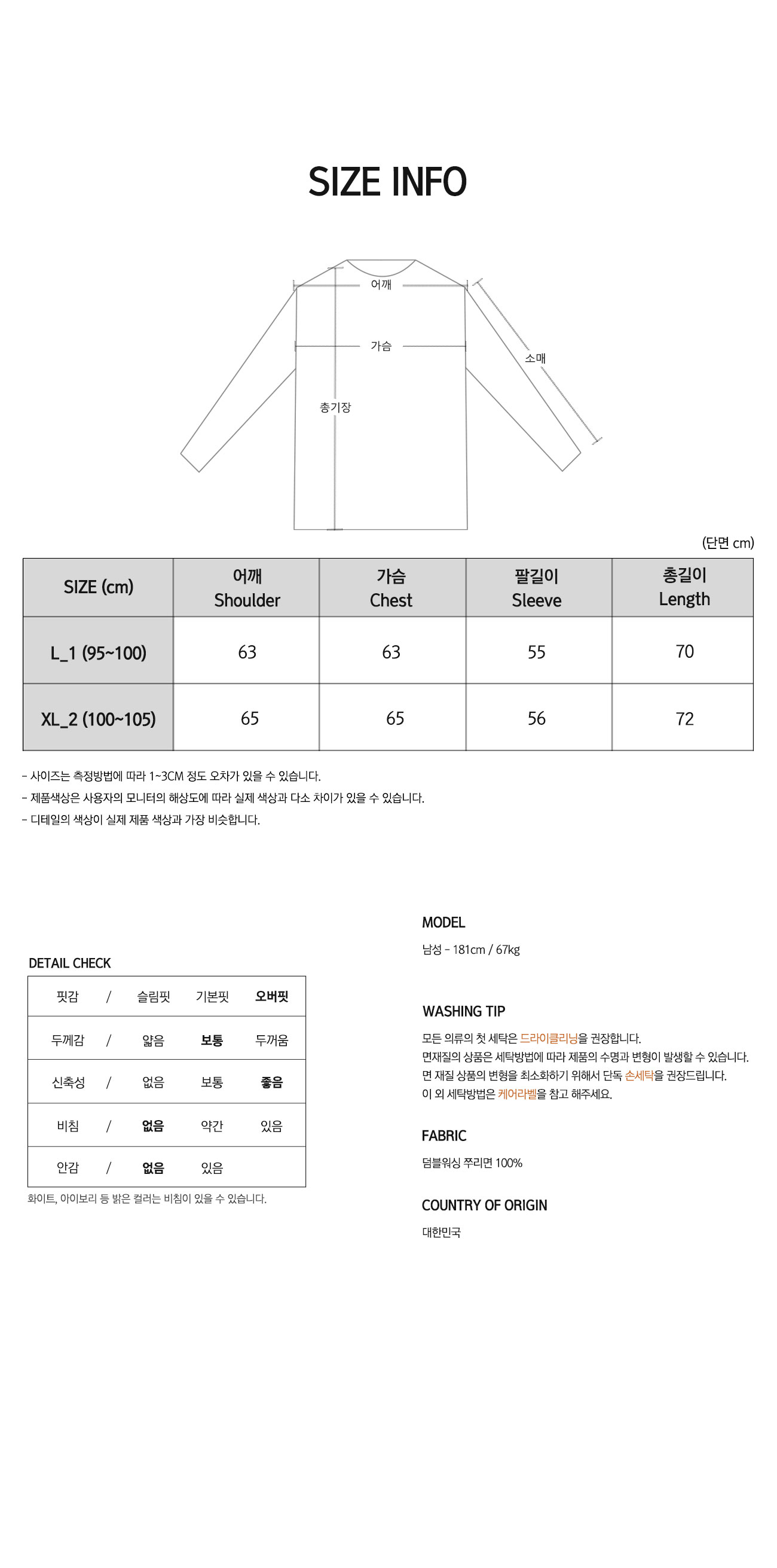 • 제작업체 및 제작 공정에 따라 상품 텍의 유무가 달라질 수 있습니다. 이것은 불량 사유가 되지 않습니다.