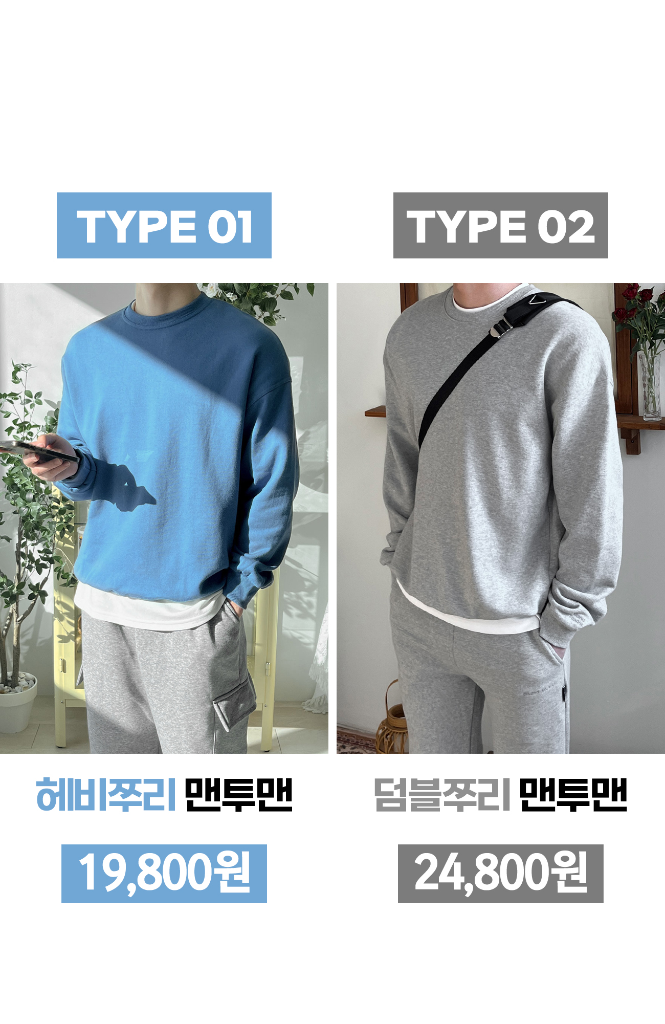 2TYPE 맨투맨_타입/색상/사이즈