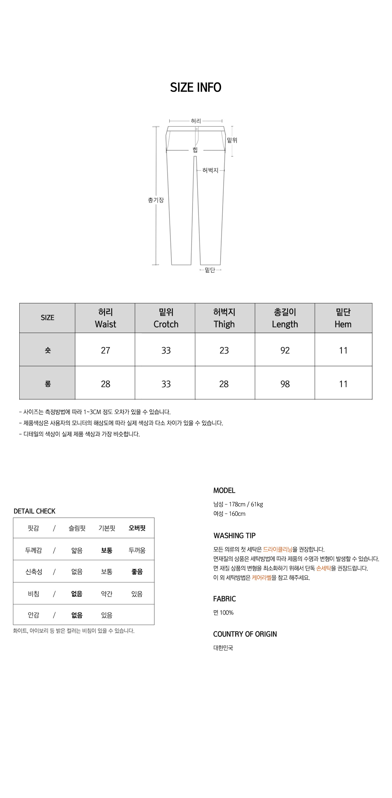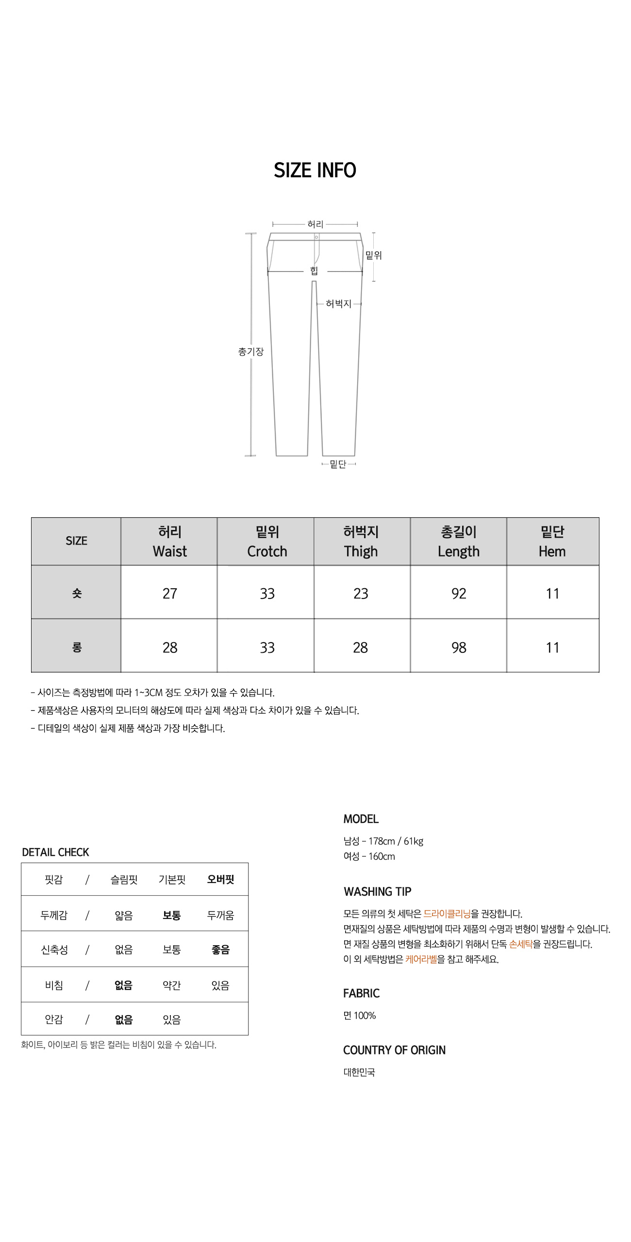 - 워싱처리된 상품의 진한정도가 다를 경우 불량으로 처리가 불가합니다.(제품마다 상이합니다.)
