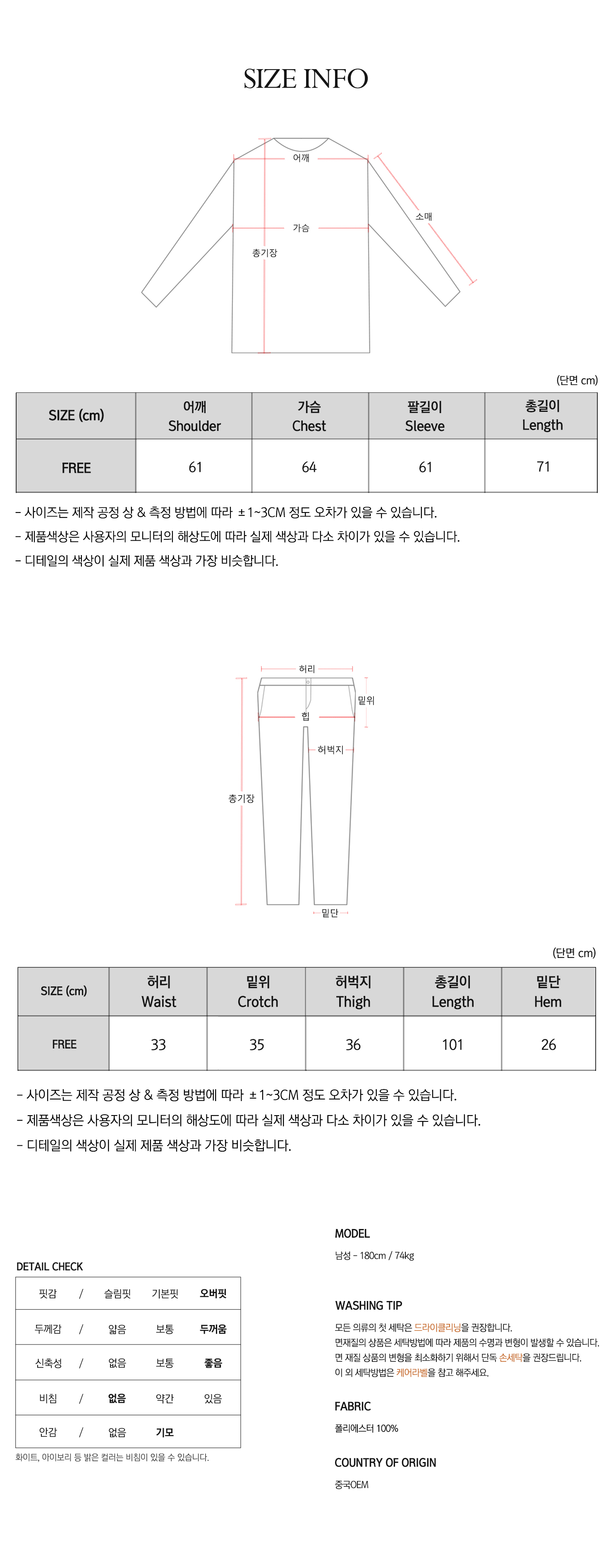 - 제작업체 및 제작 공정에 따라 상품 텍의 유무가 달라질 수 있습니다. 이것은 불량 사유가 되지 않습니다.