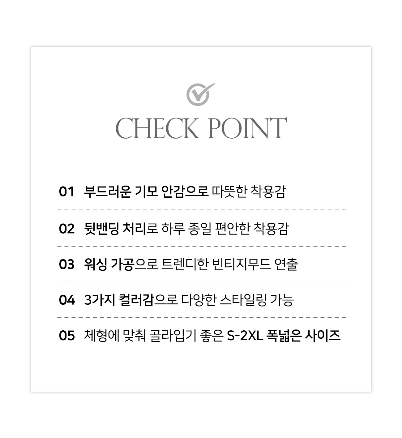 - 제작업체 및 제작 공정에 따라 상품 텍의 유무가 달라질 수 있습니다. 이것은 불량 사유가 되지 않습니다.