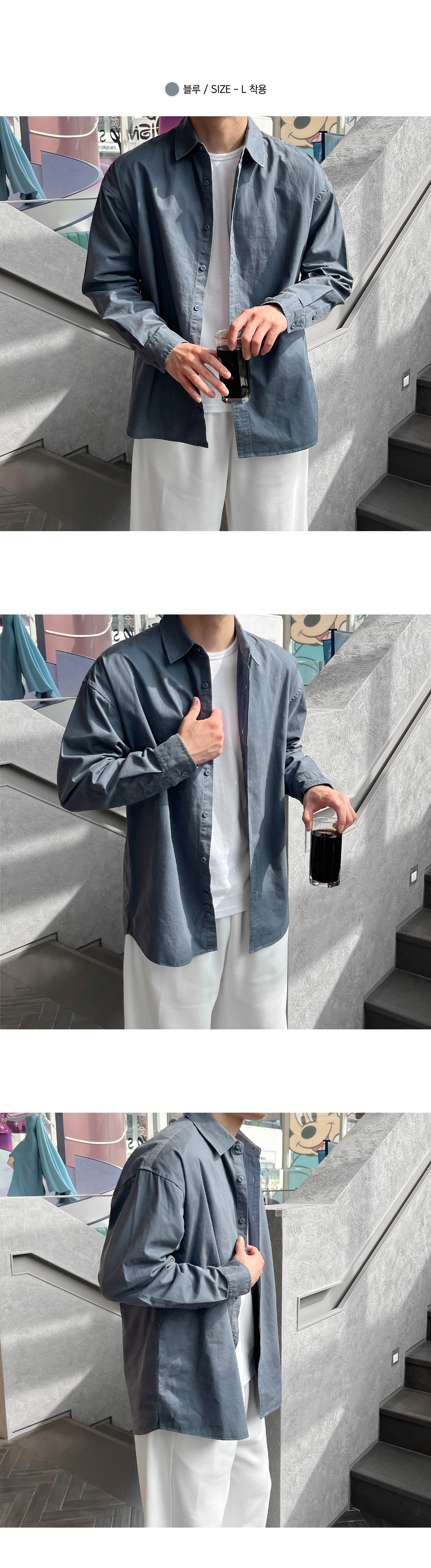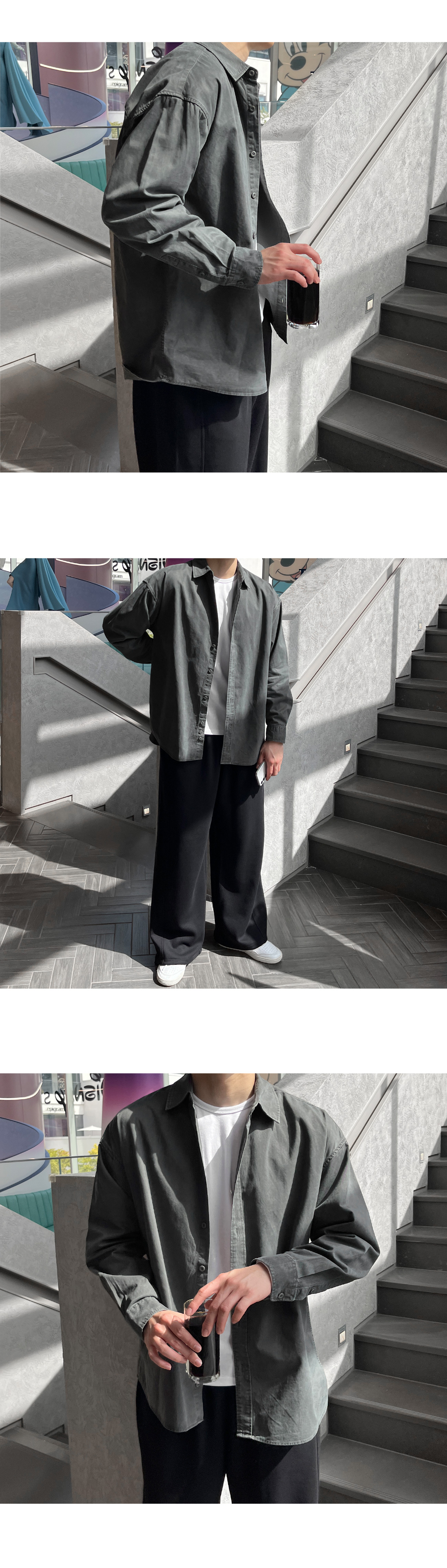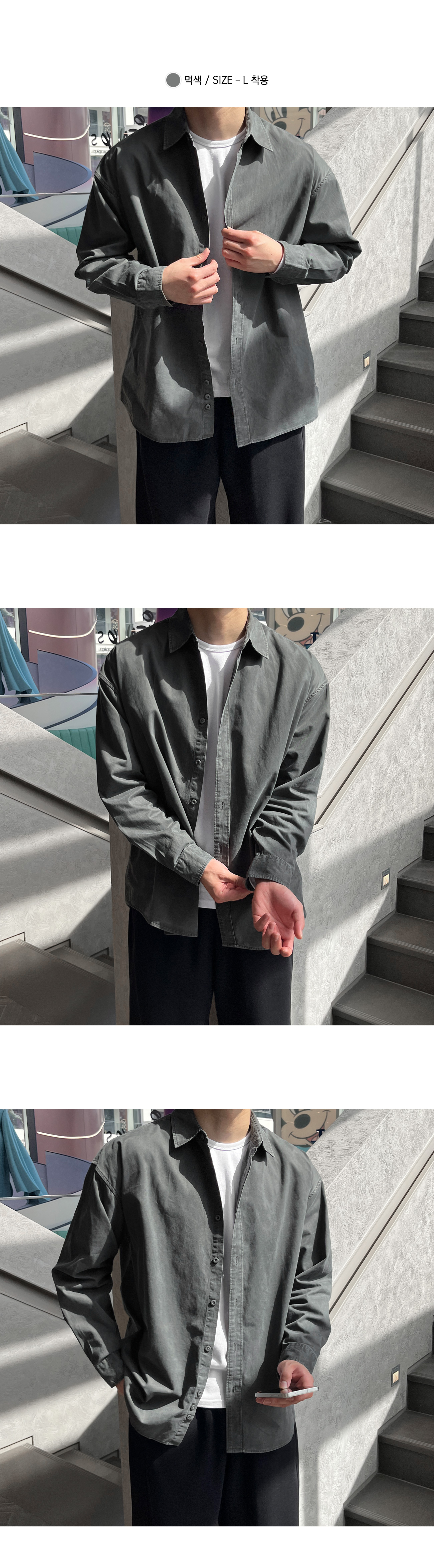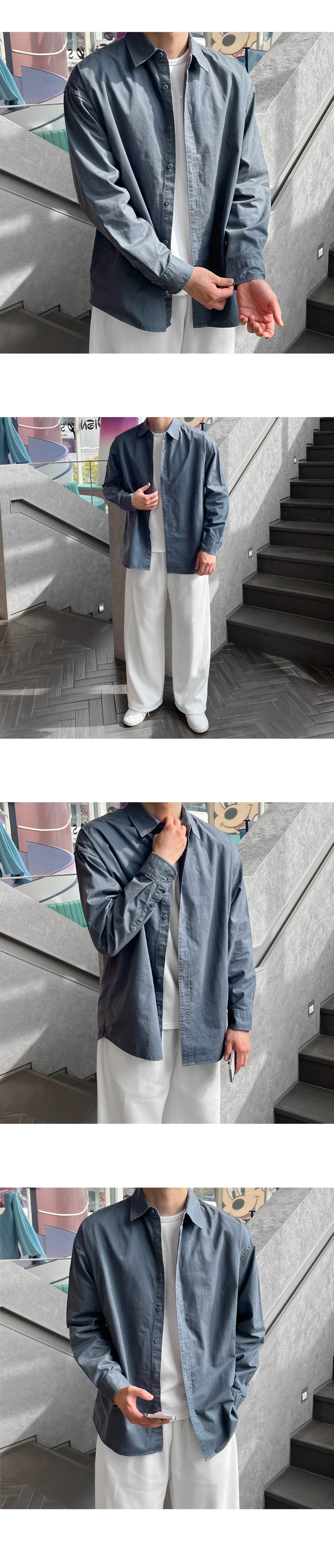 피그먼트 뒷절개 카라 오버핏 셔츠