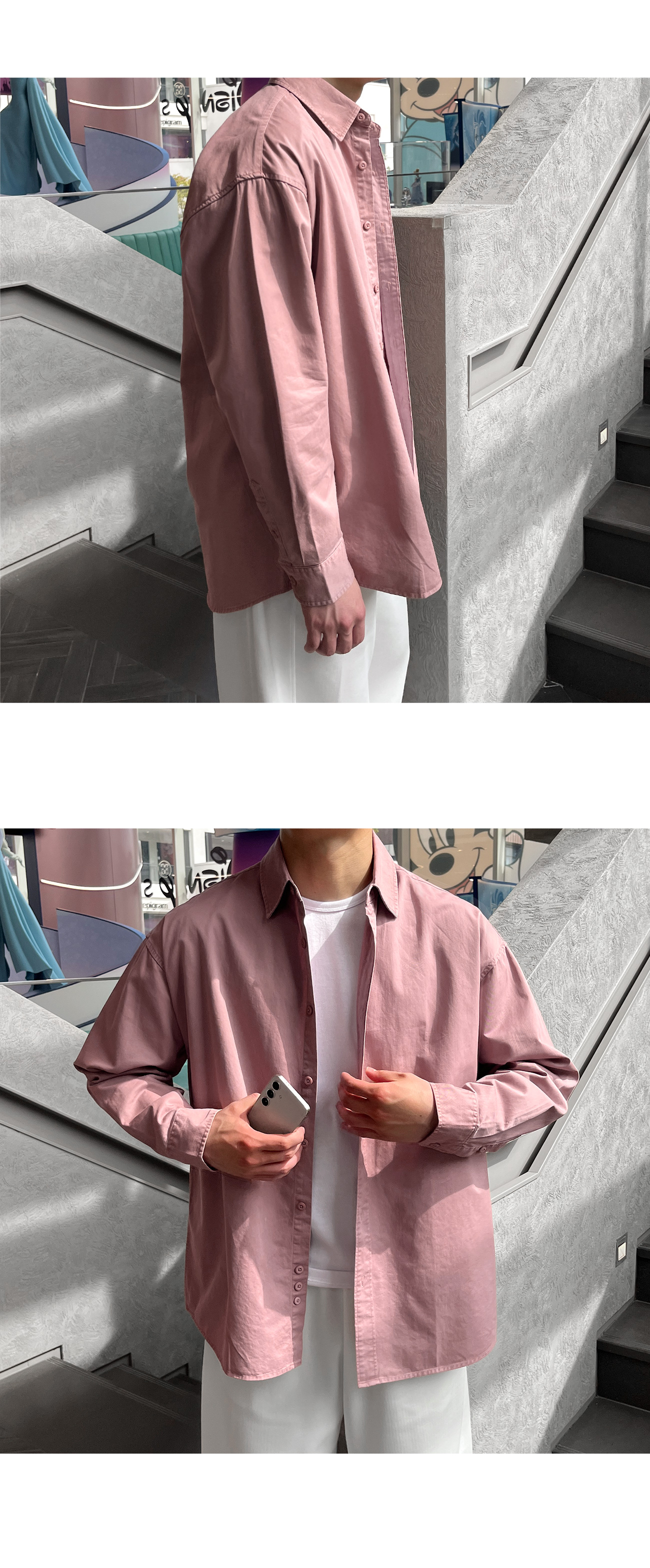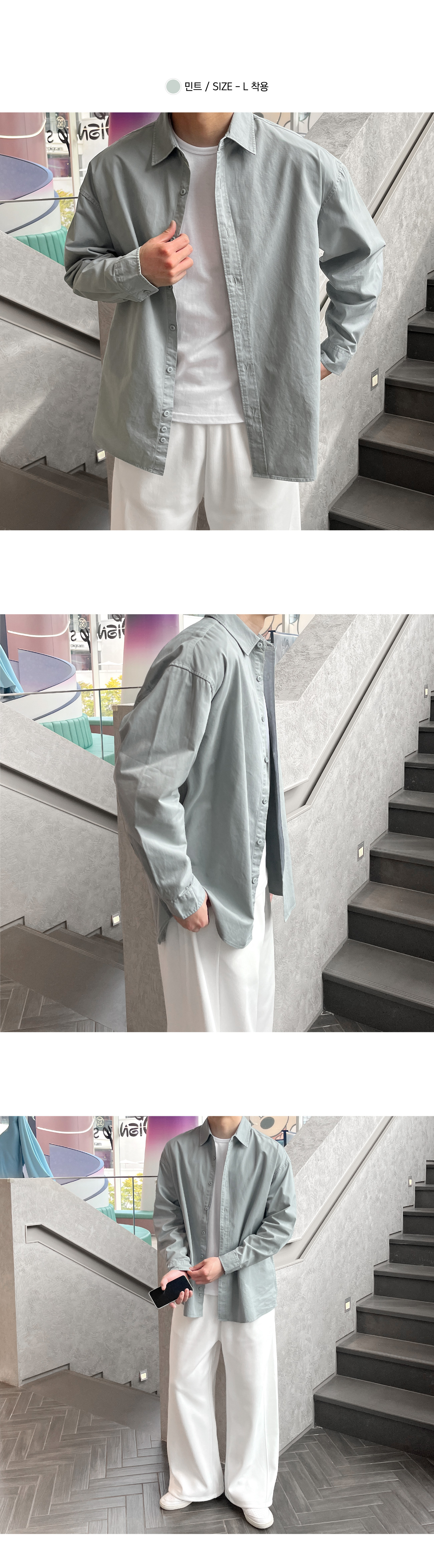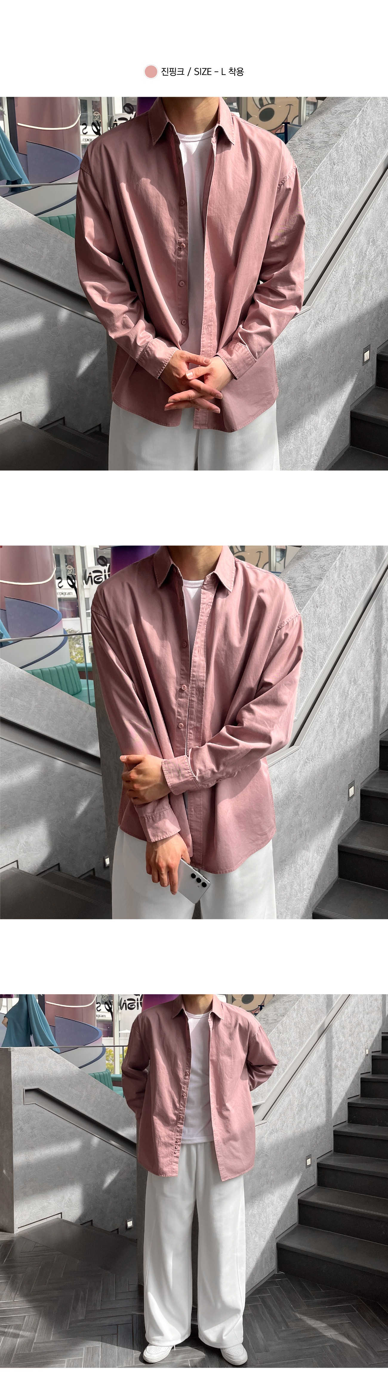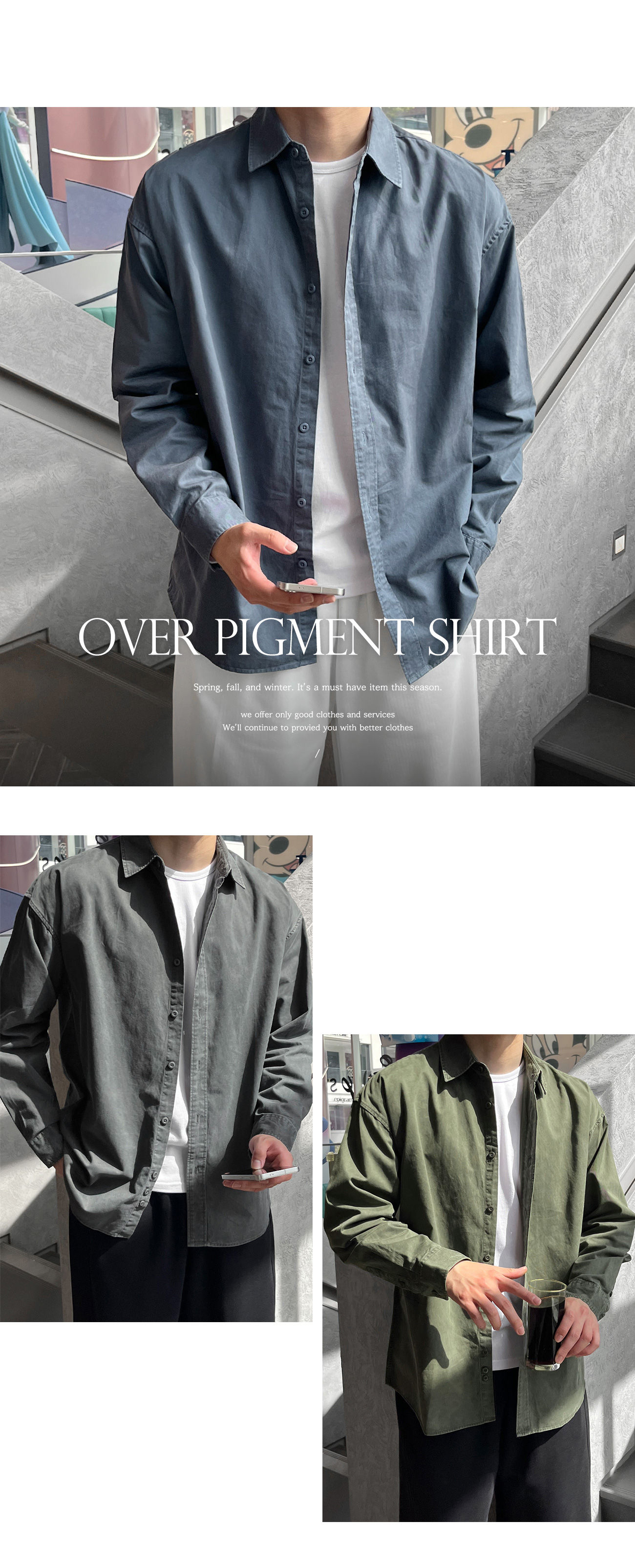 피그먼트 뒷절개 카라 오버핏 셔츠