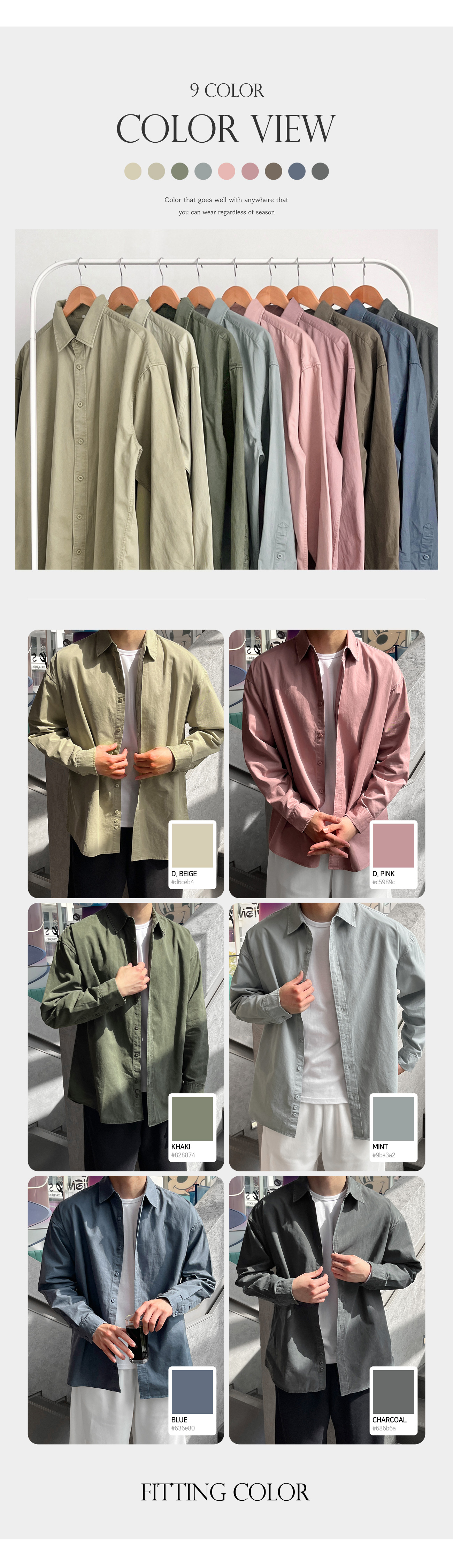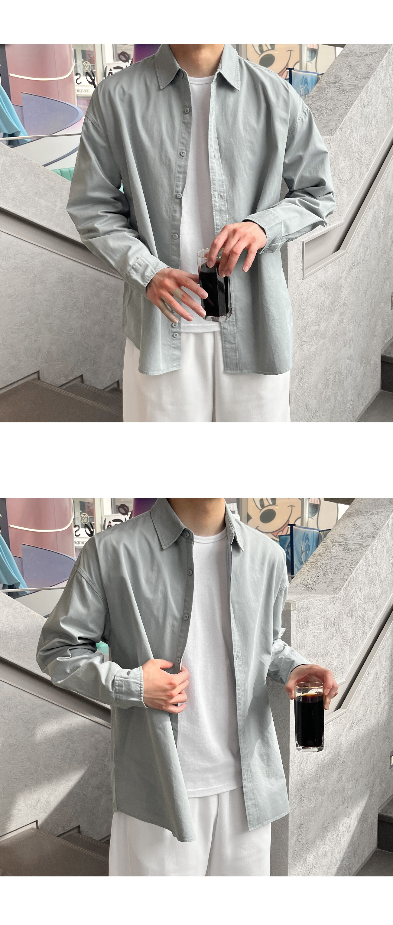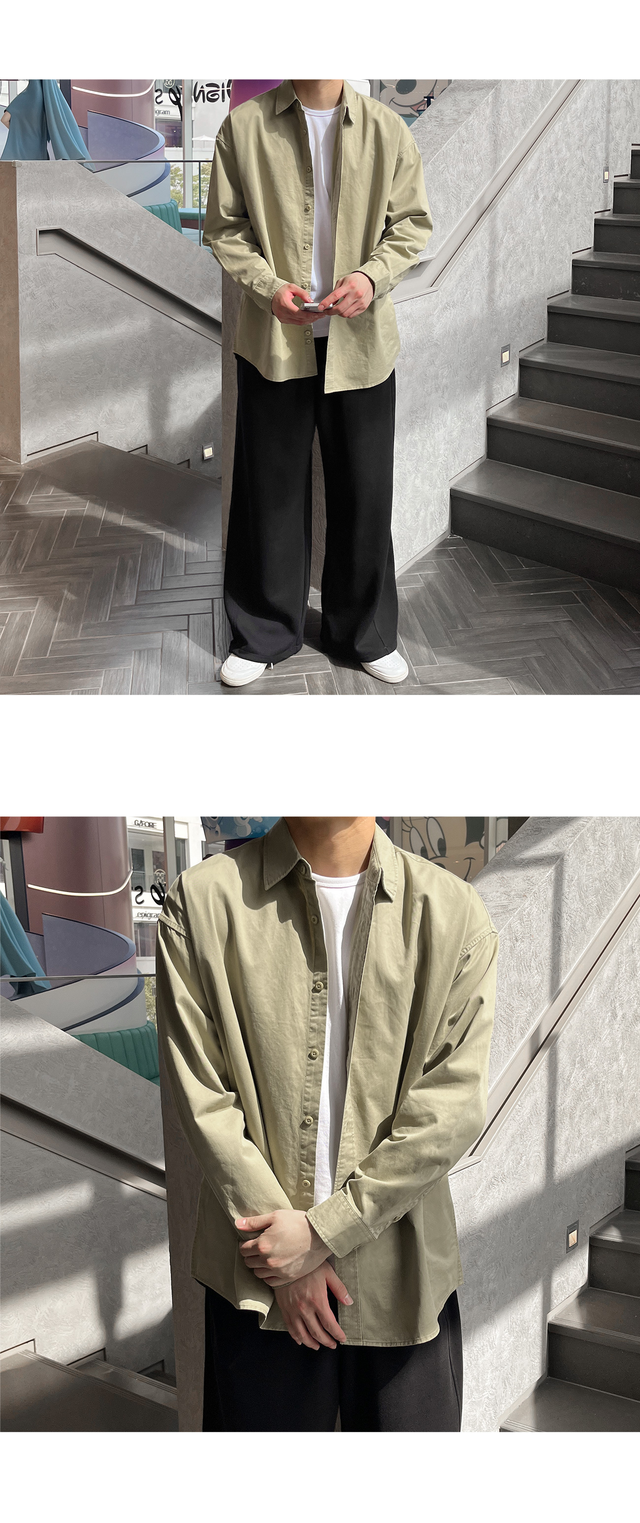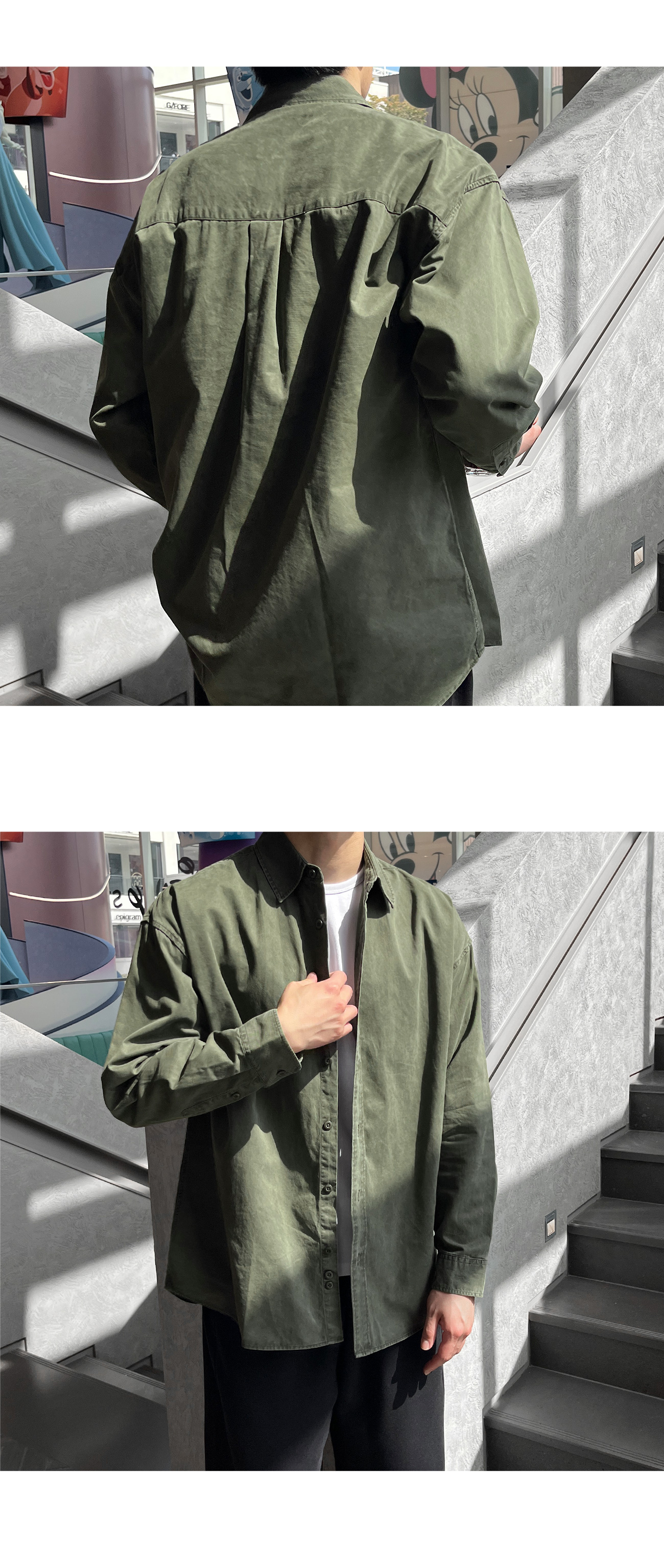 피그먼트 뒷절개 카라 오버핏 셔츠