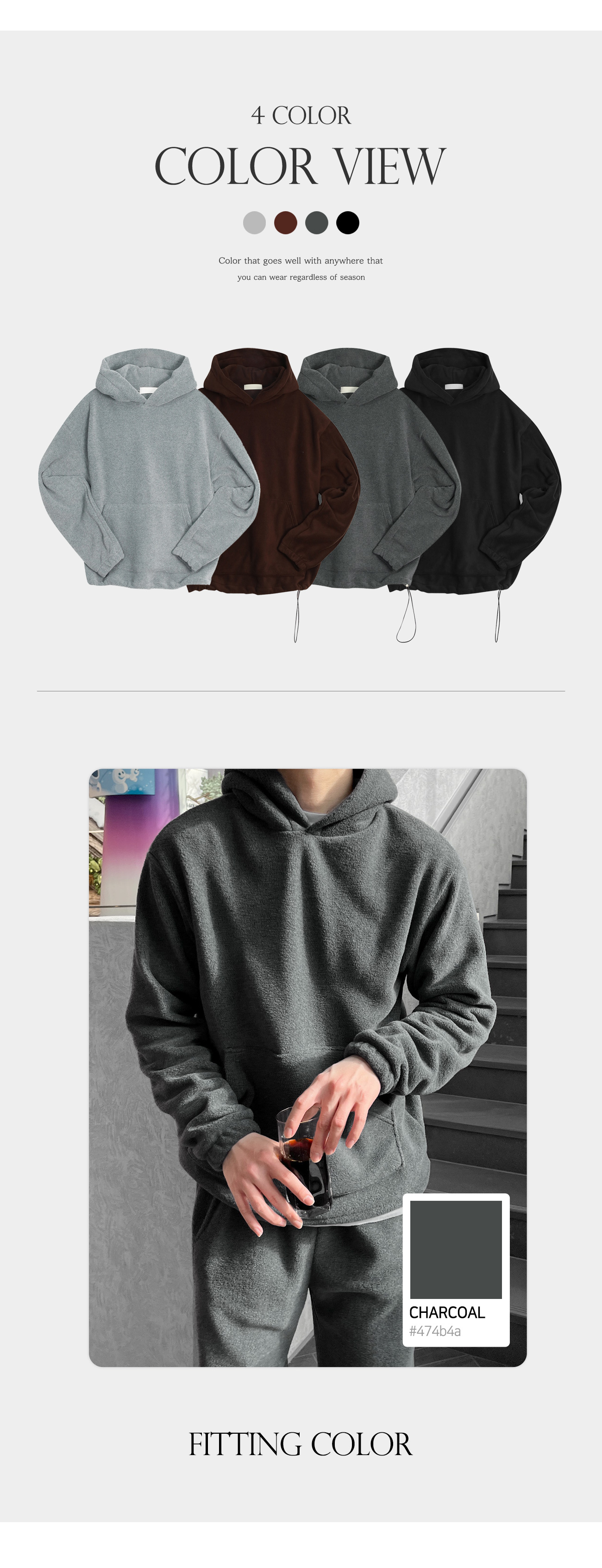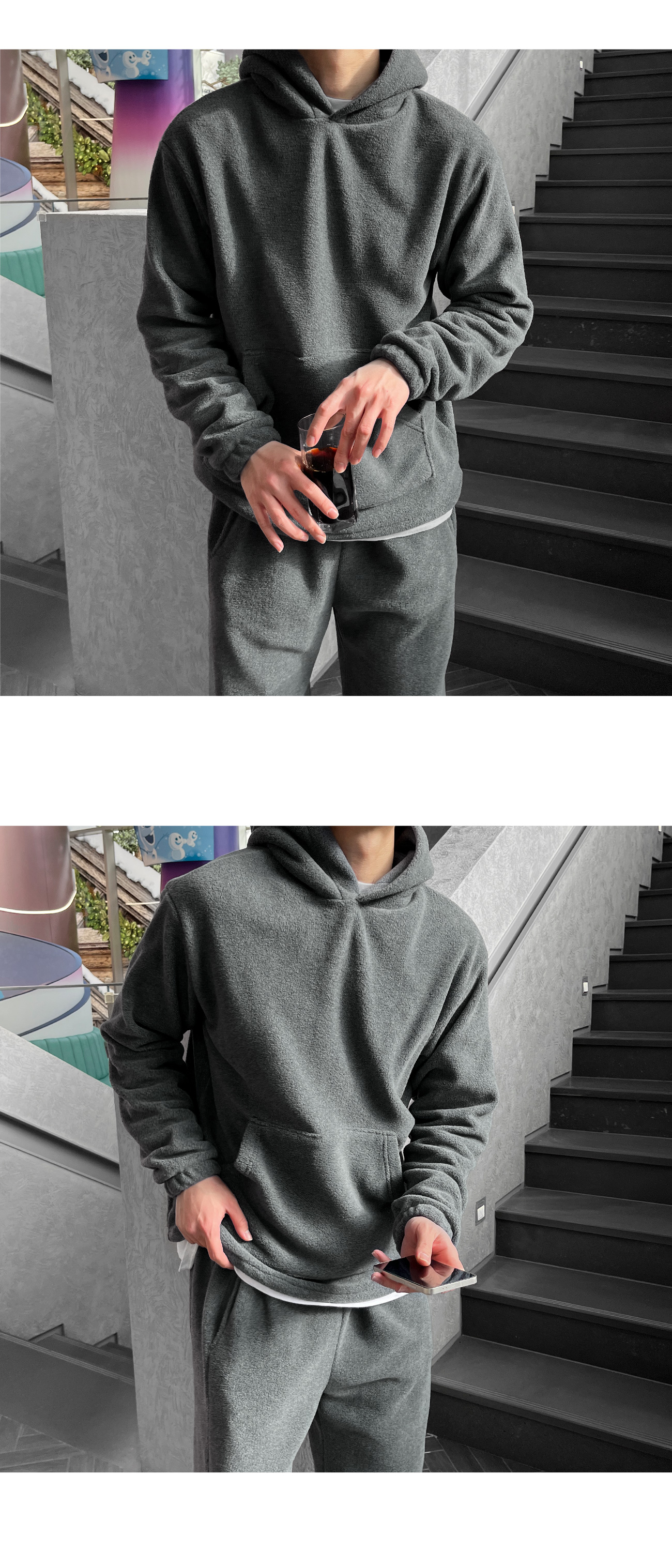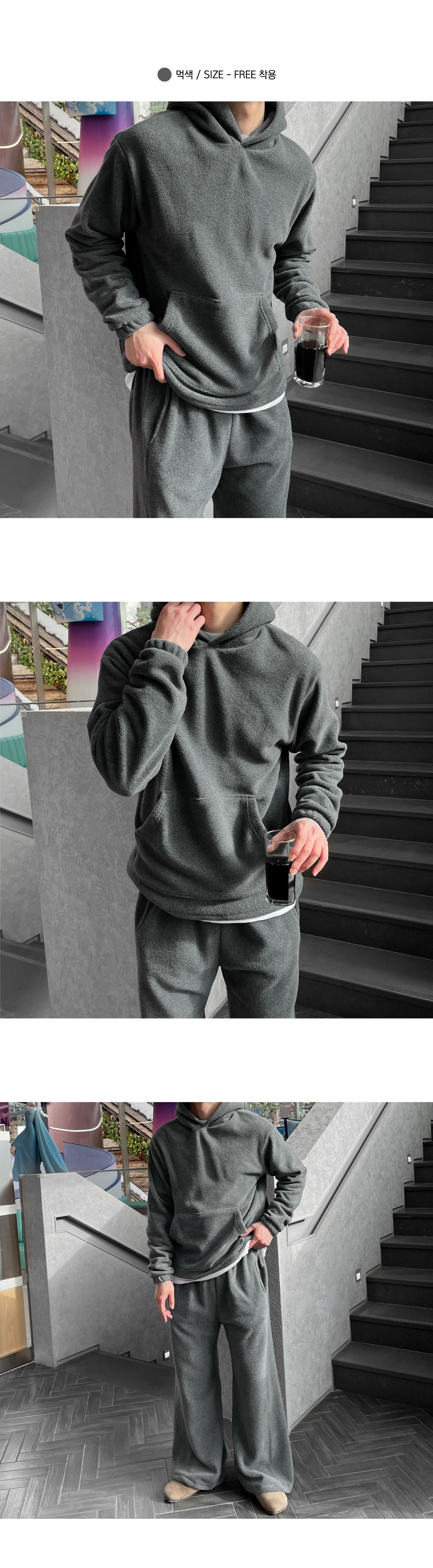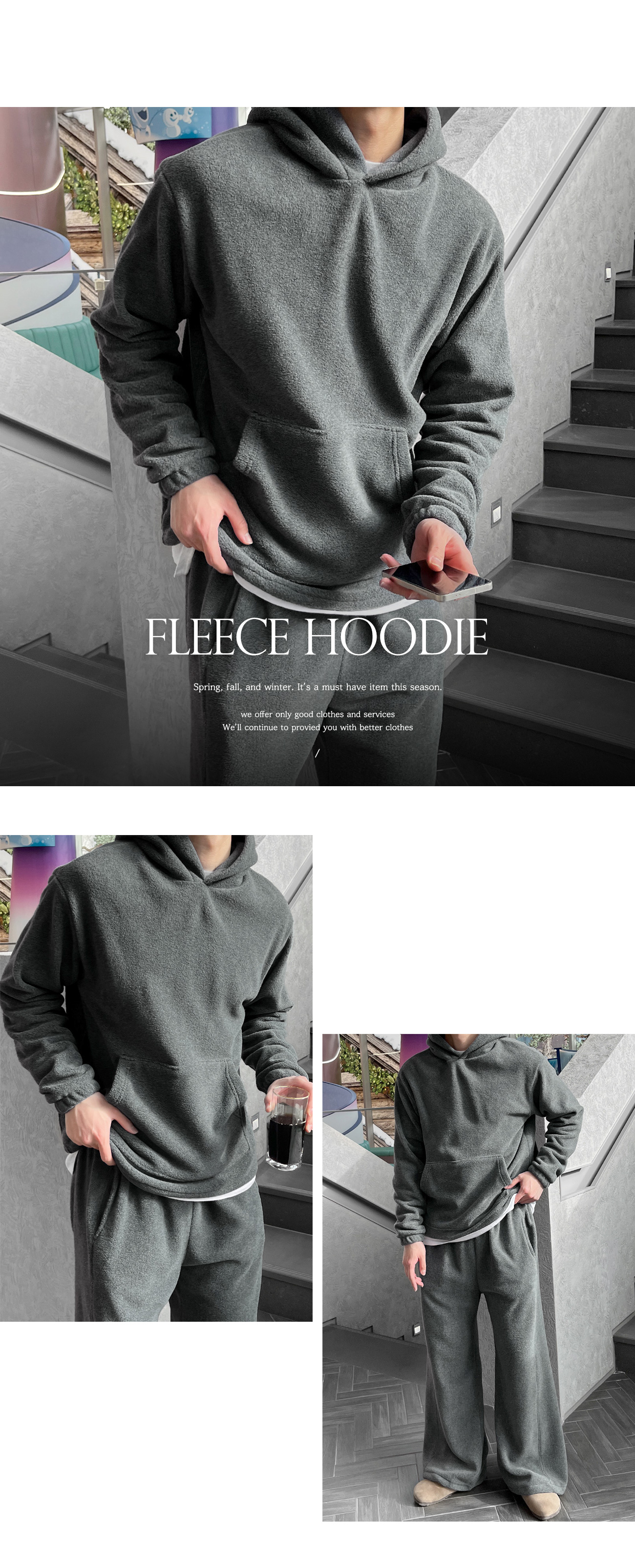 스트링 플리스 후드티