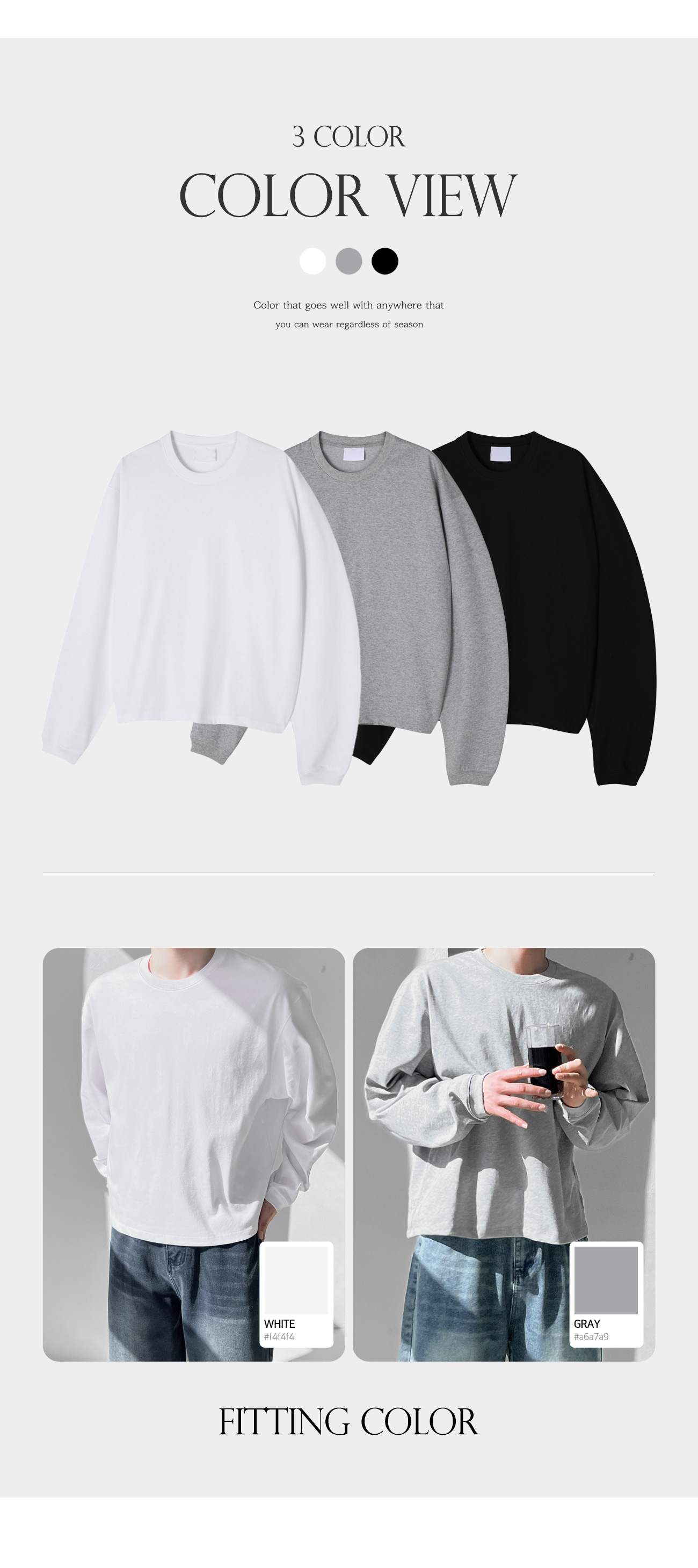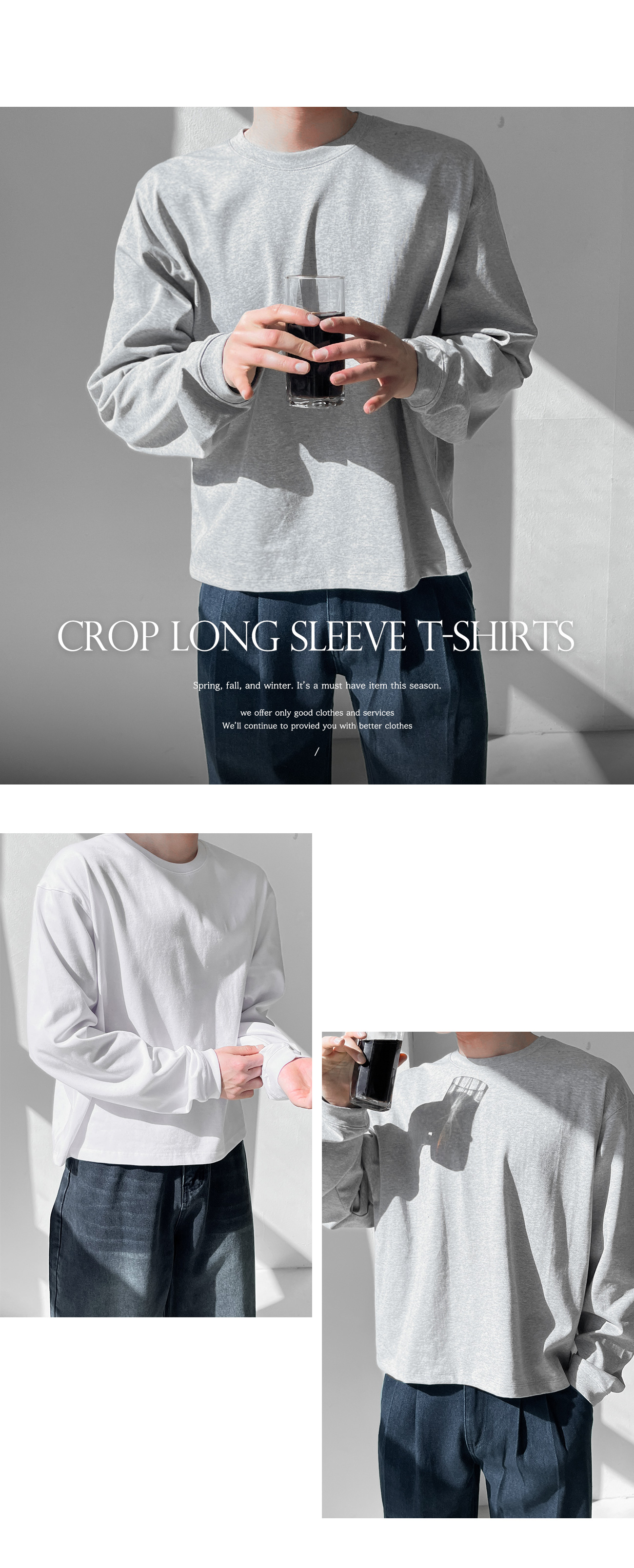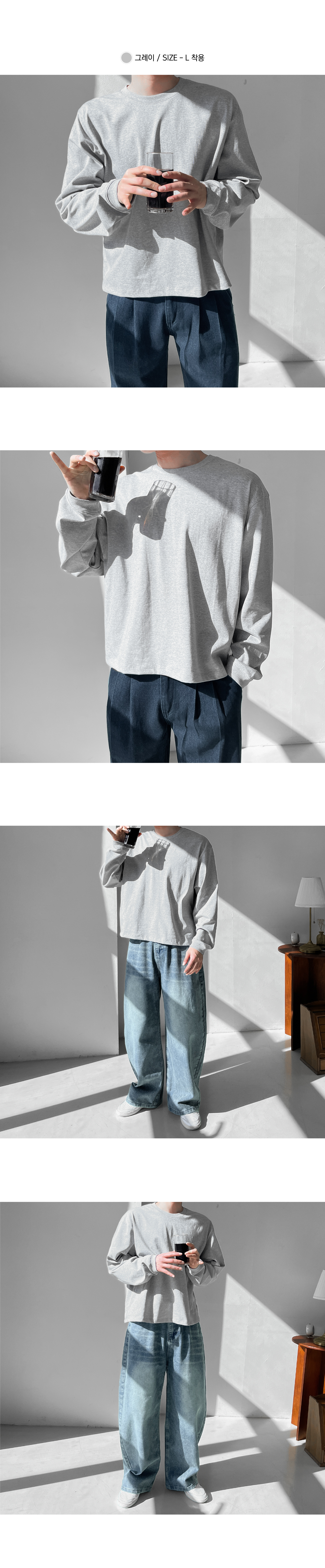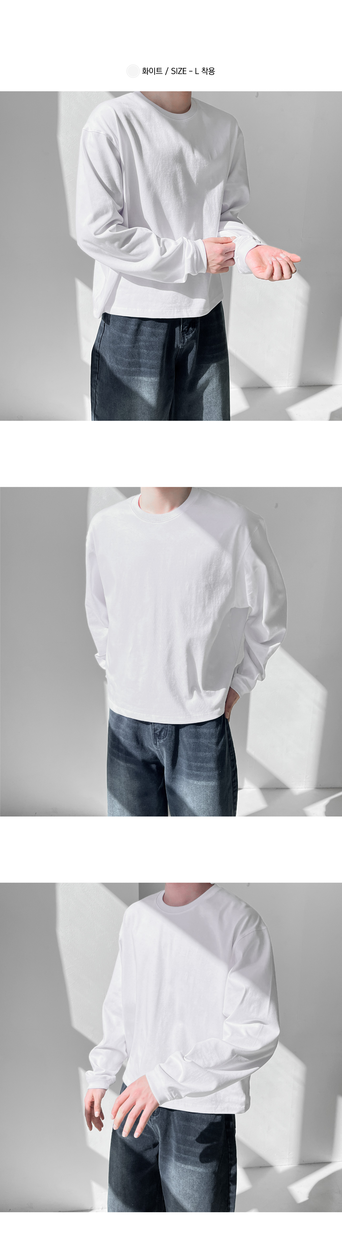 세미 오버 수피마 크롭 시보리 긴팔티