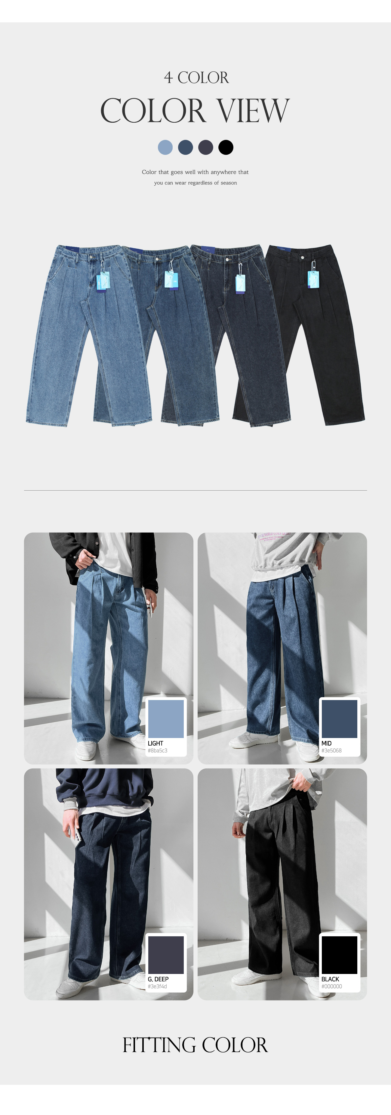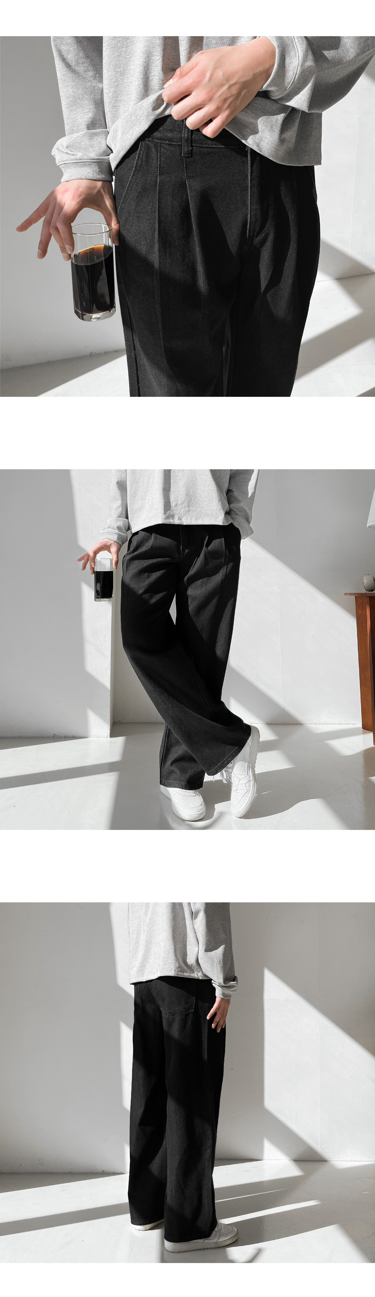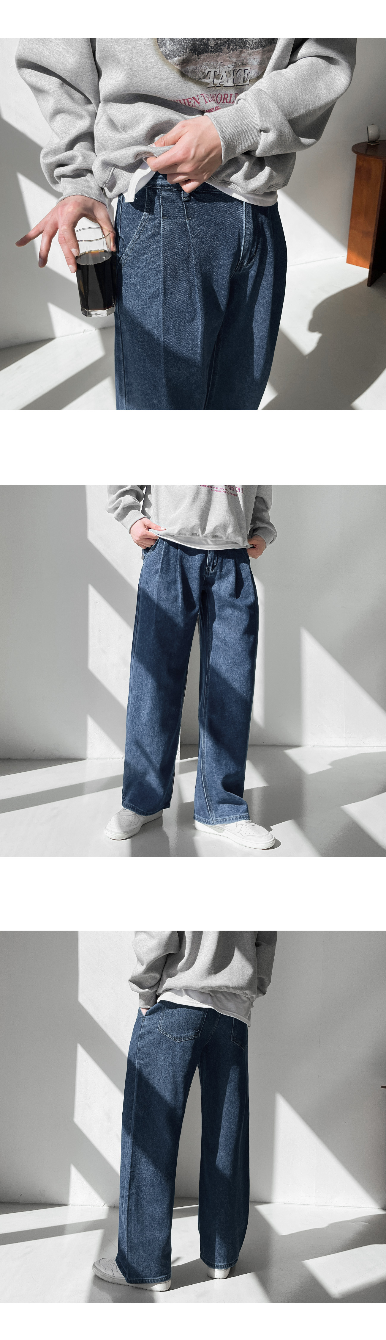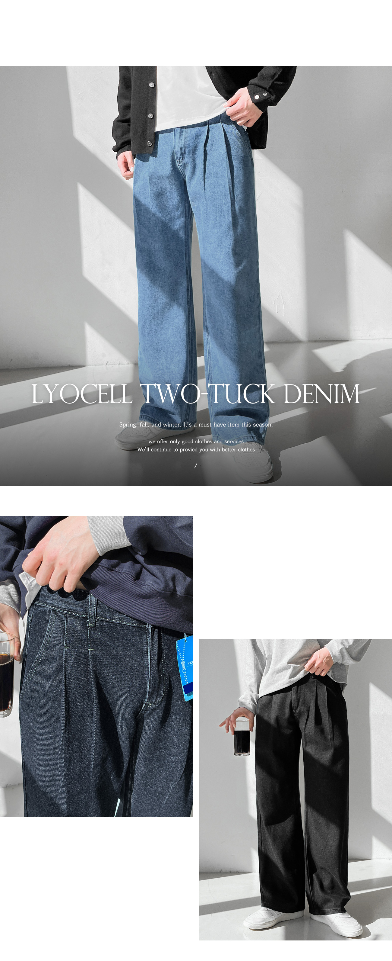 숏/기본/롱 리오셀 와이드 투턱 데님 팬츠